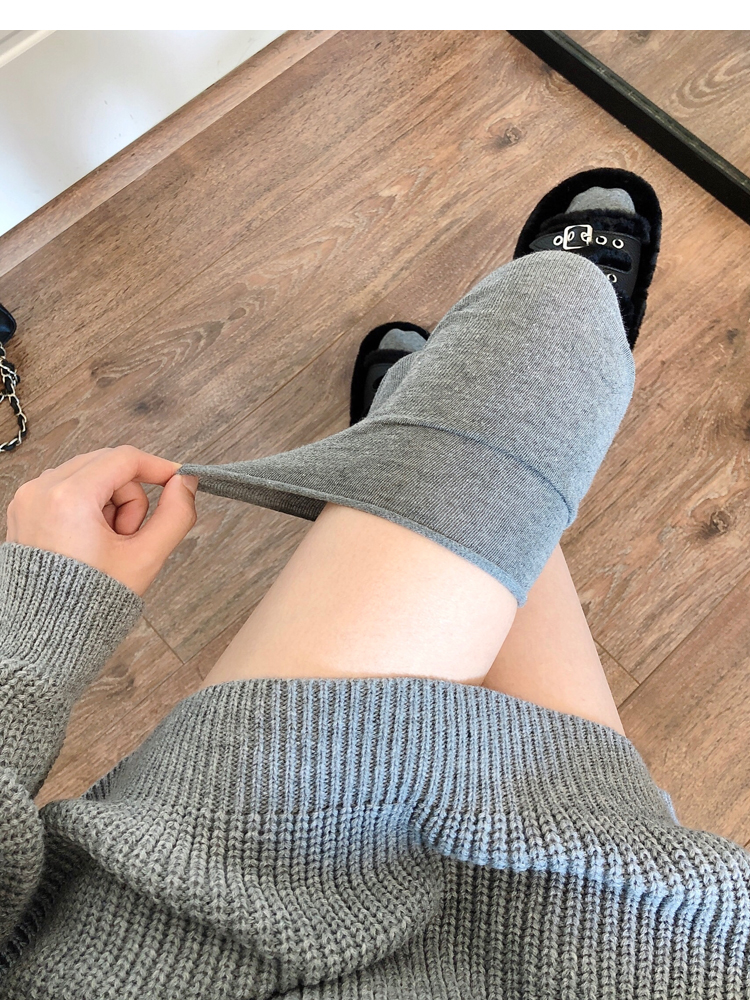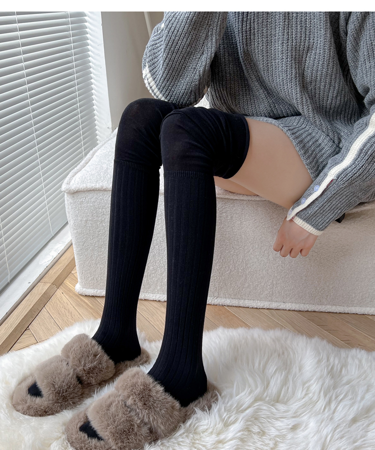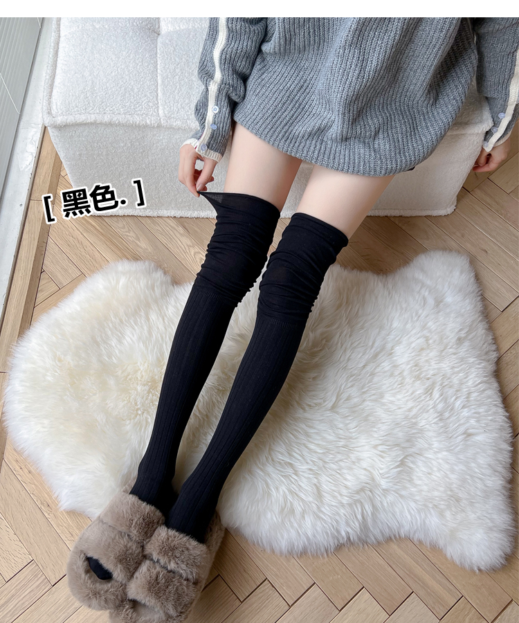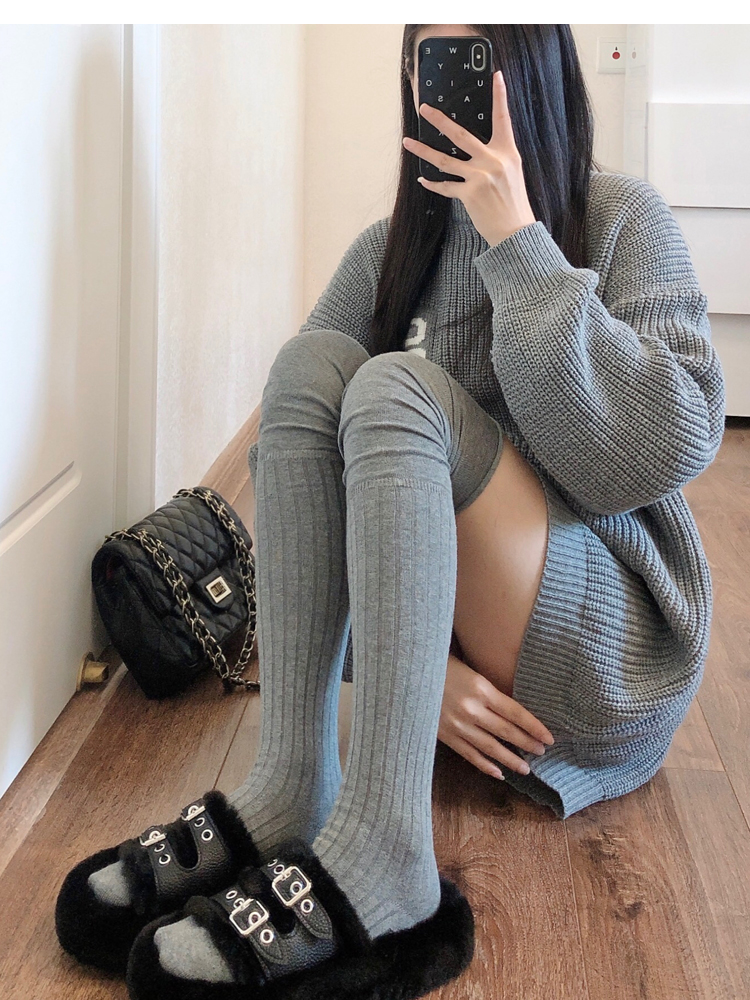 菸灰色過膝襪女春秋薄款黑色大腿襪拼接高筒襪東大門米白色長筒襪