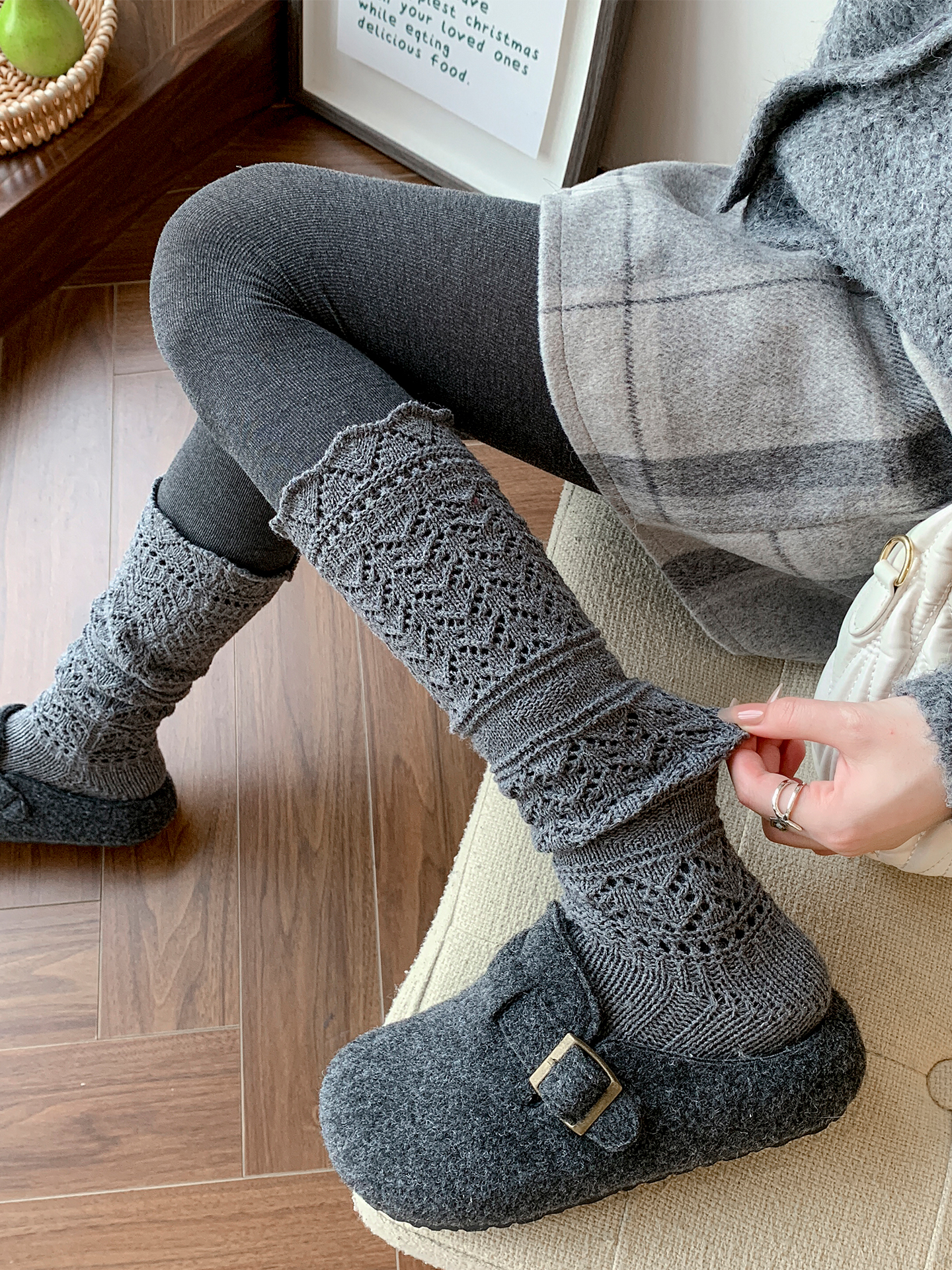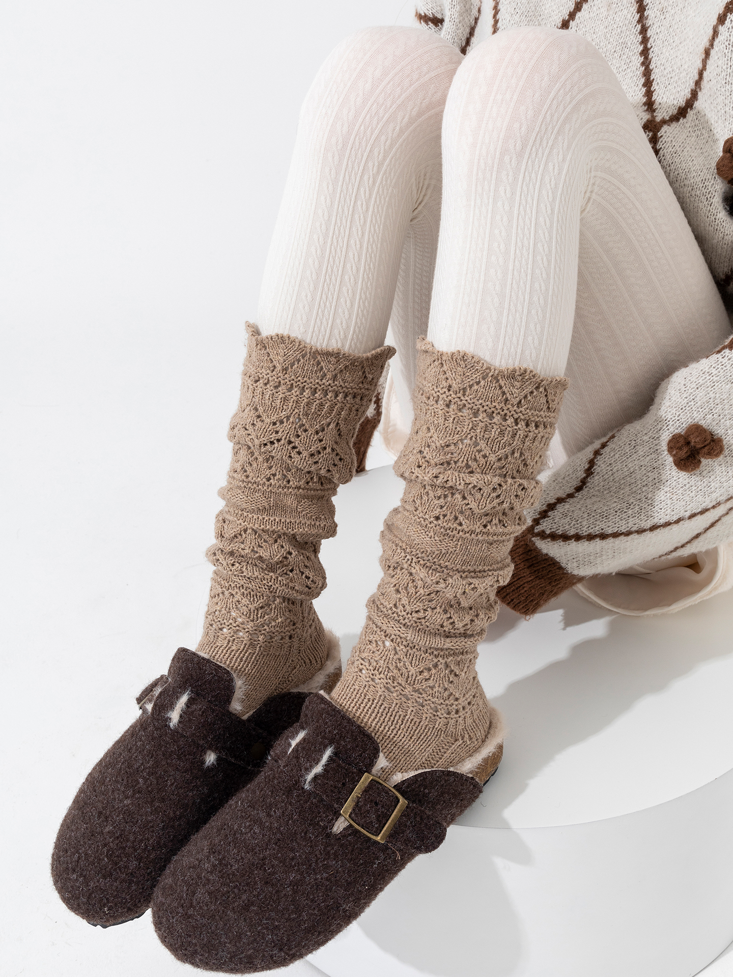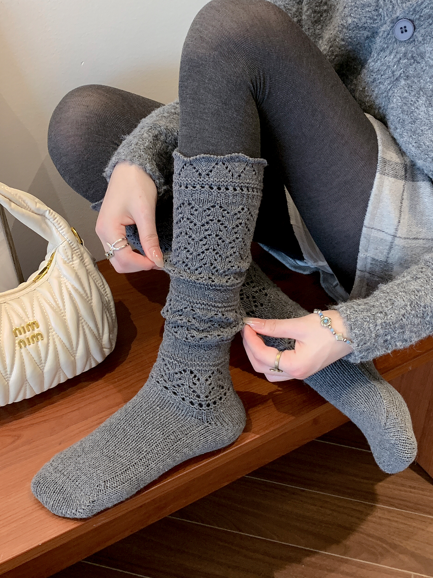 海北北秋冬復古羊毛堆堆襪女保暖針織小腿襪鏤空毛線韋雪同款長襪