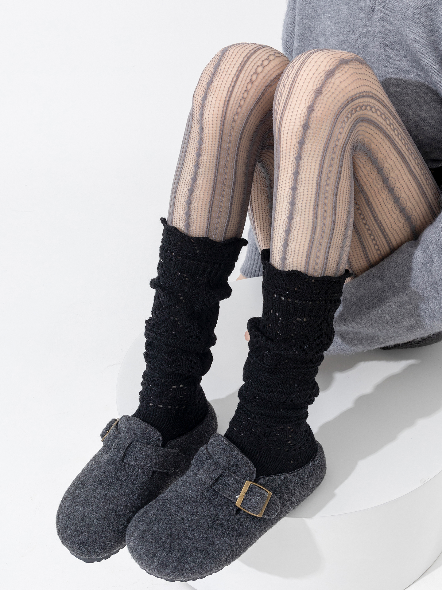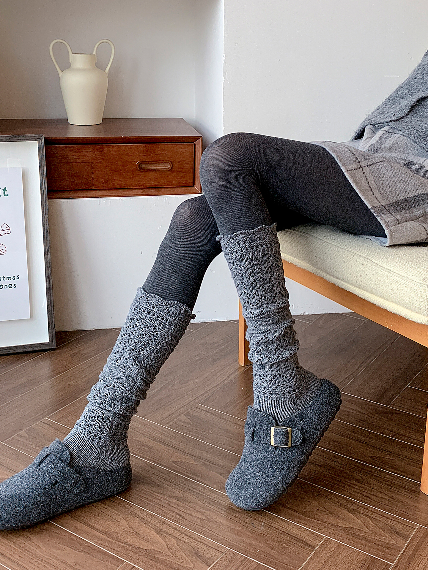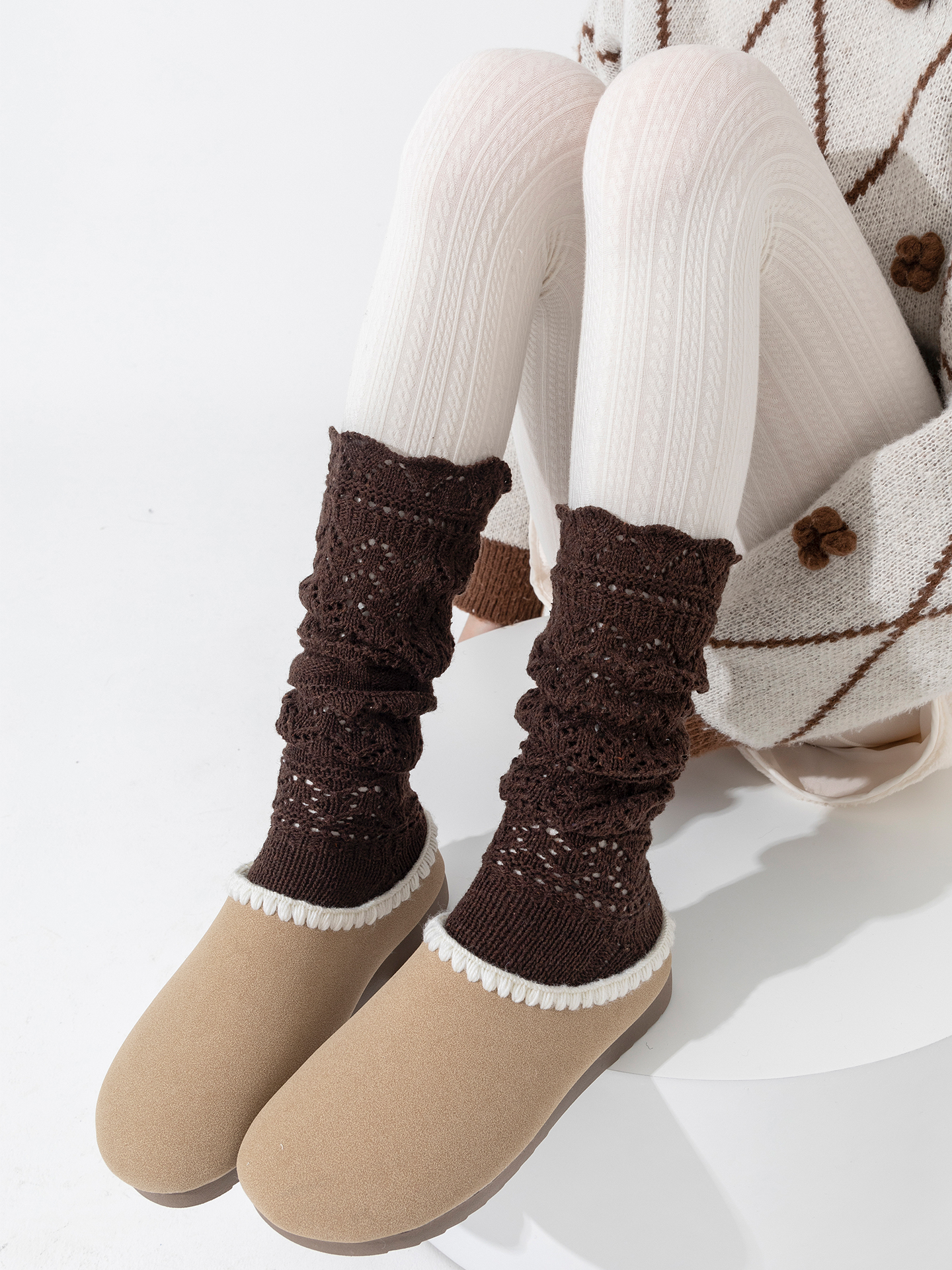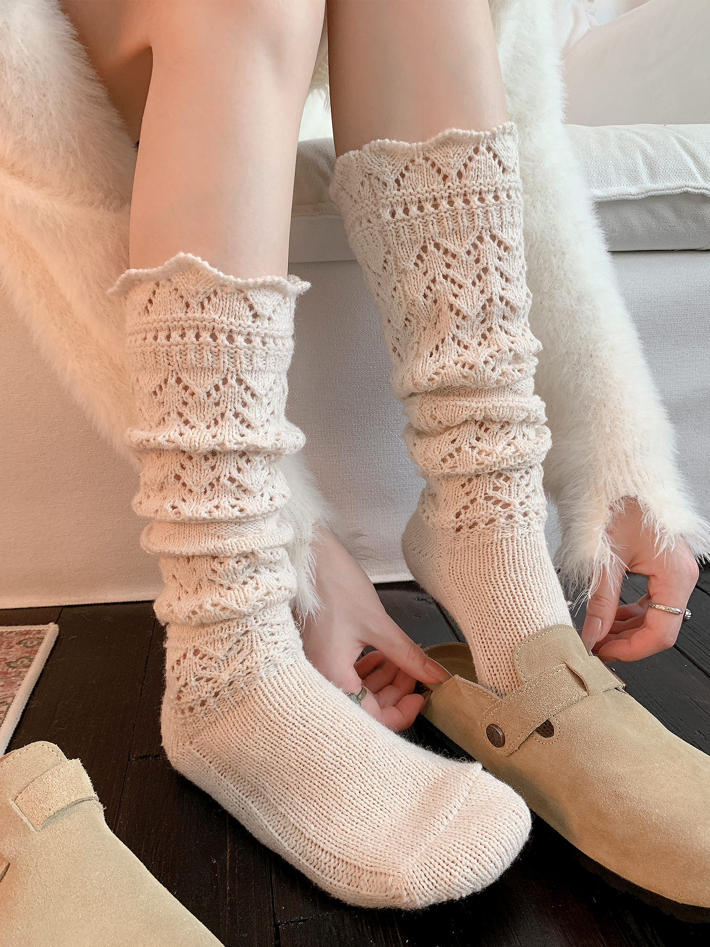 海北北秋冬復古羊毛堆堆襪女保暖針織小腿襪鏤空毛線韋雪同款長襪
