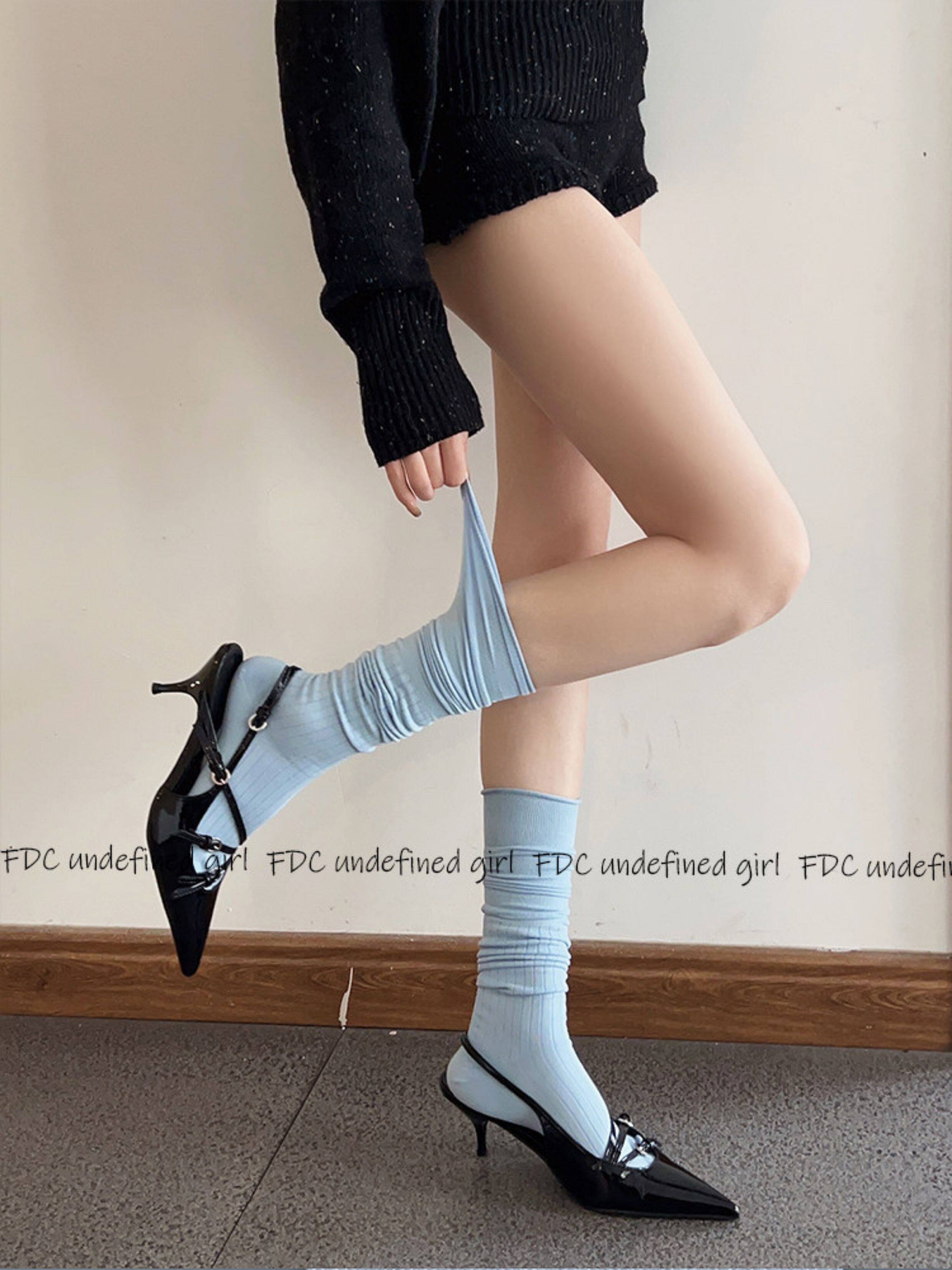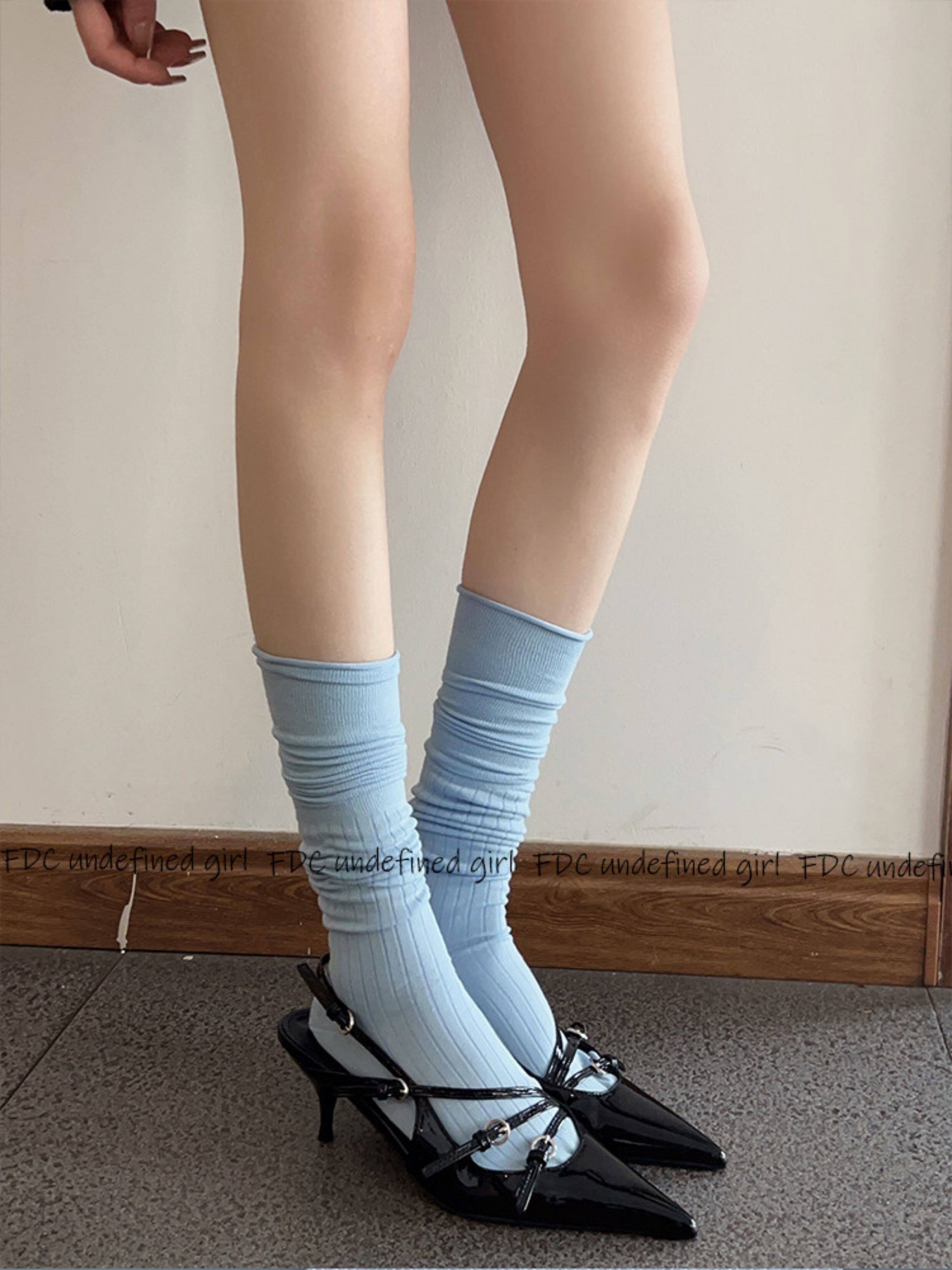藍色小腿襪子女壓力中筒襪復古粉色小腿襪及膝襪堆堆襪簡約經典