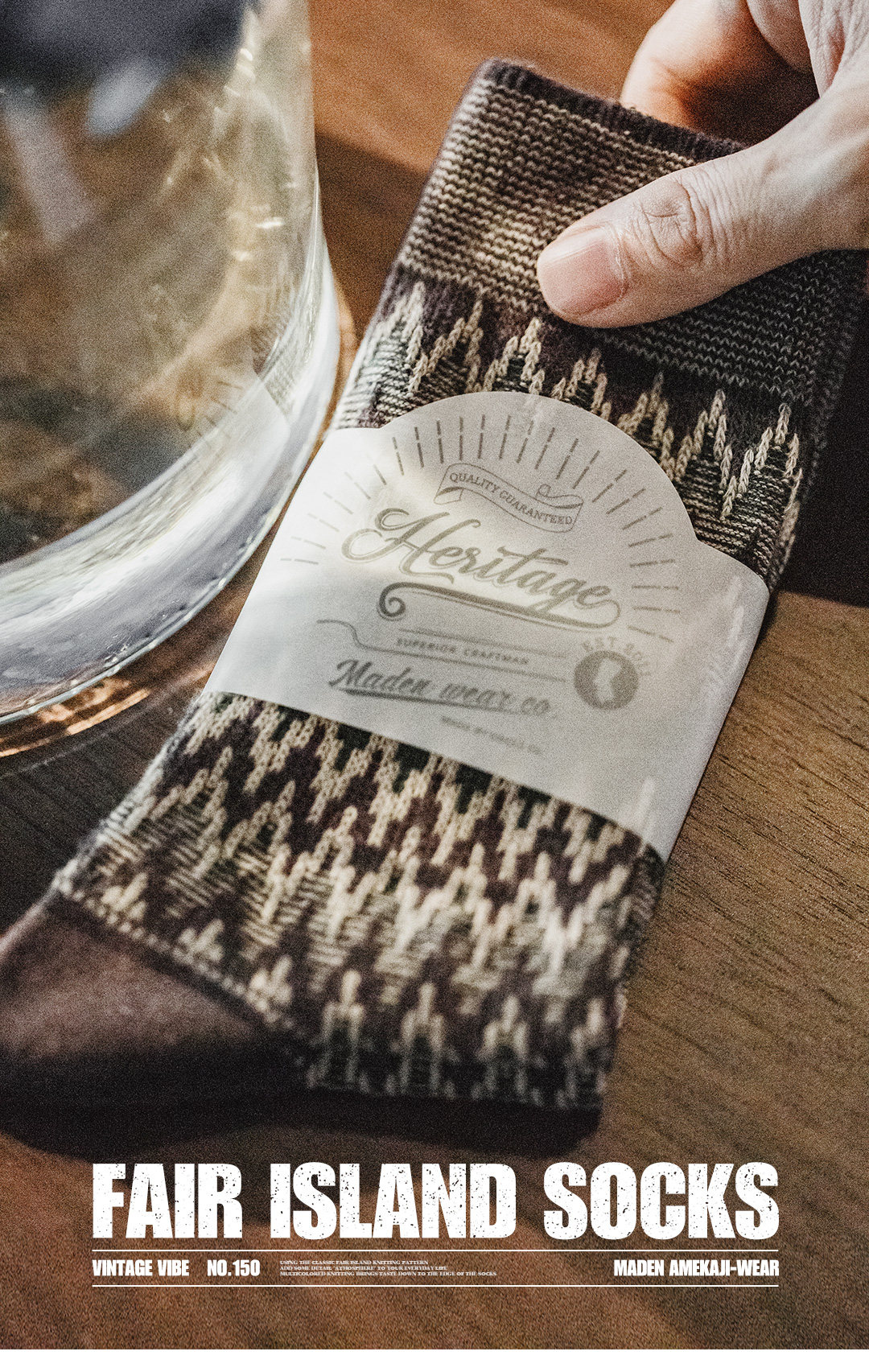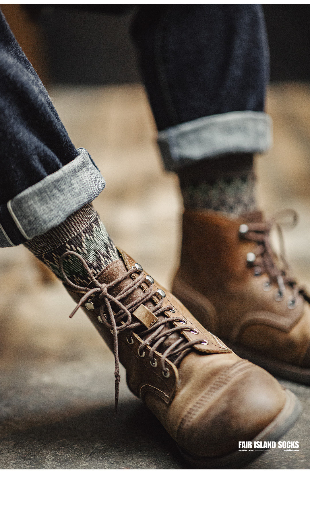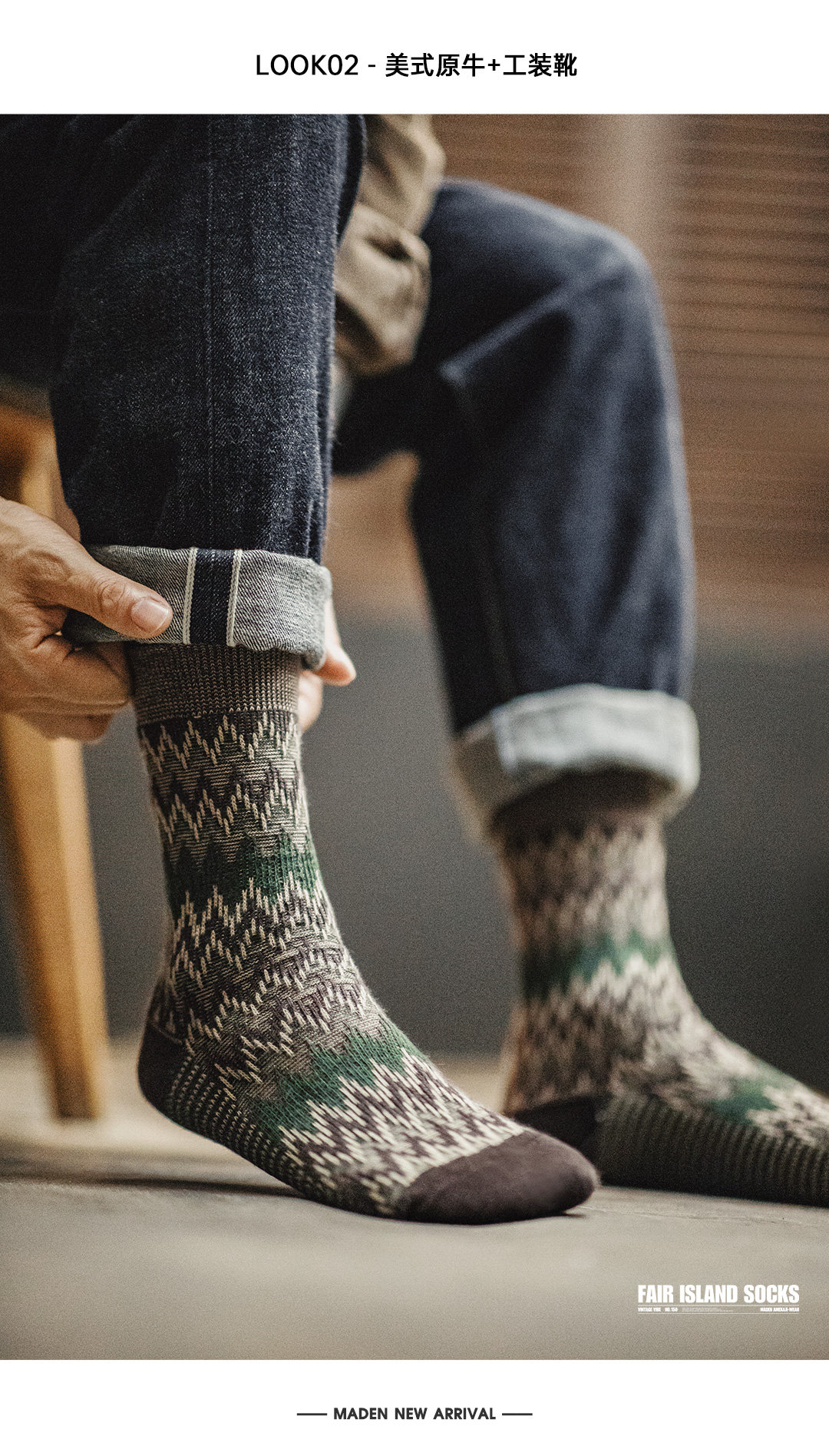 馬登工裝復古費爾島編織中筒襪民族風長襪撞色針織棉襪子男女春秋