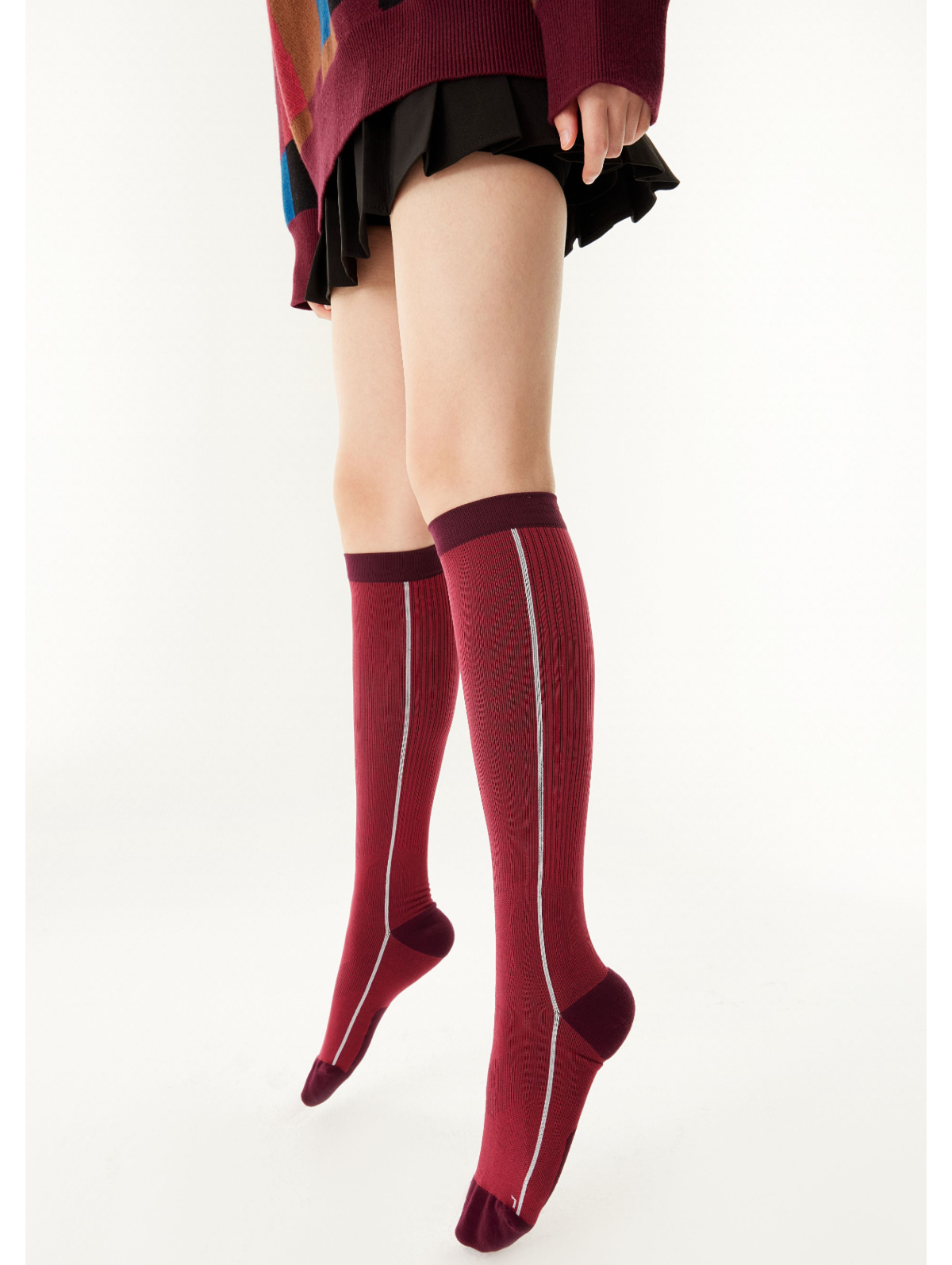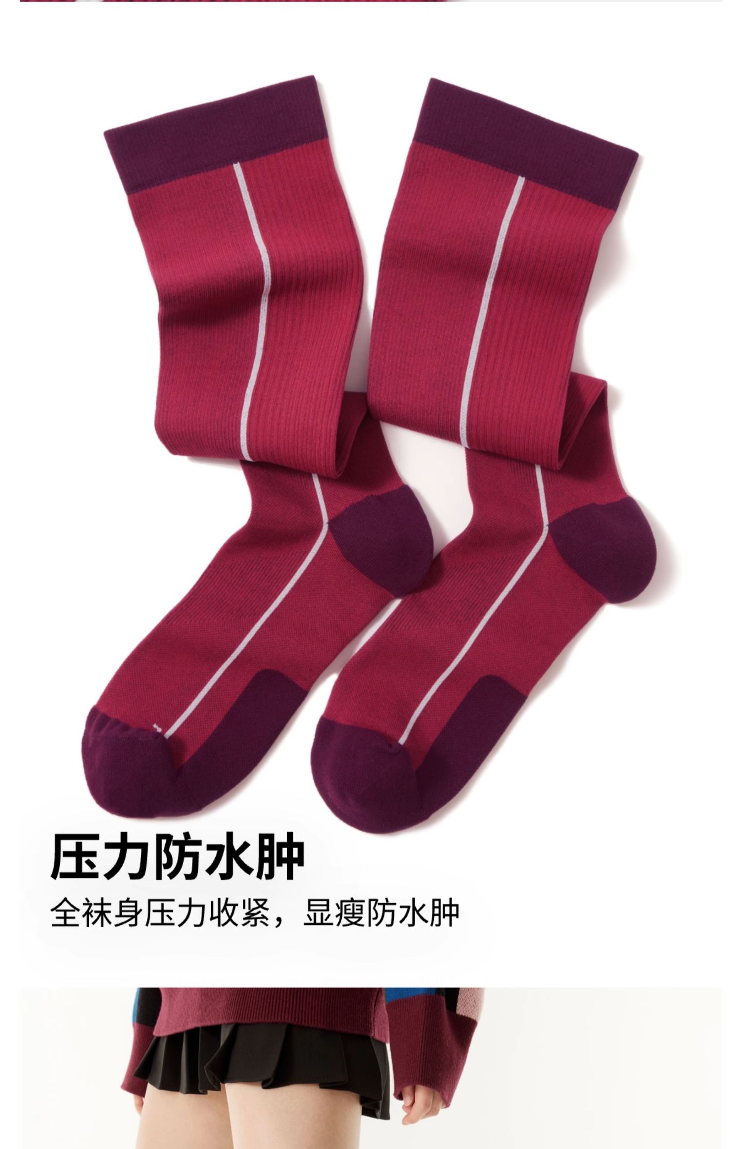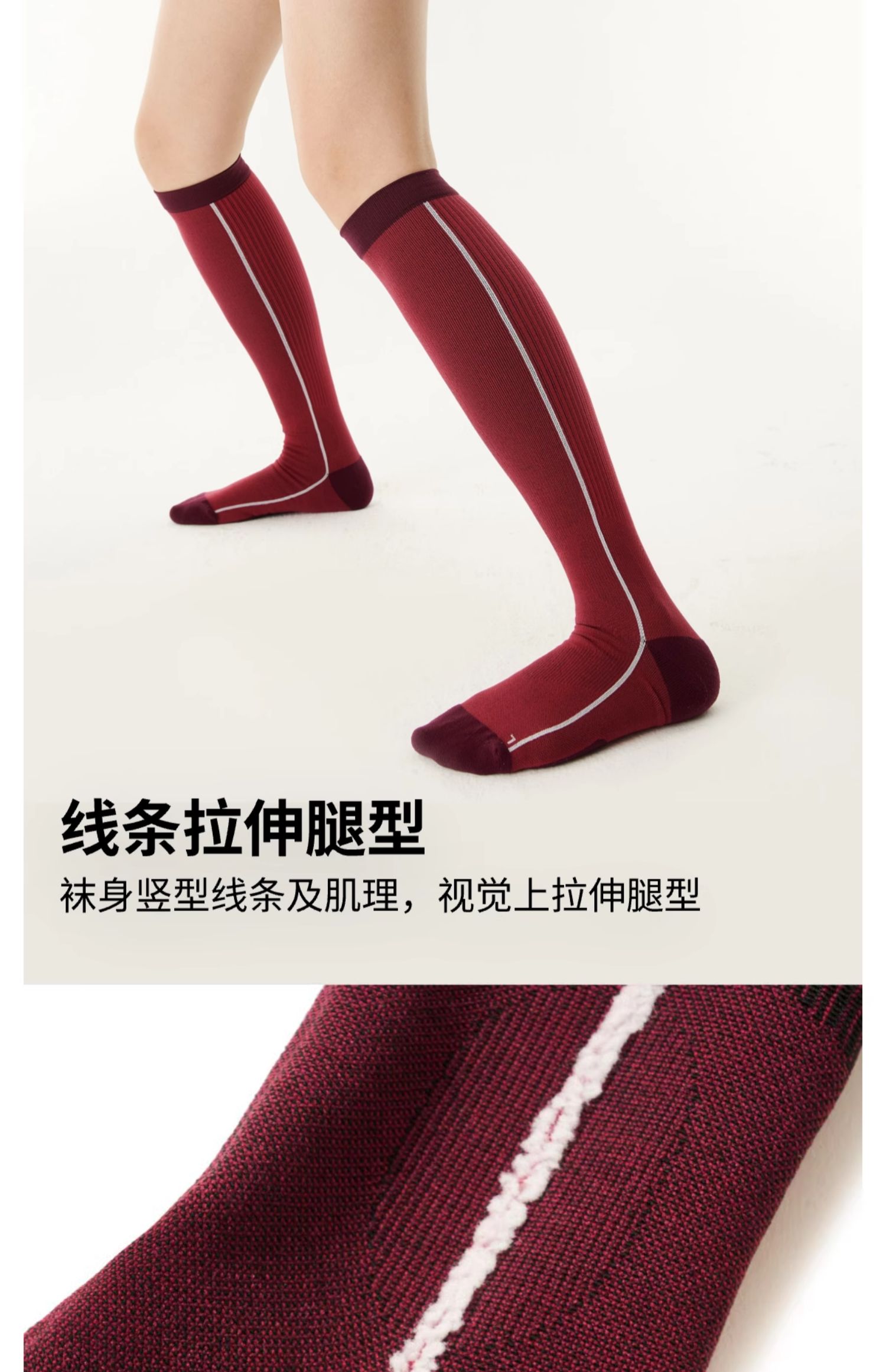 上森紅色壓力運動襪跑步小腿壓力襪緩解腫脹秋透氣高筒襪顯瘦長襪