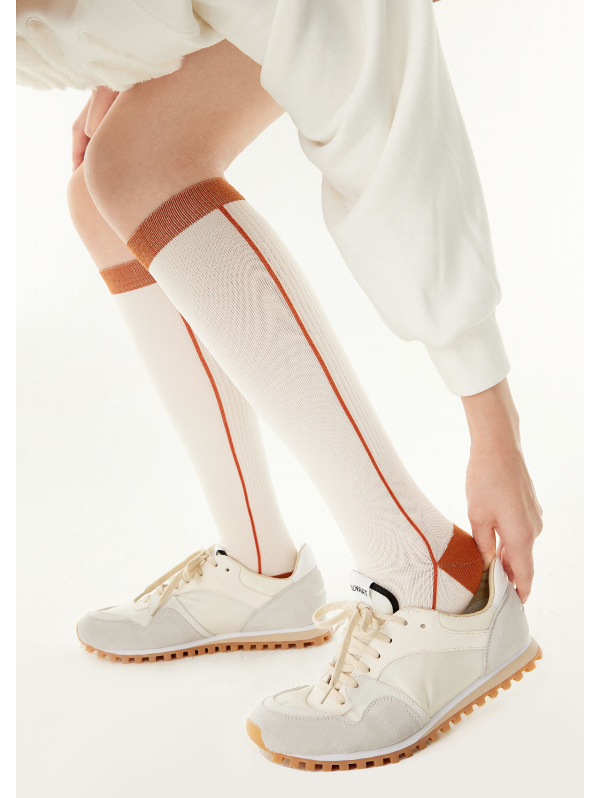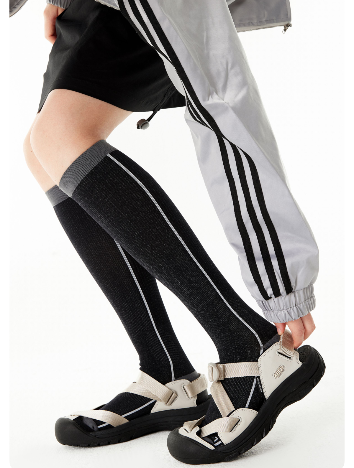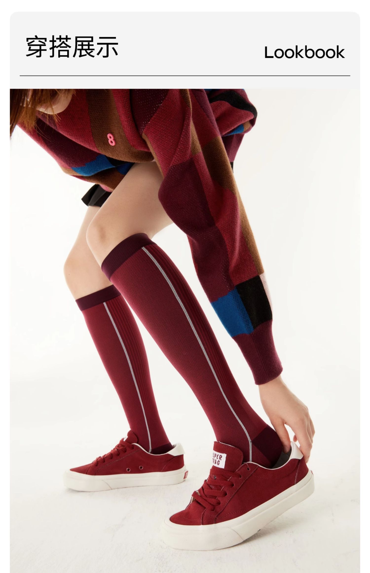 上森紅色壓力運動襪跑步小腿壓力襪緩解腫脹秋透氣高筒襪顯瘦長襪