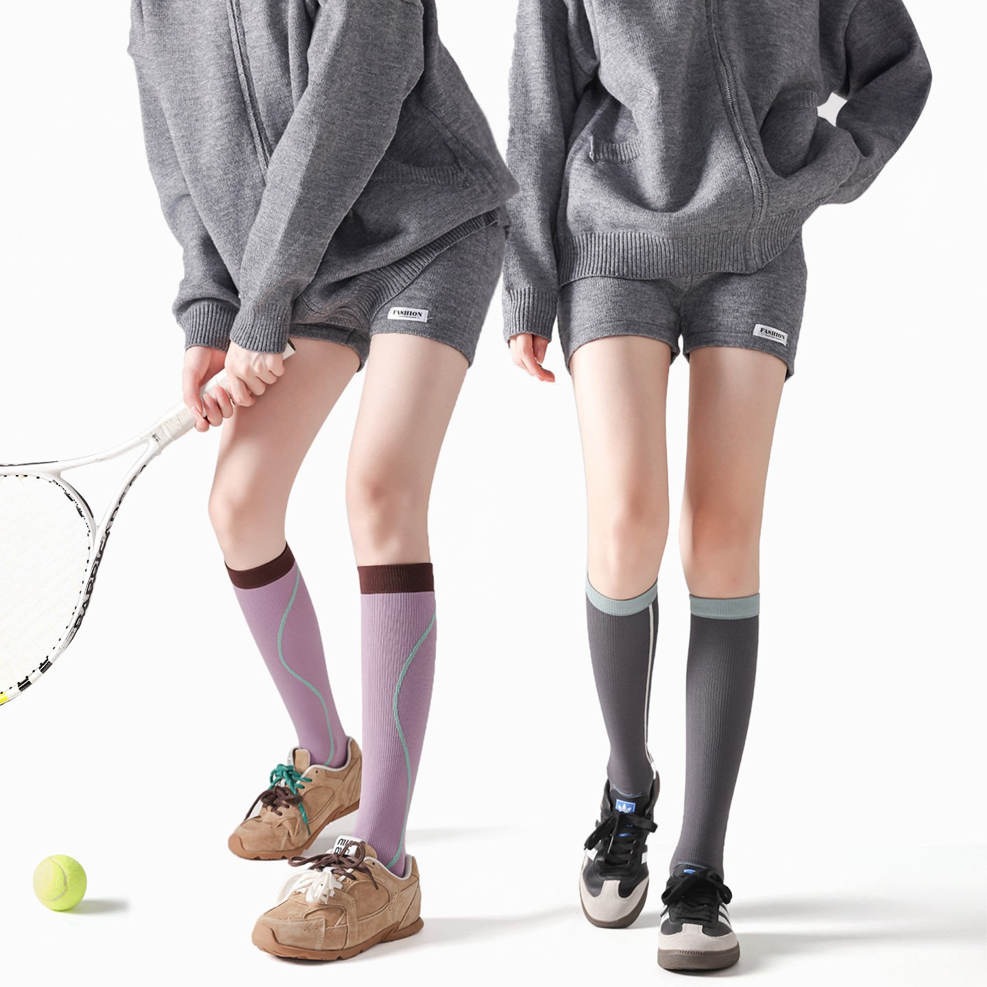 運動壓力襪加壓小腿襪騎行襪跑步壓縮襪登山襪徒步女灰色襪子