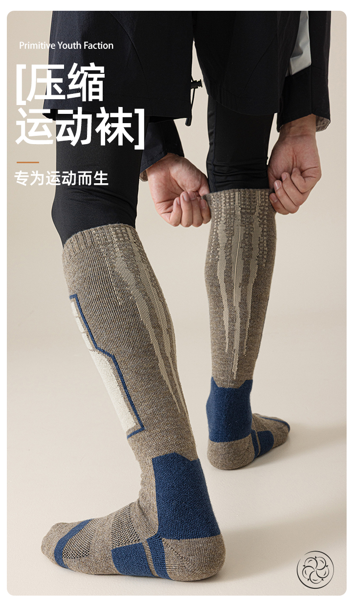 運動襪子男秋冬季長筒襪肌能壓力襪專業健身滑雪襪毛圈底吸汗緩震