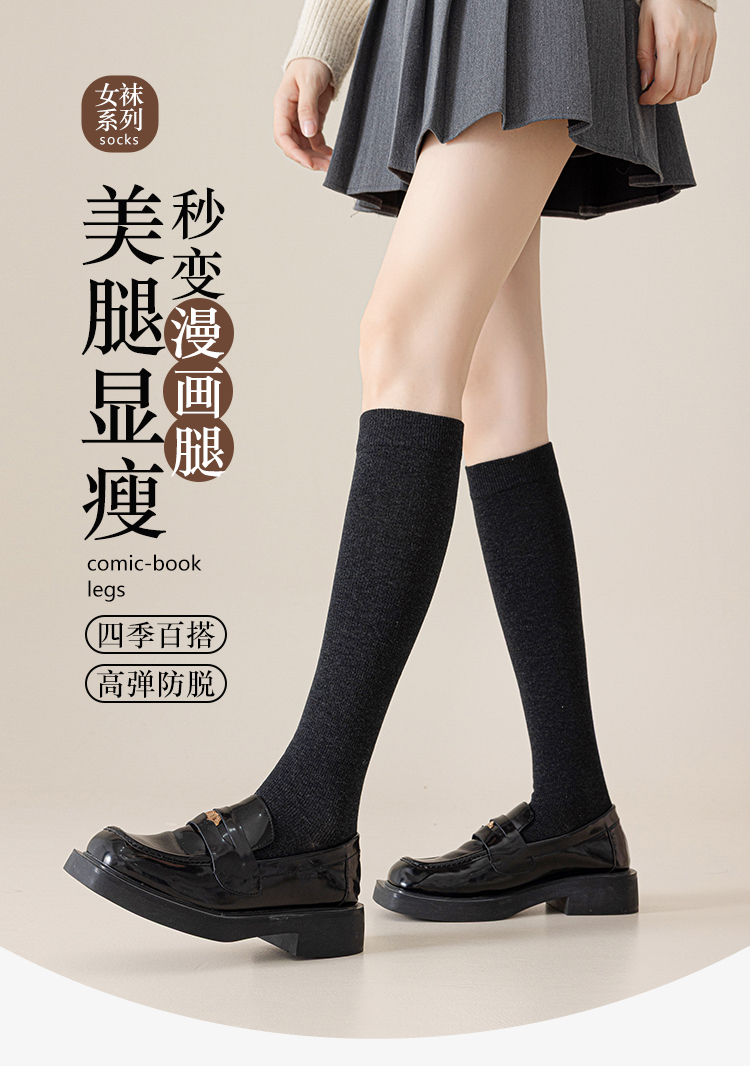 貓人壓力襪子女秋季黑色中筒襪小腿襪2025新款長筒襪長襪jk過膝襪