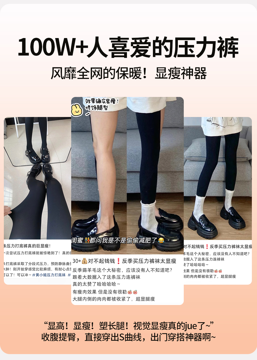 厚黑褲襪壓力襪女冬季打底褲襪強壓瘦腿襪連褲襪秋冬外穿黑色絲襪