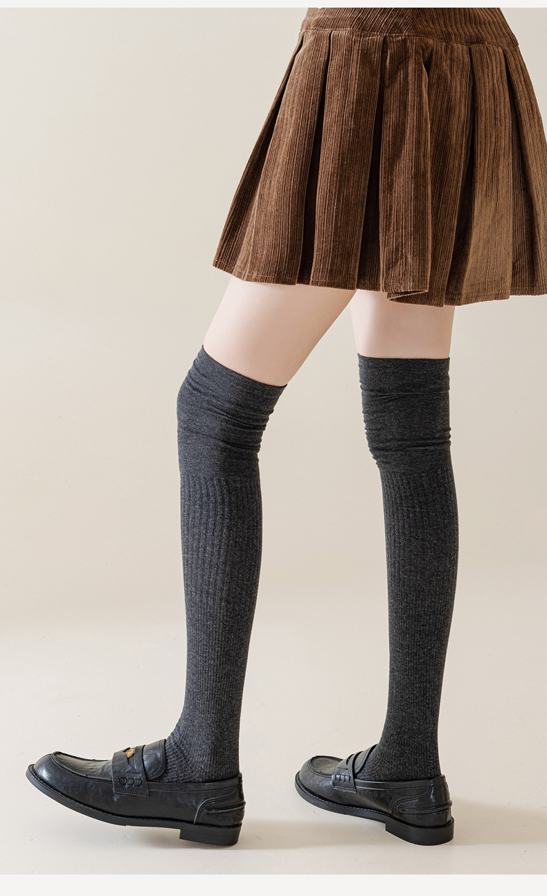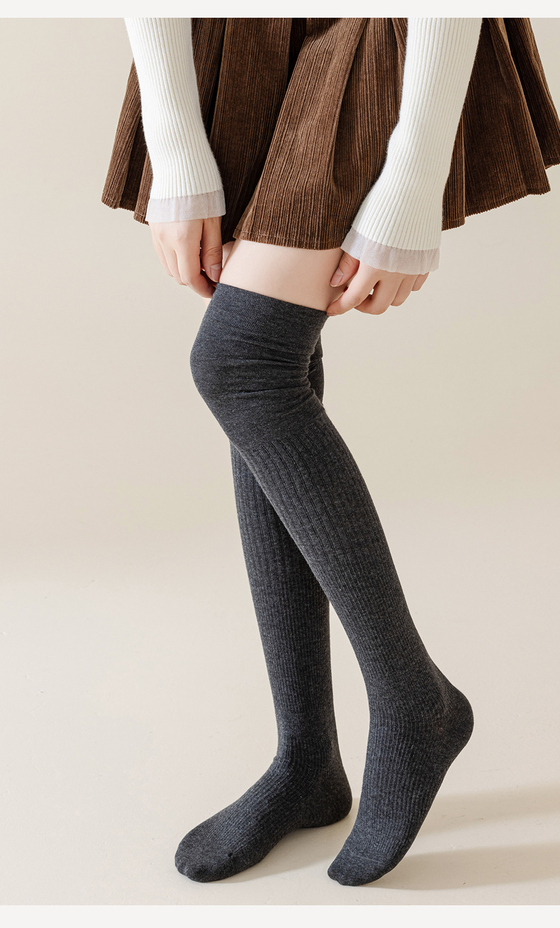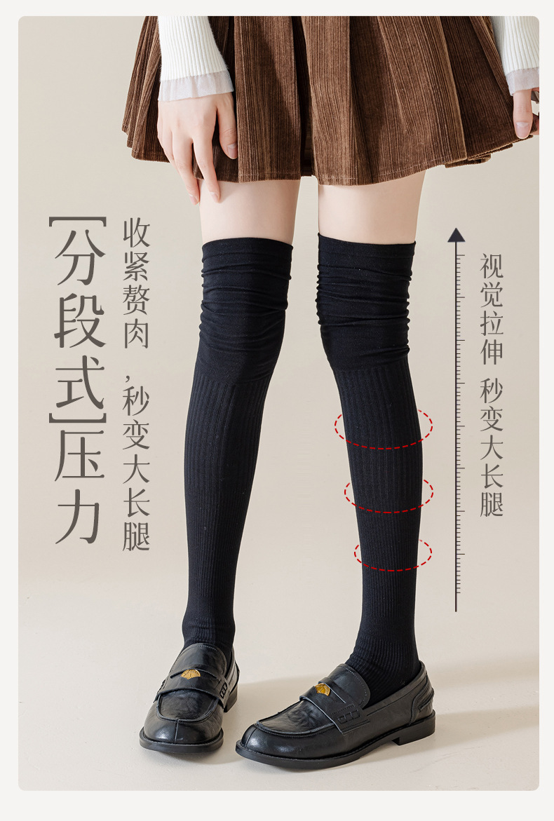 一體色紡壓力過膝襪舒適無骨防臭抗起球棉質吸汗微壓中厚款壓力襪