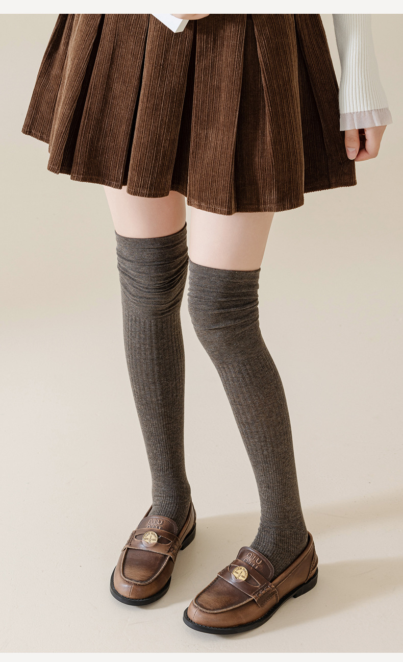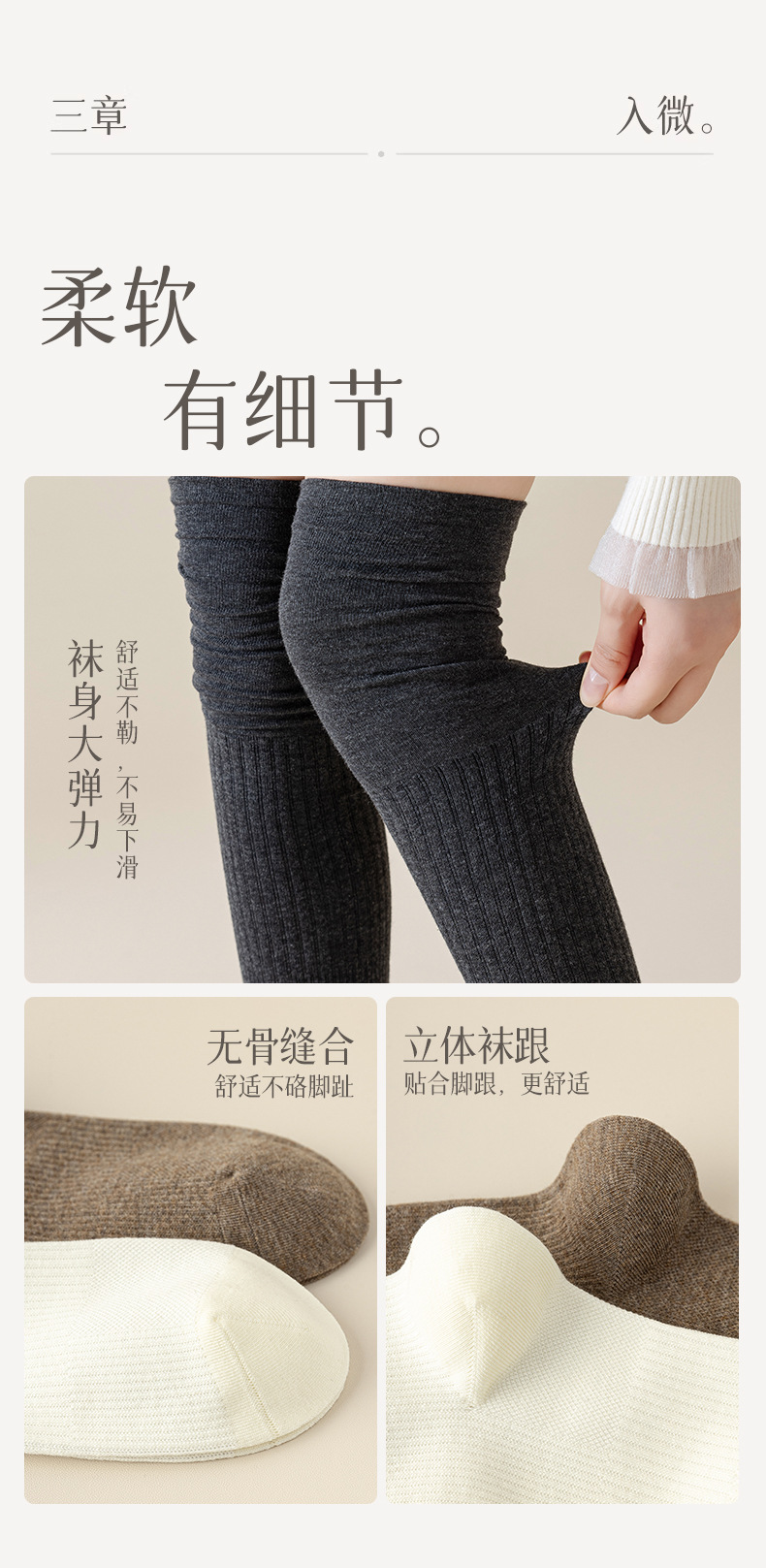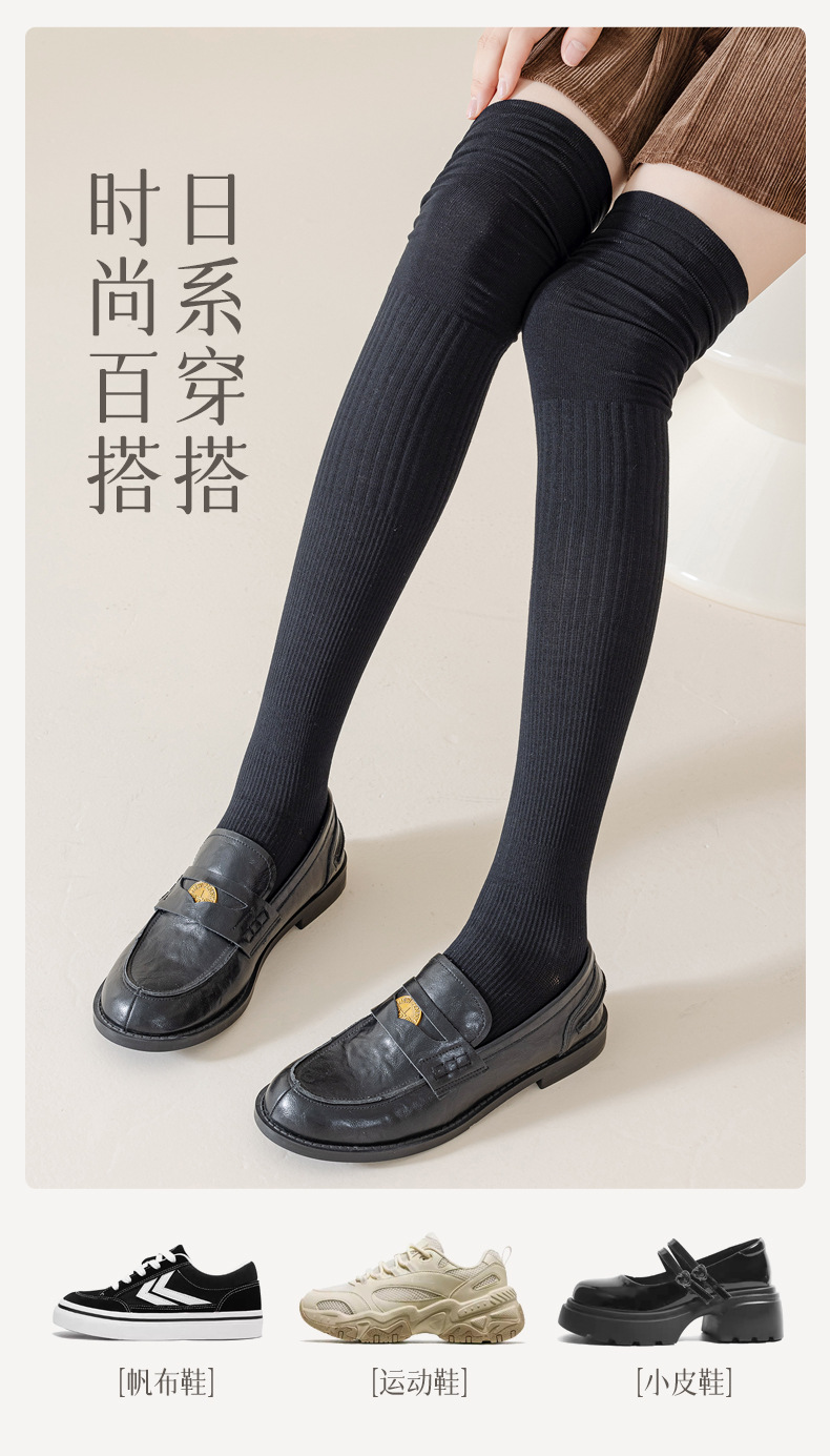 一體色紡壓力過膝襪舒適無骨防臭抗起球棉質吸汗微壓中厚款壓力襪