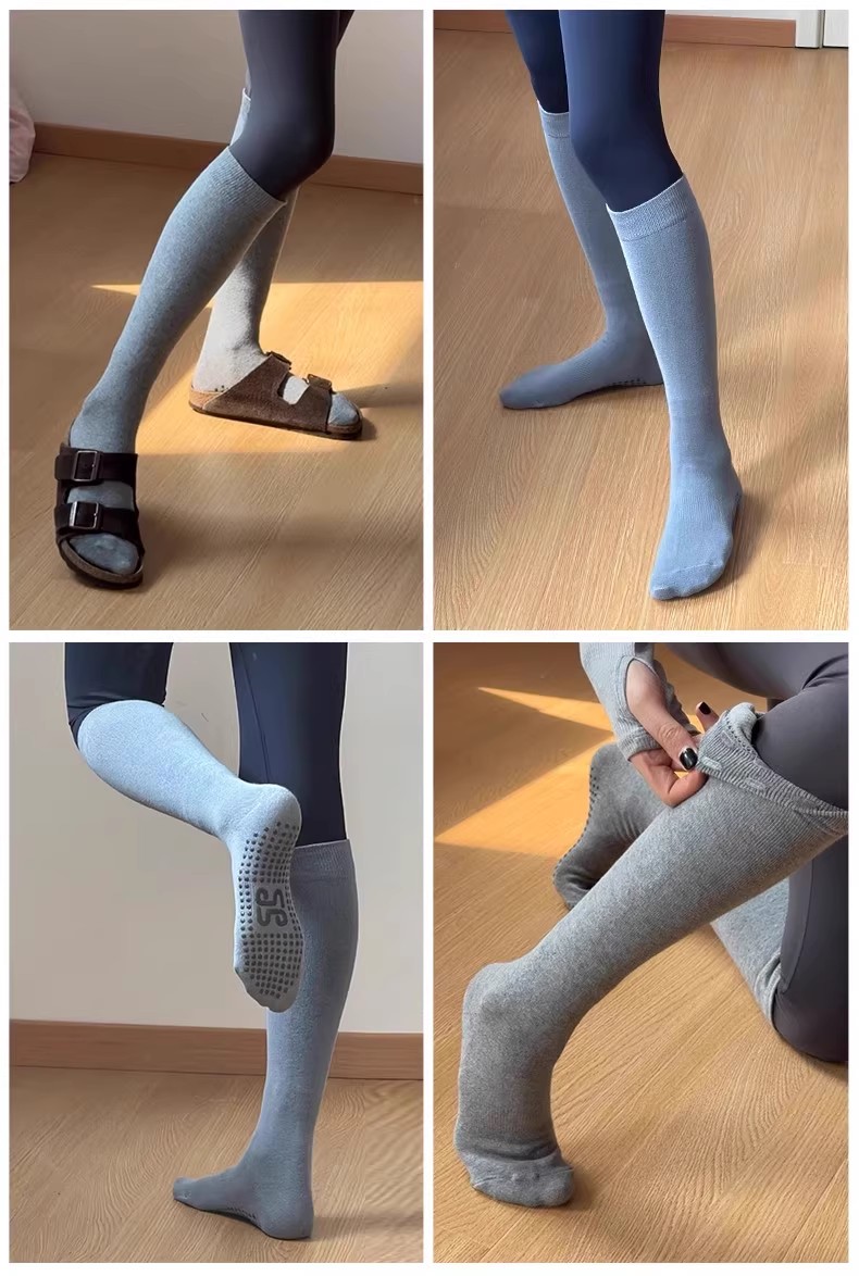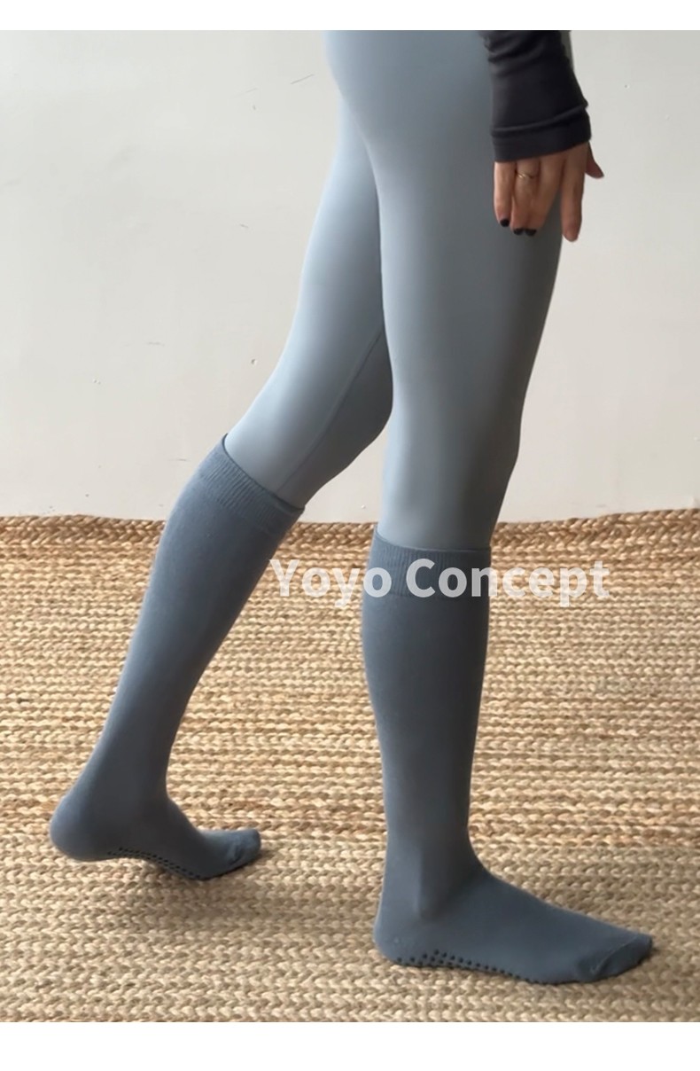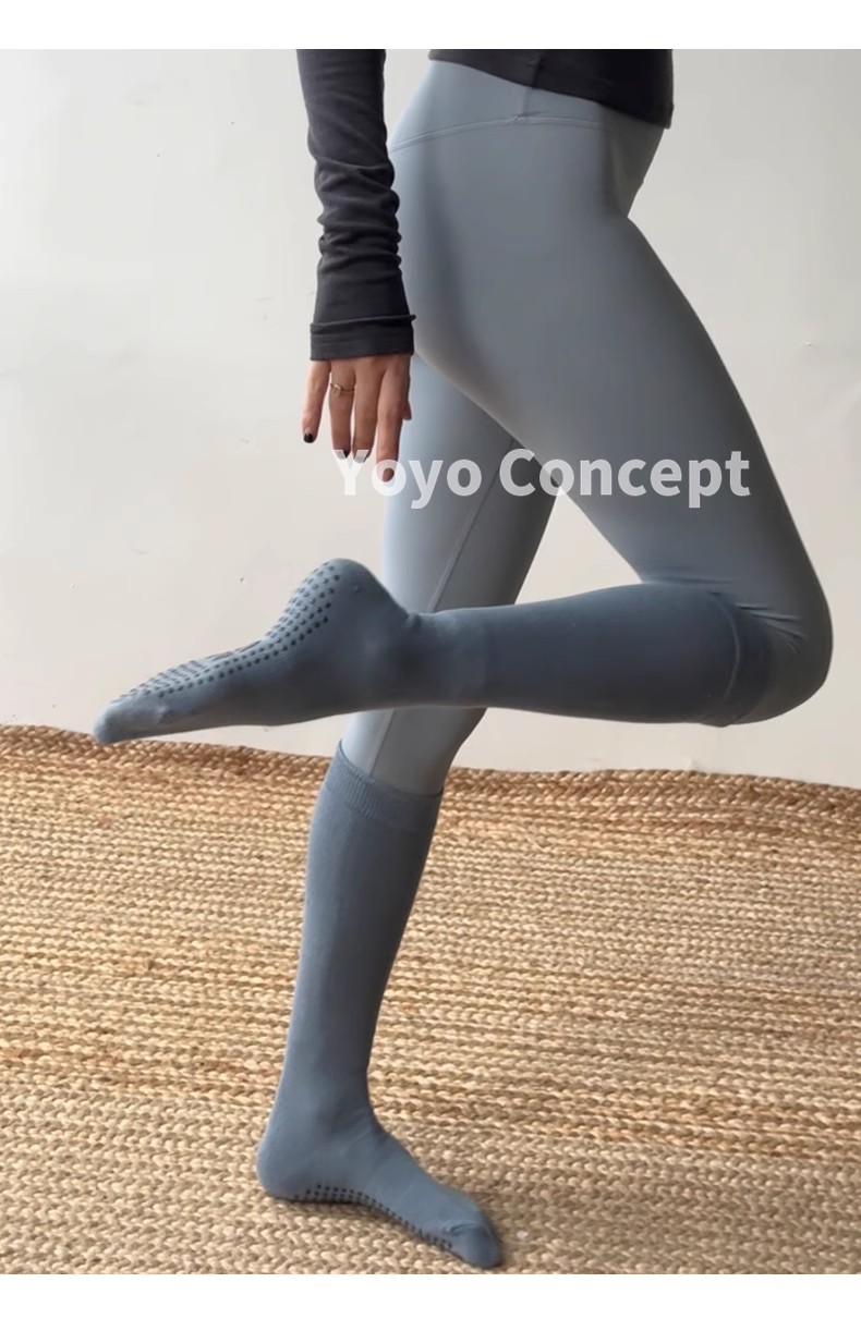 yoyo推薦中長筒運動訓練襪女夏普拉提防滑瑜珈襪健身瘦腿壓力襪子