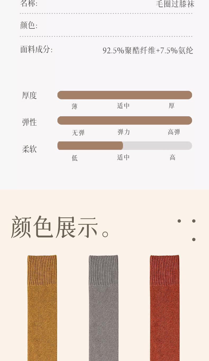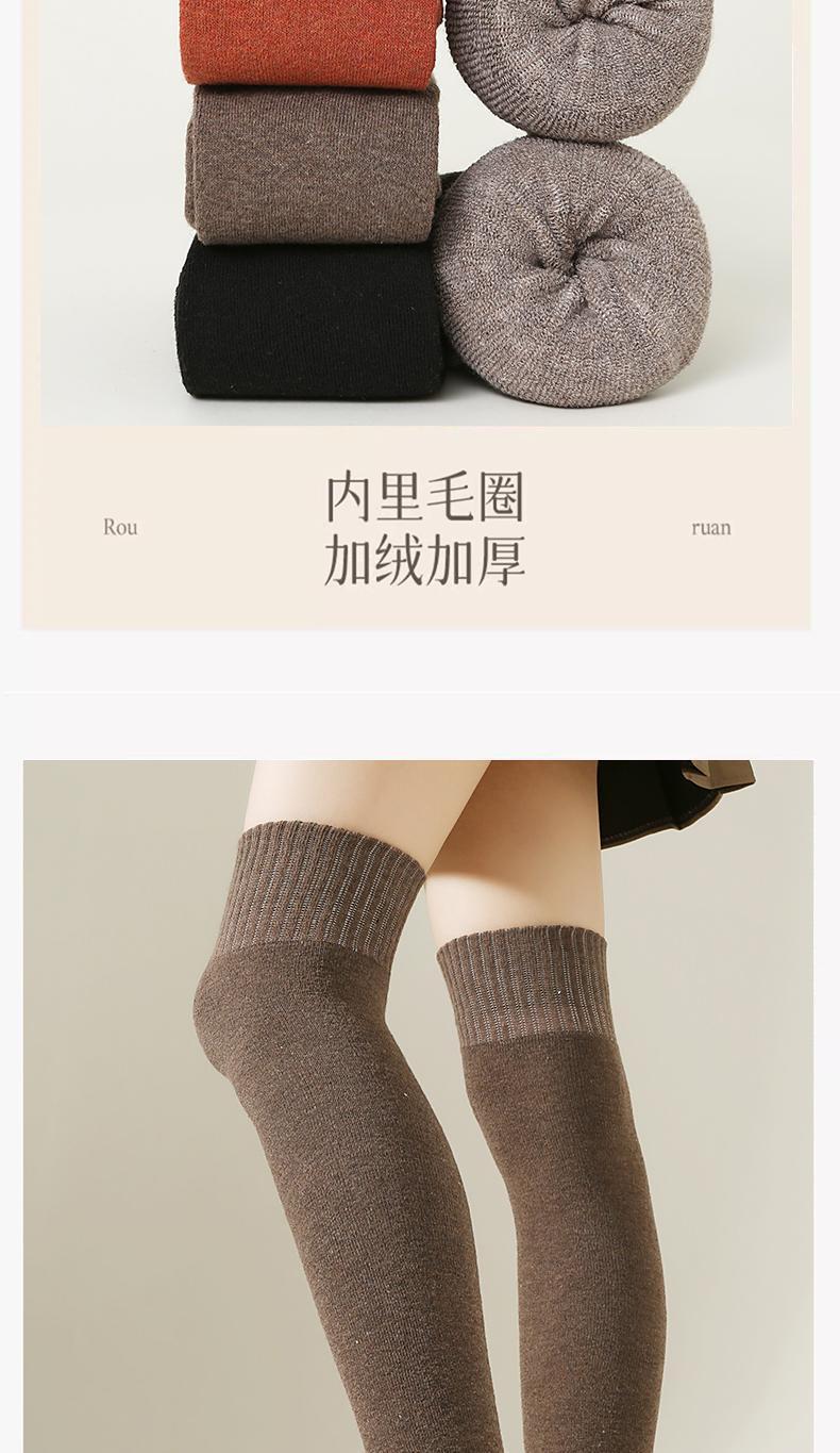 浪莎加厚毛圈過膝襪女秋冬季保暖長筒襪純色護腿壓力襪防滑高筒襪