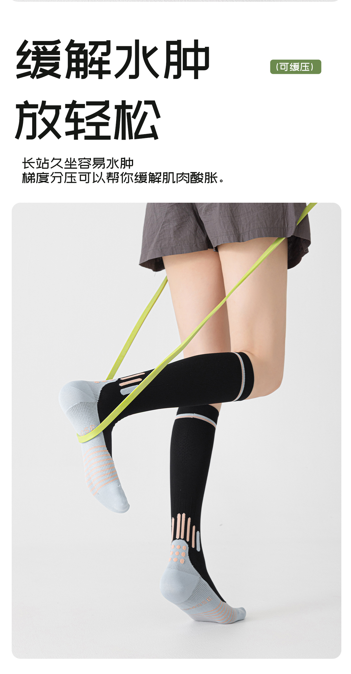 運動壓力襪子女長筒襪健身跑步跳繩瑜珈襪壓縮肌能顯瘦美腿小腿襪