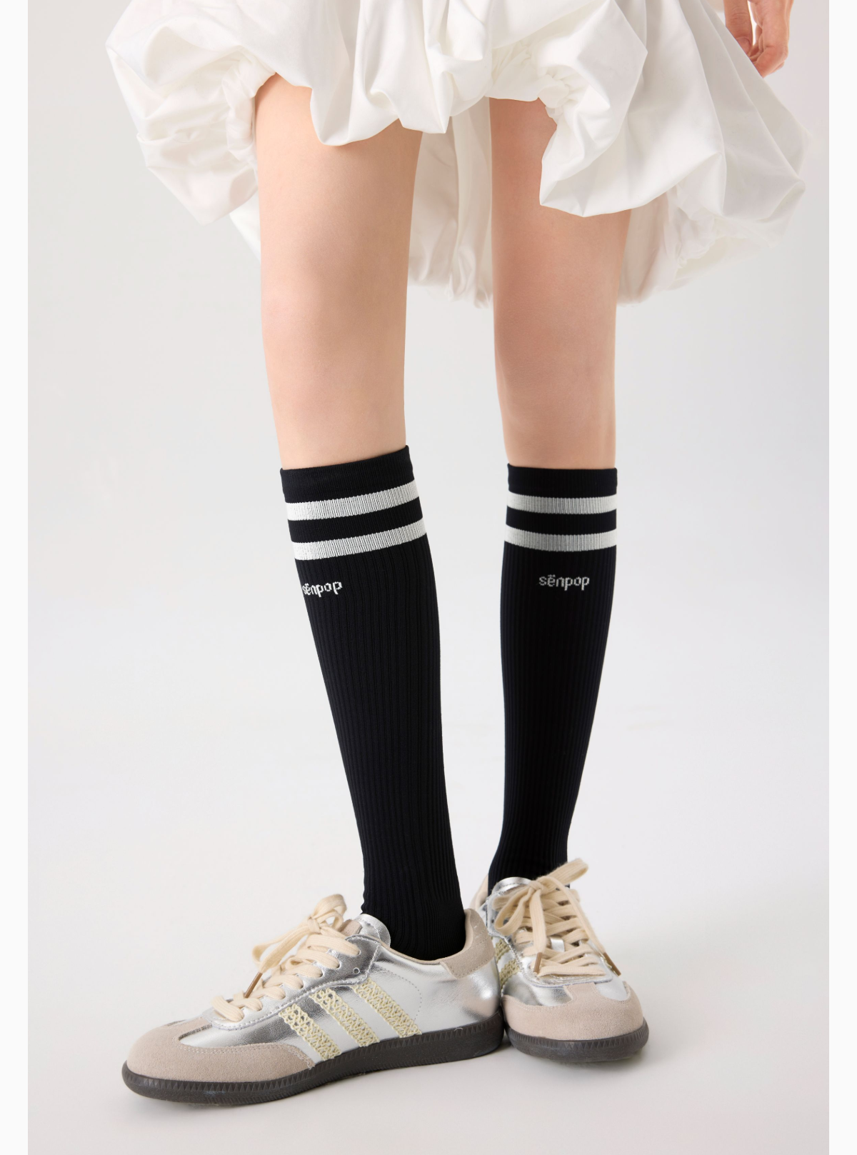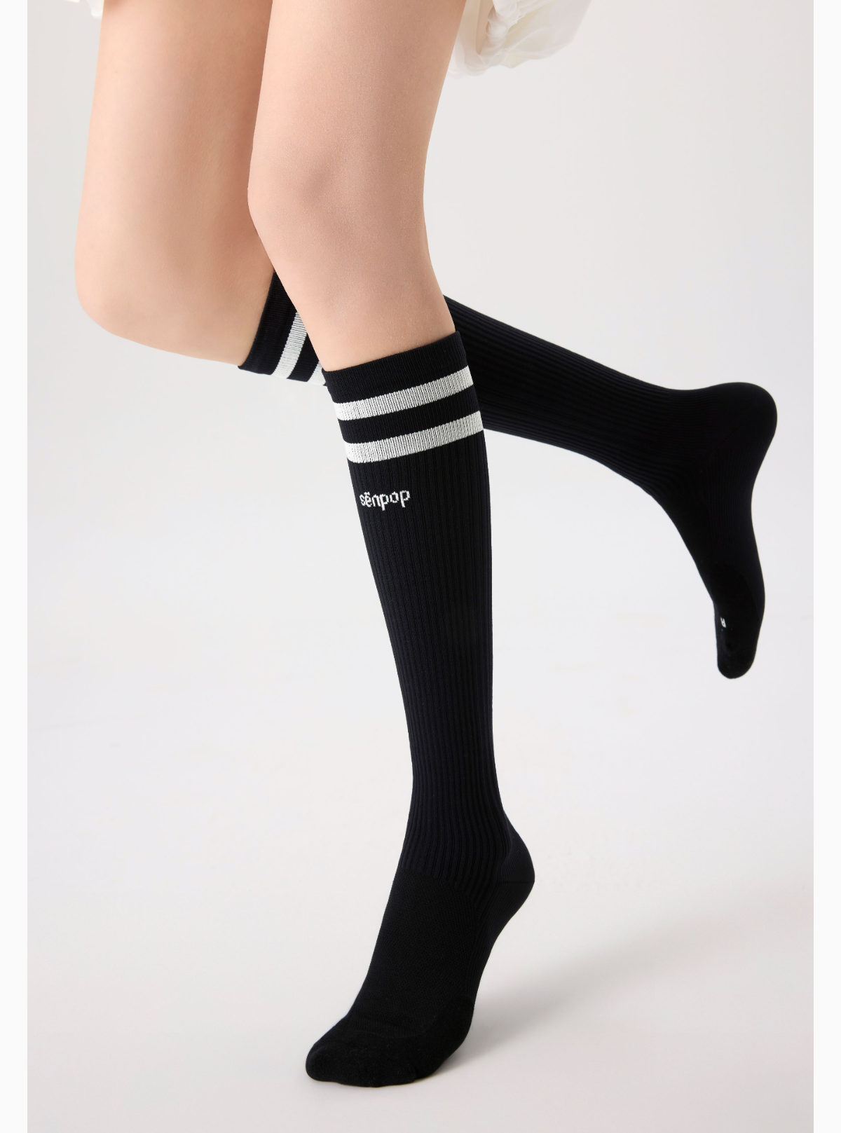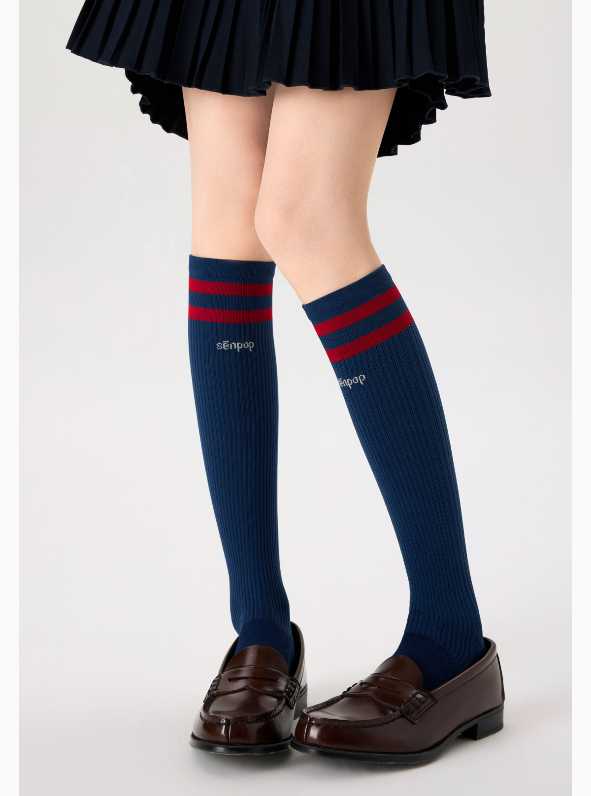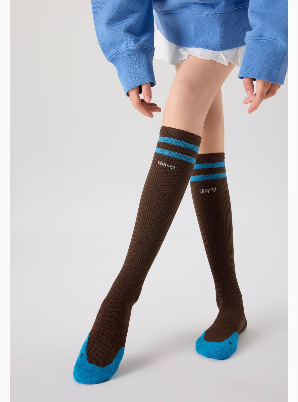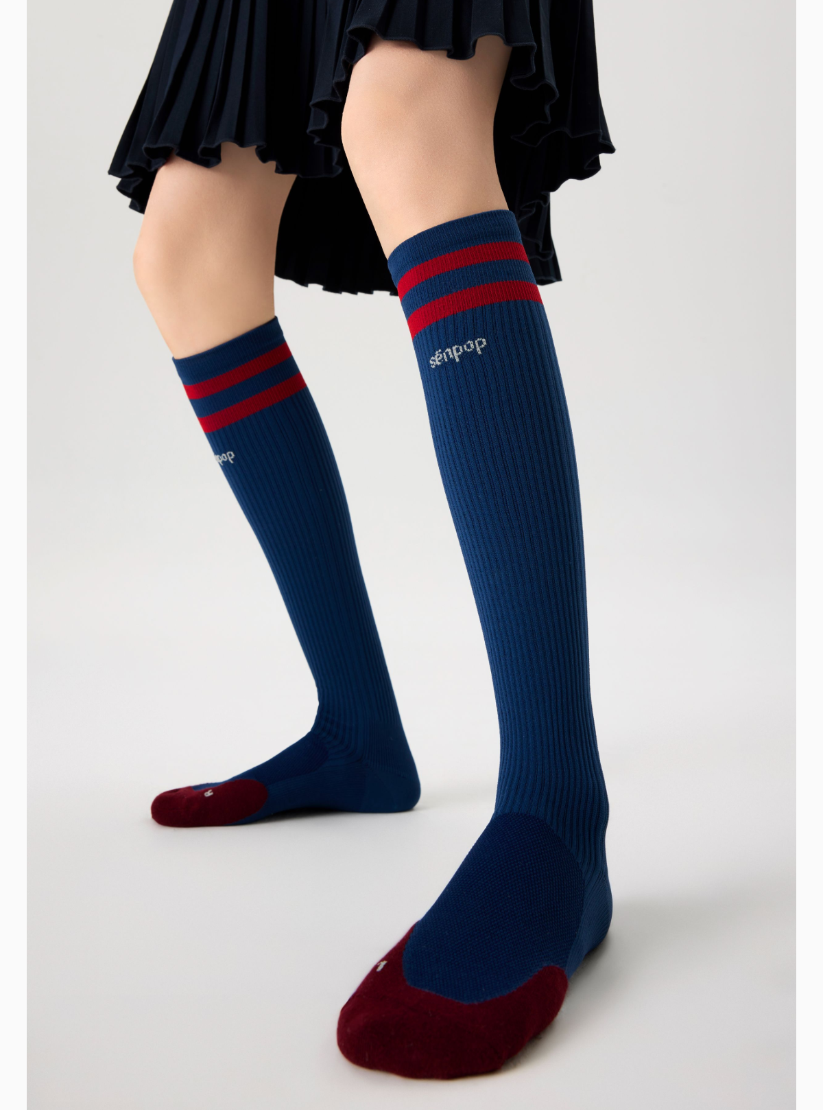 上森藍色小腿襪壓力襪運動學院風jk長筒襪子女跑步跳繩瘦腿壓縮襪