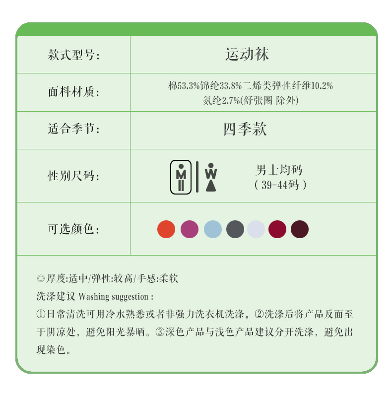 | 面料材質成分 | 棉53.3% 聚醯胺纖維(錦綸)33.8% 二烯類彈性纖維10.2% 聚氨酯彈性纖維(氨綸)2.7% |