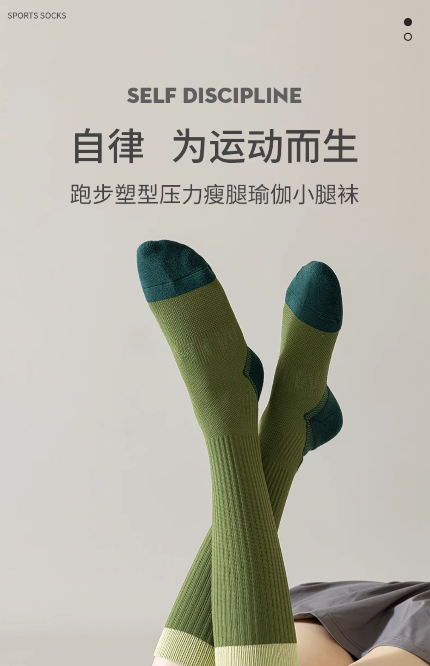 壓力襪子女士專業健身跳繩跑步運動壓縮肌能防滑高筒瑜珈小腿襪長