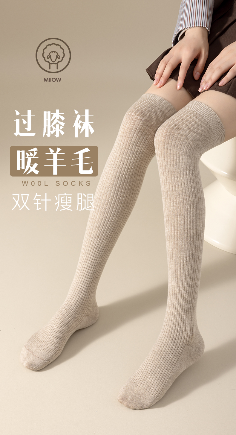 貓人羊毛過膝襪女款長筒大腿襪秋冬保暖護膝襪高筒壓力小腿襪長襪