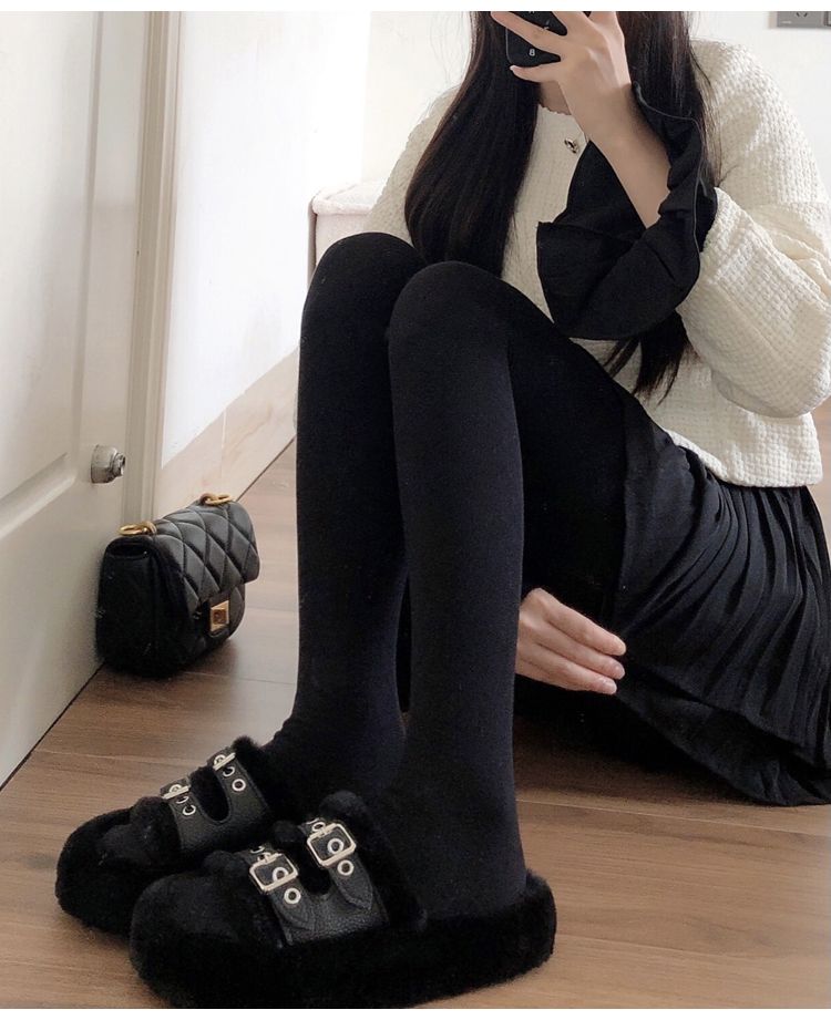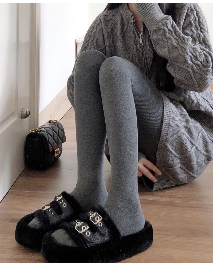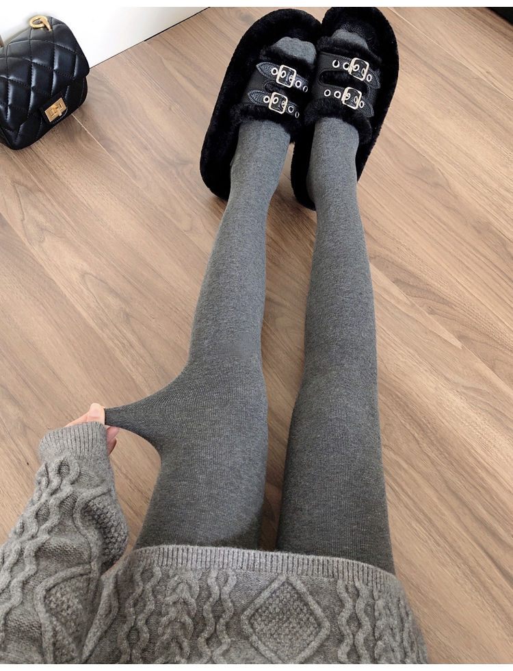 深灰色連褲襪女秋冬加絨打底褲外穿微壓加厚黑穿搭配裙子打底襪褲