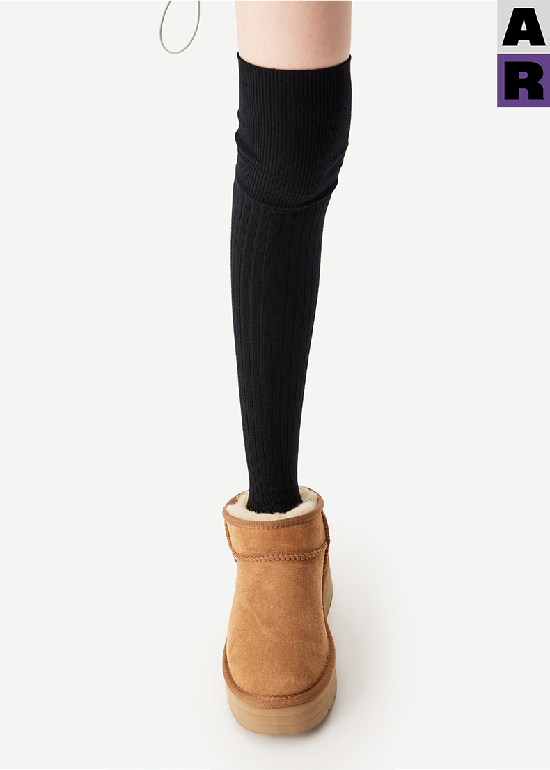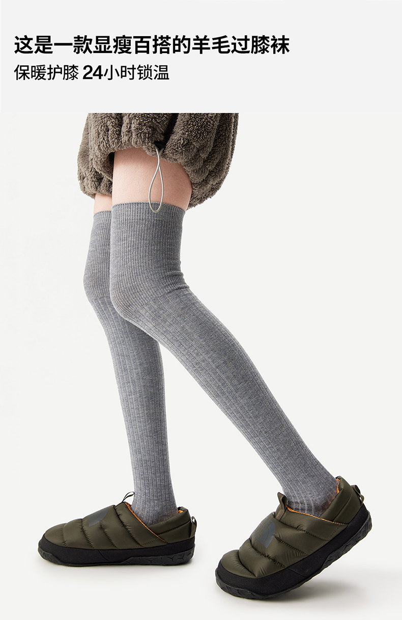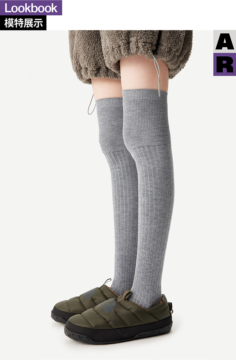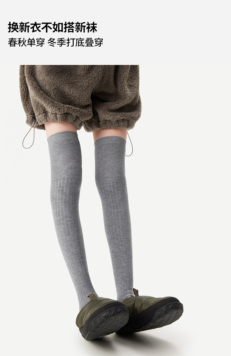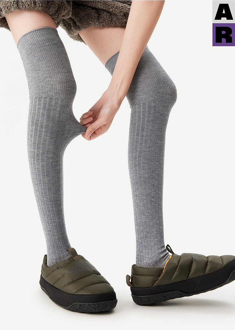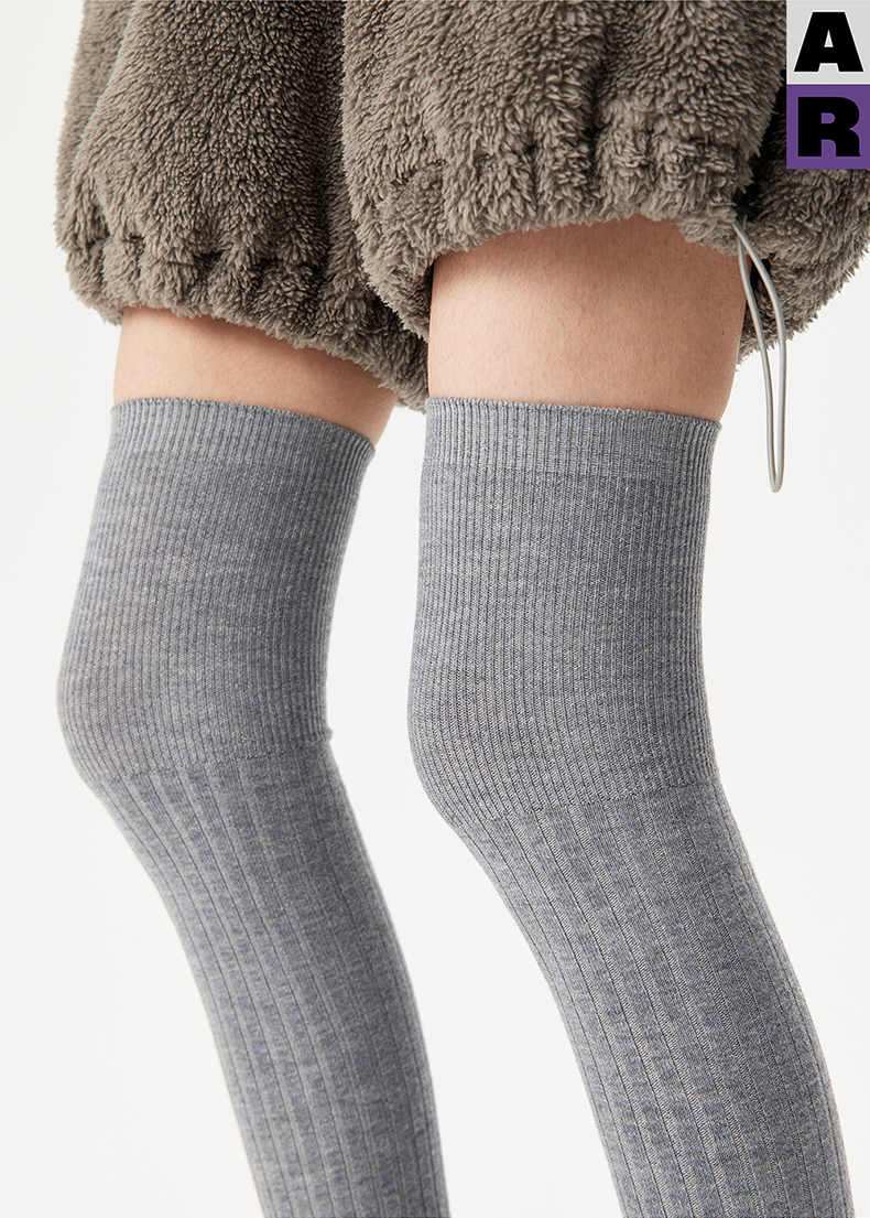 AR美利奴羊毛過膝襪子女秋冬款保暖護膝顯瘦灰色長筒小腿襪miu系