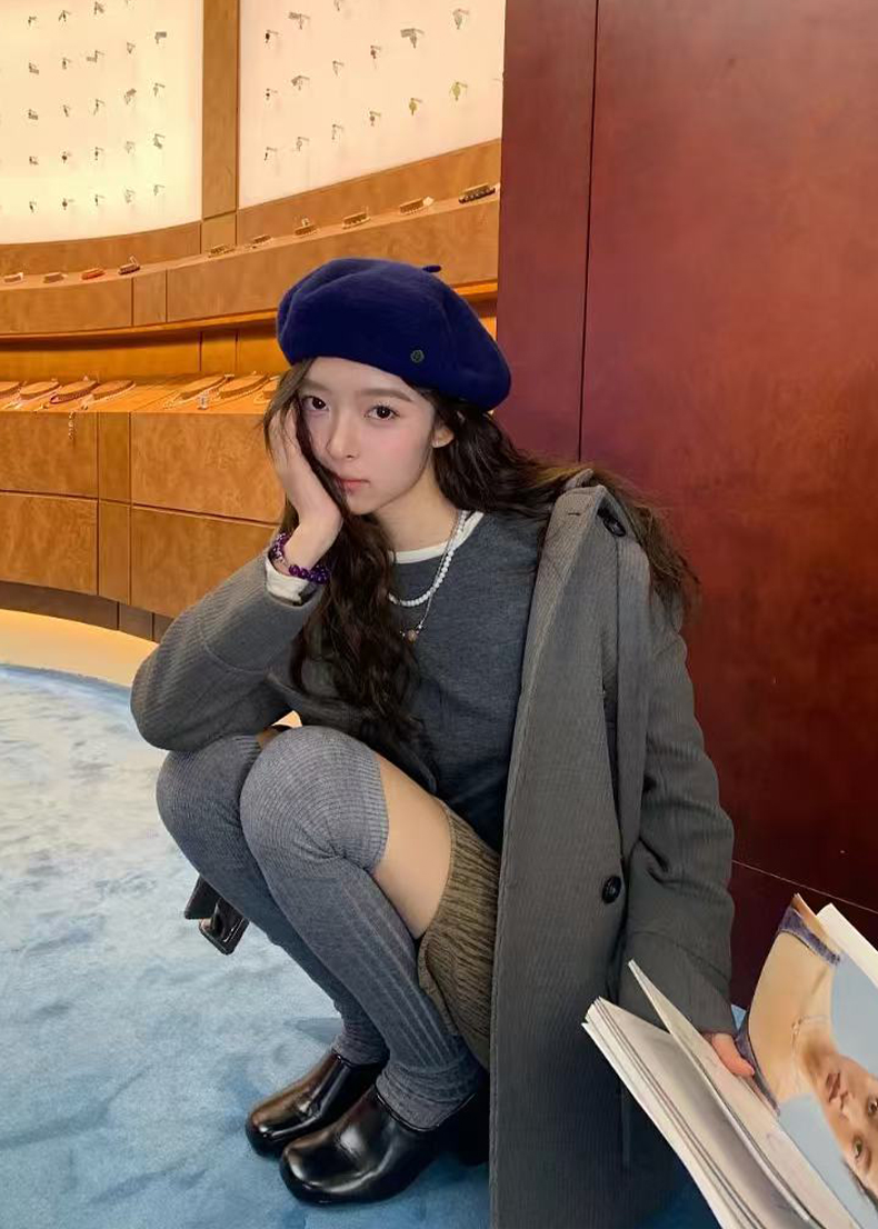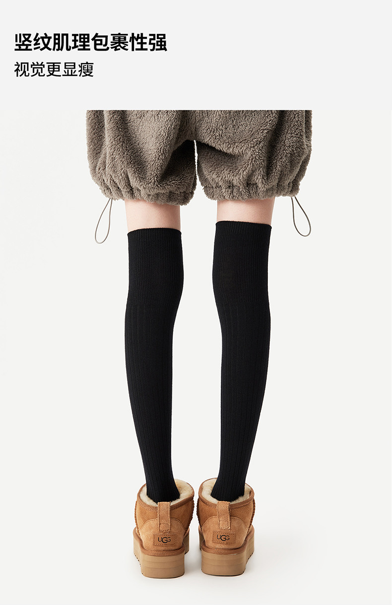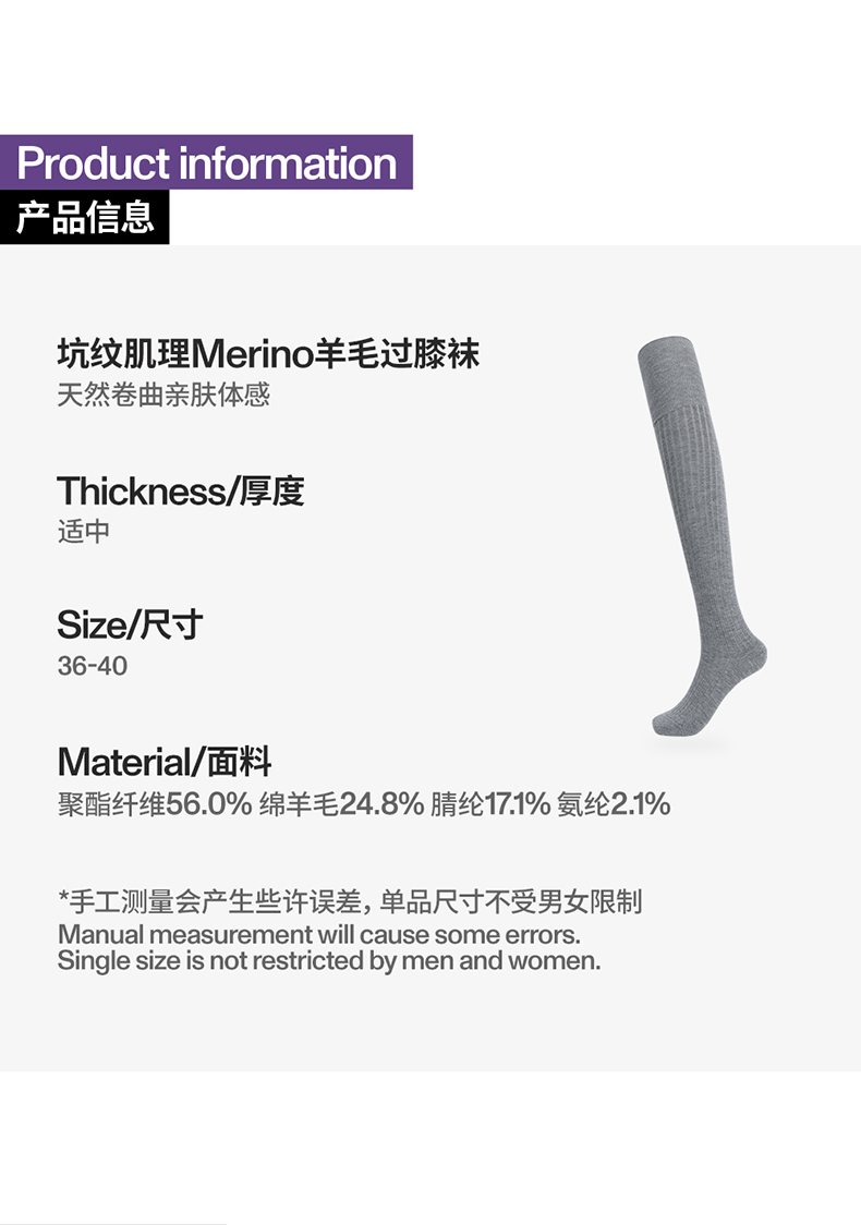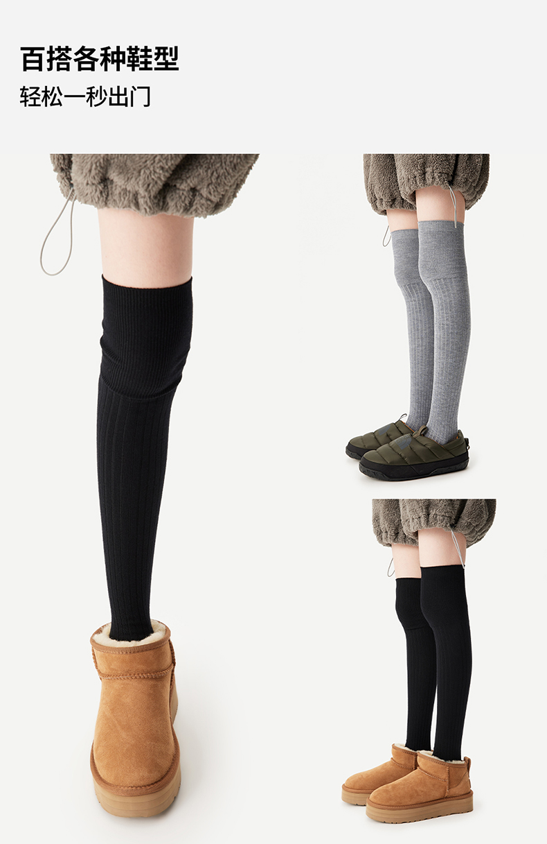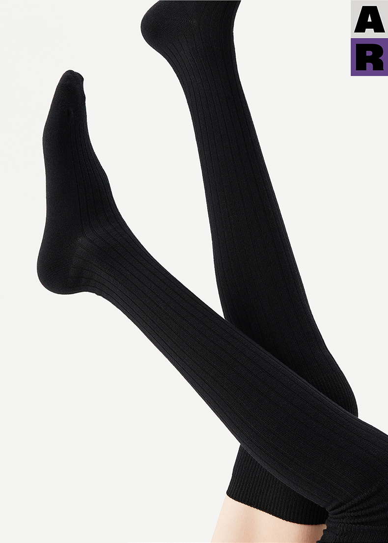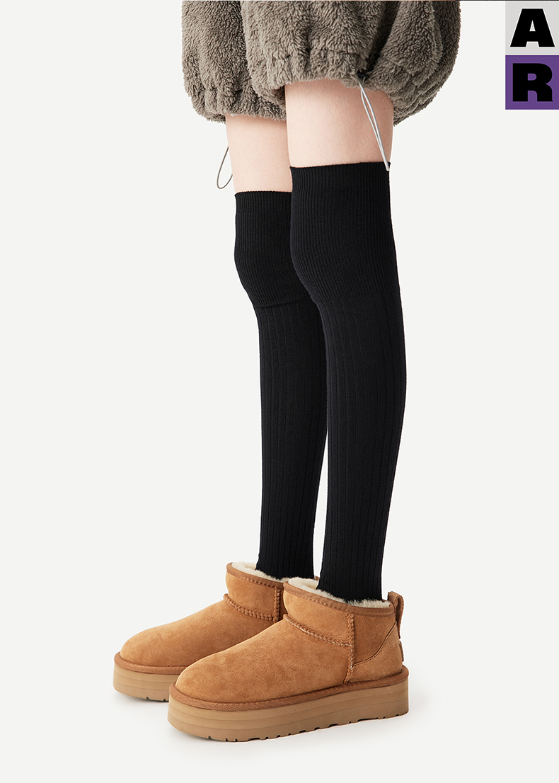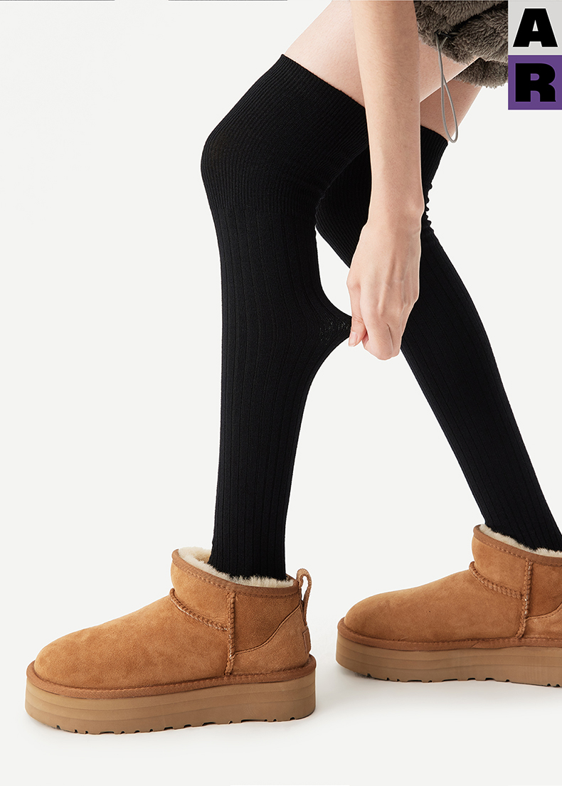 AR美利奴羊毛過膝襪子女秋冬款保暖護膝顯瘦灰色長筒小腿襪miu系