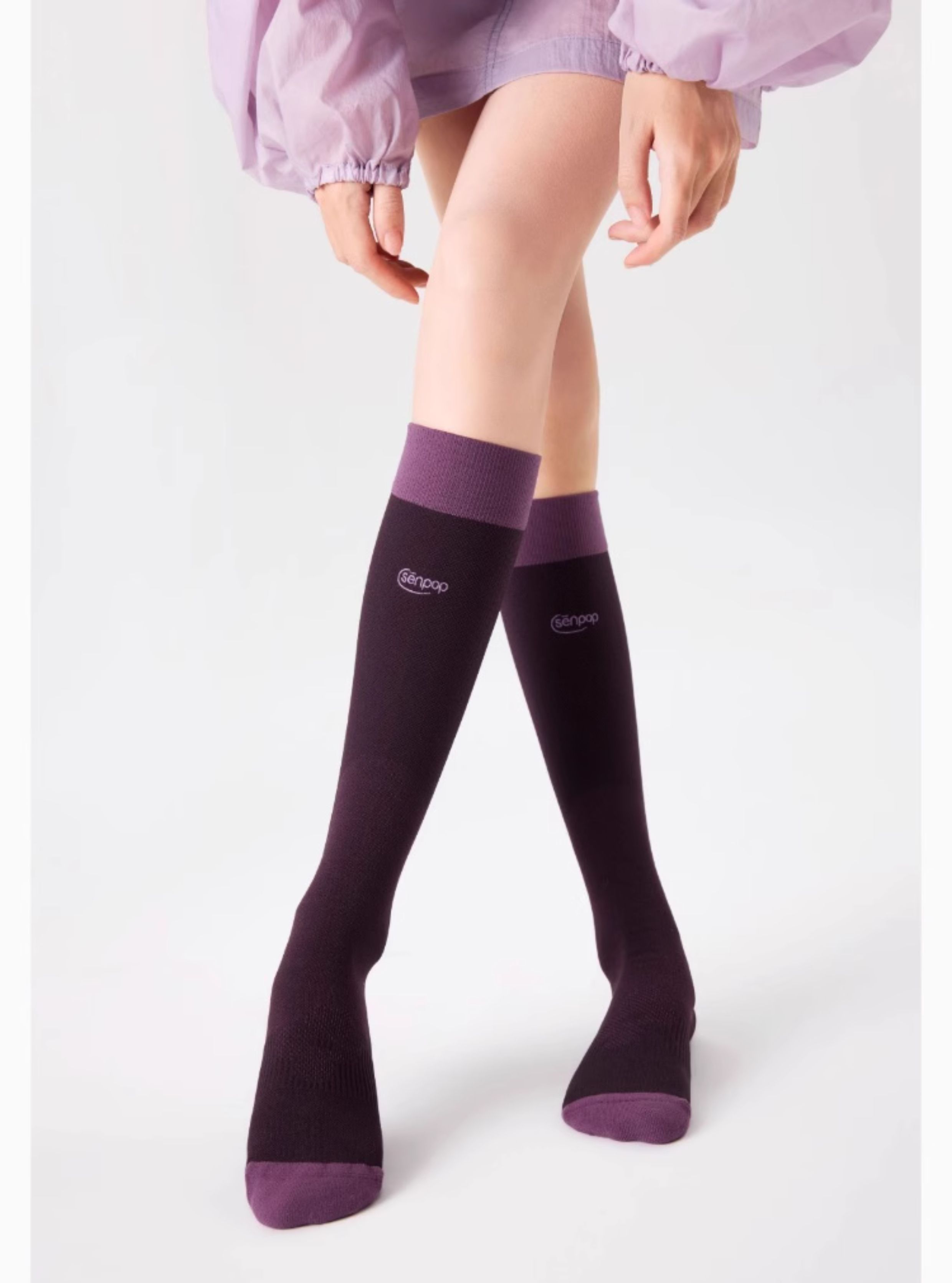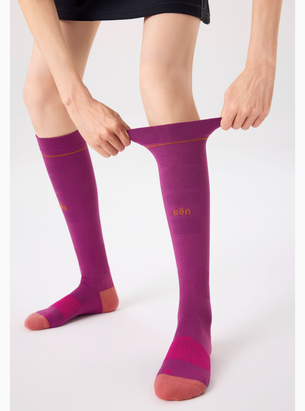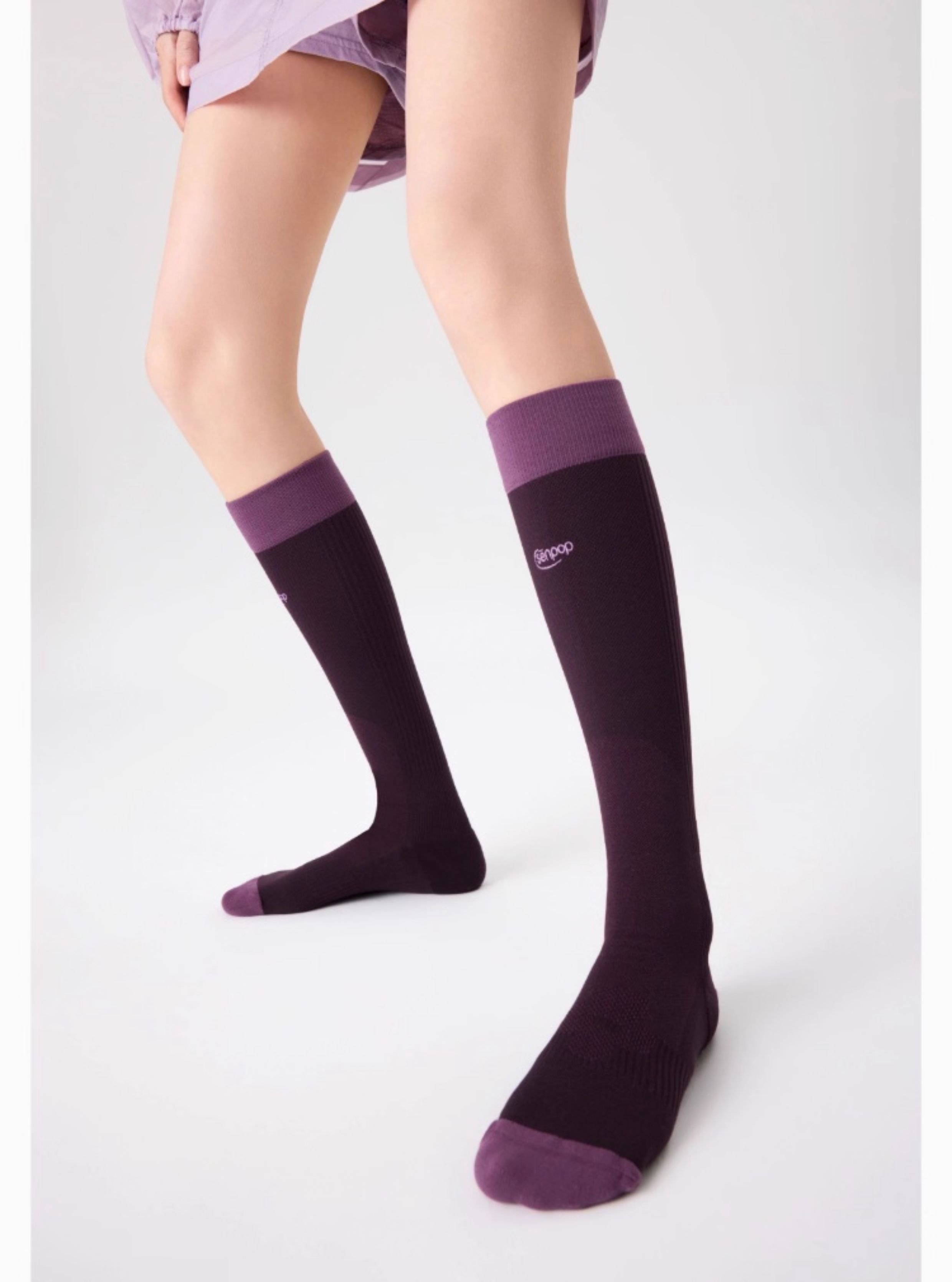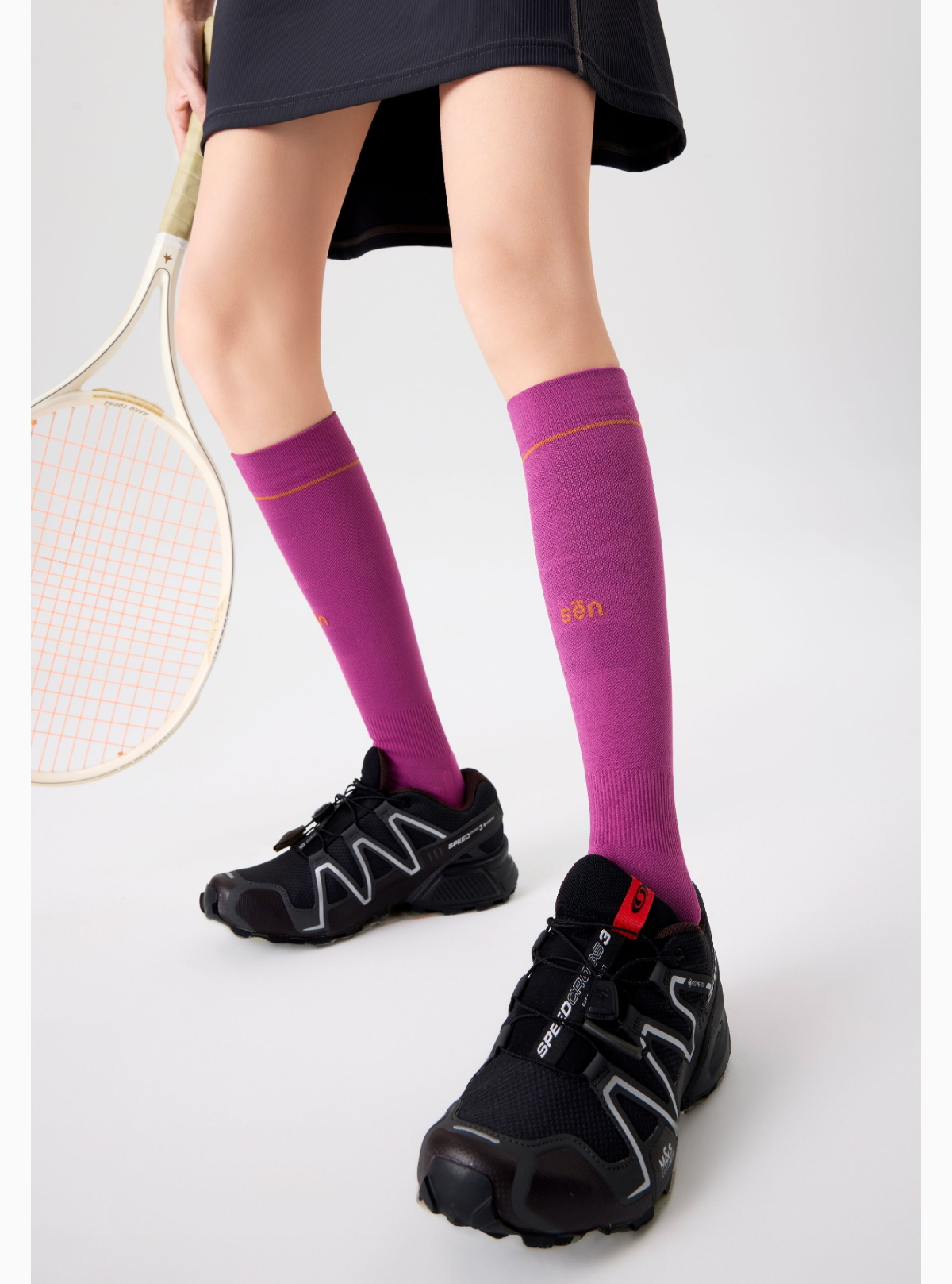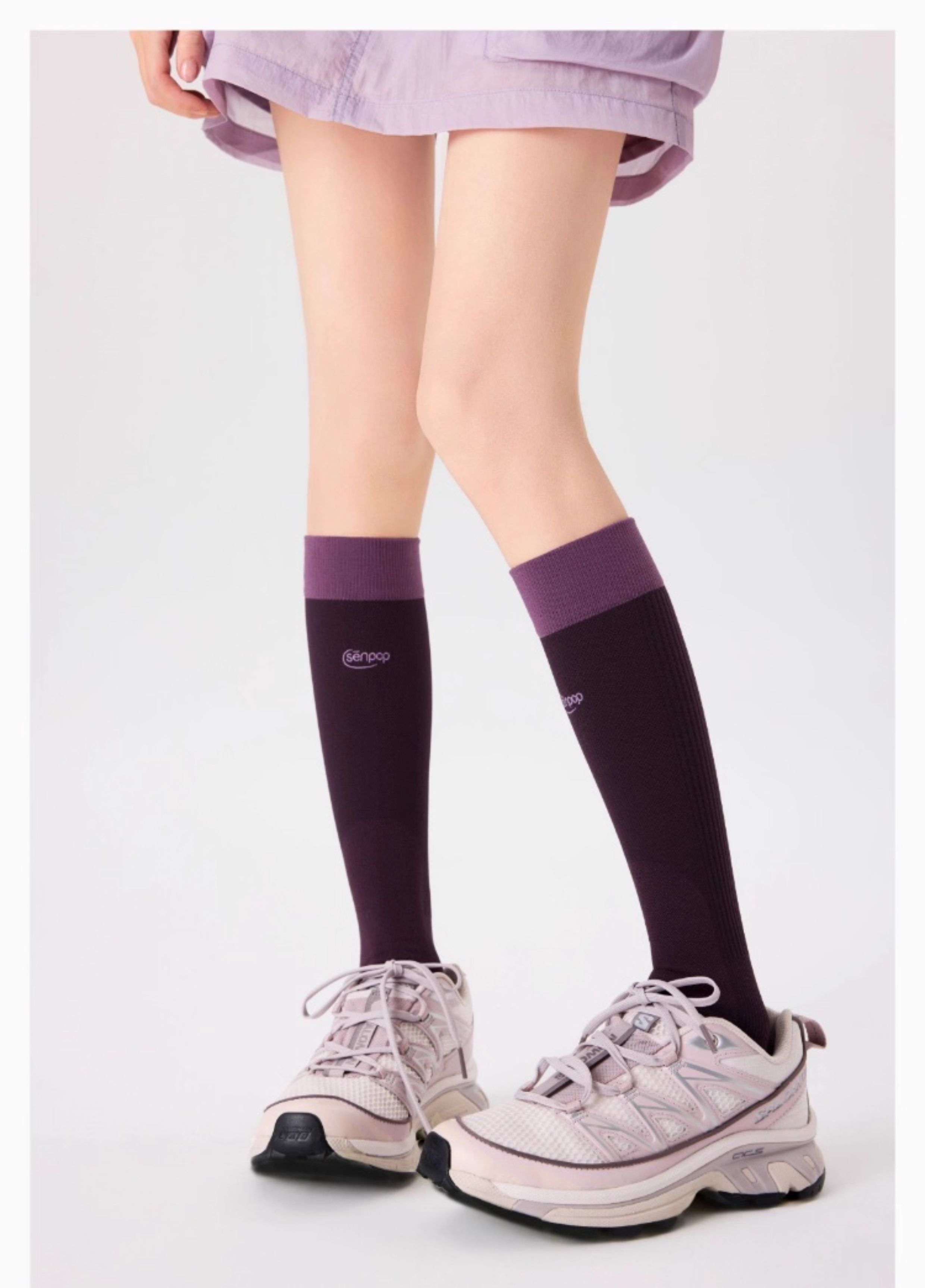上森運動壓力襪健身騎行小腿襪登山網球彈力襪徒步紫色長筒襪夏女