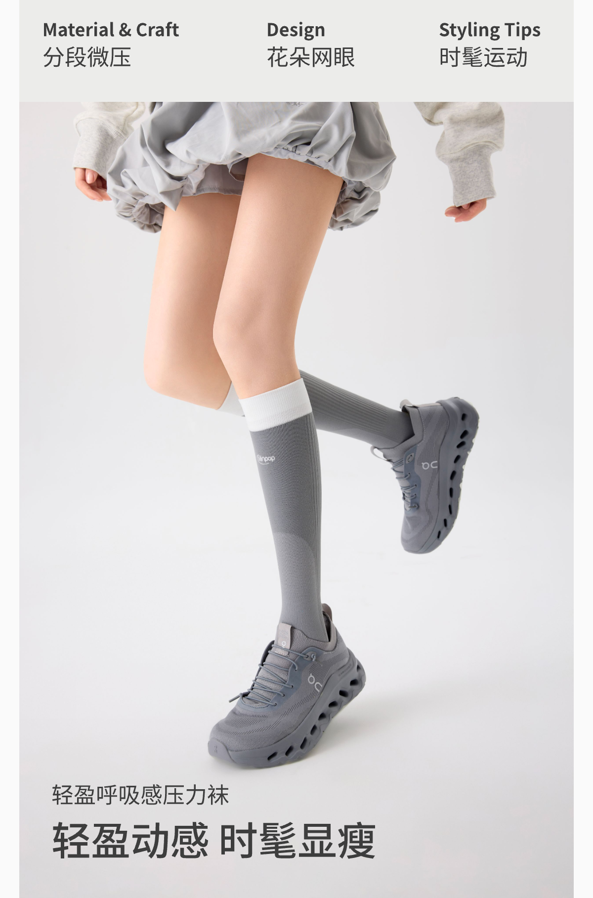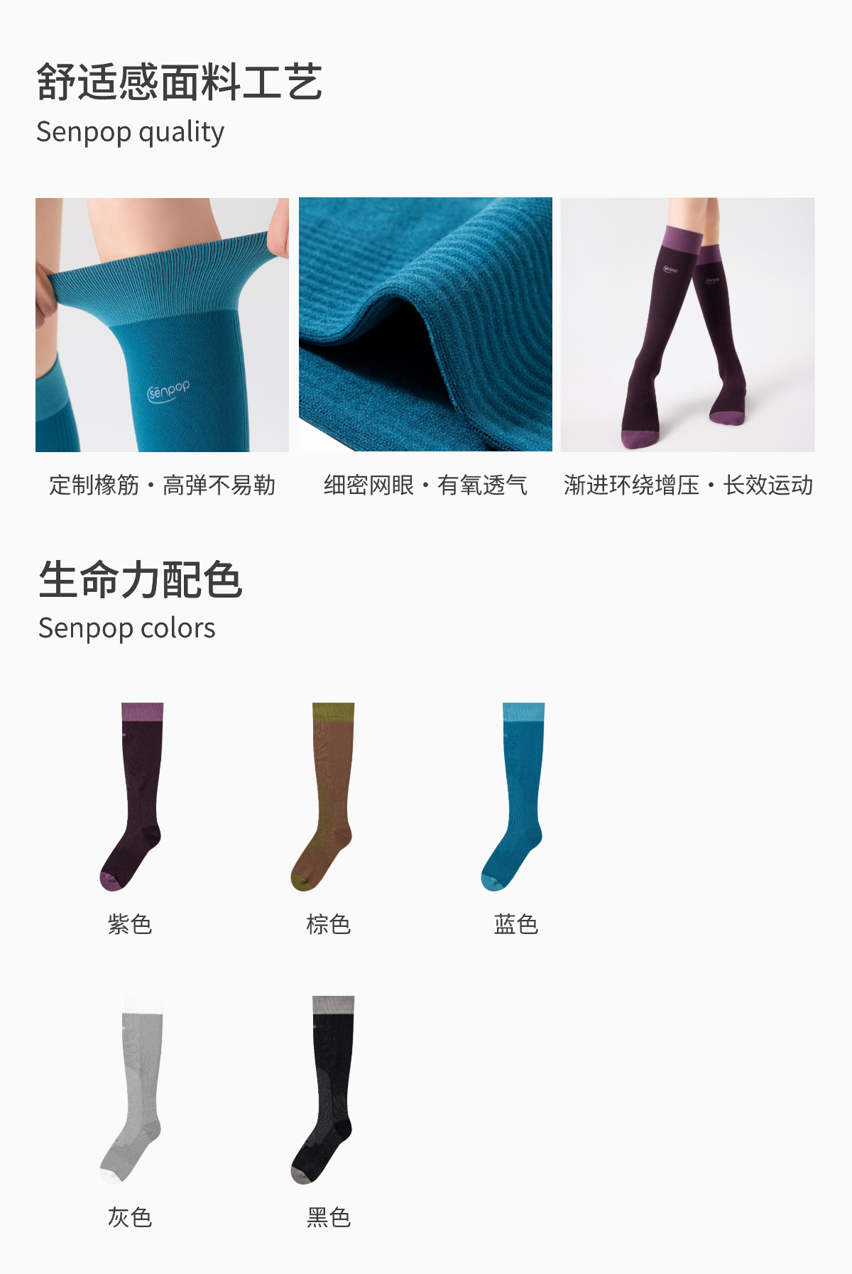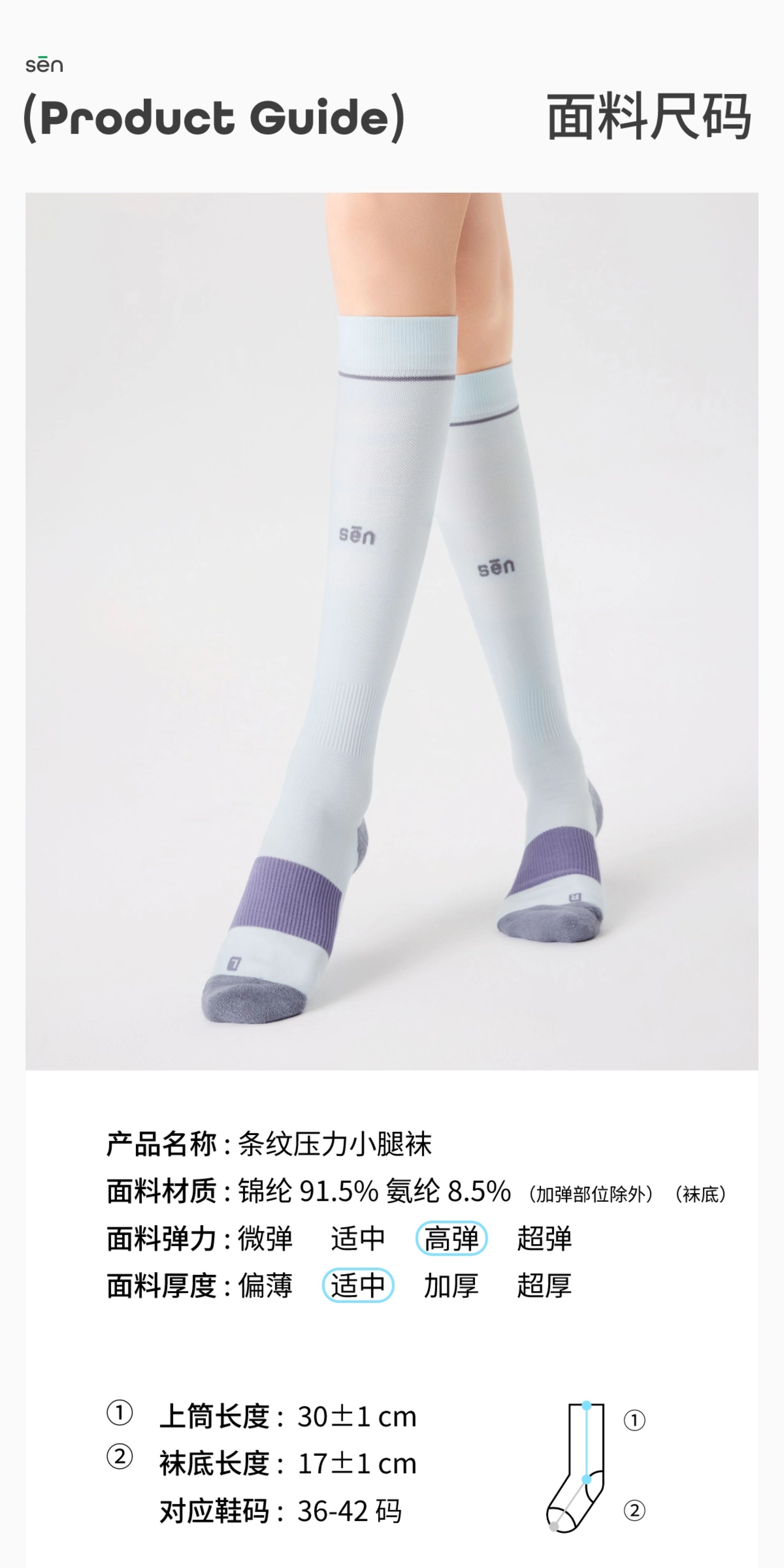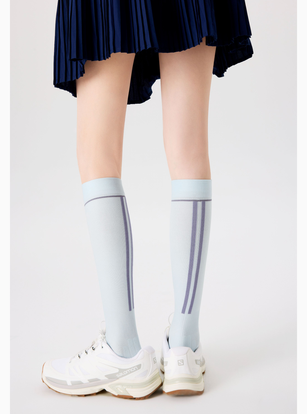 上森運動壓力襪健身騎行小腿襪登山網球彈力襪徒步紫色長筒襪夏女