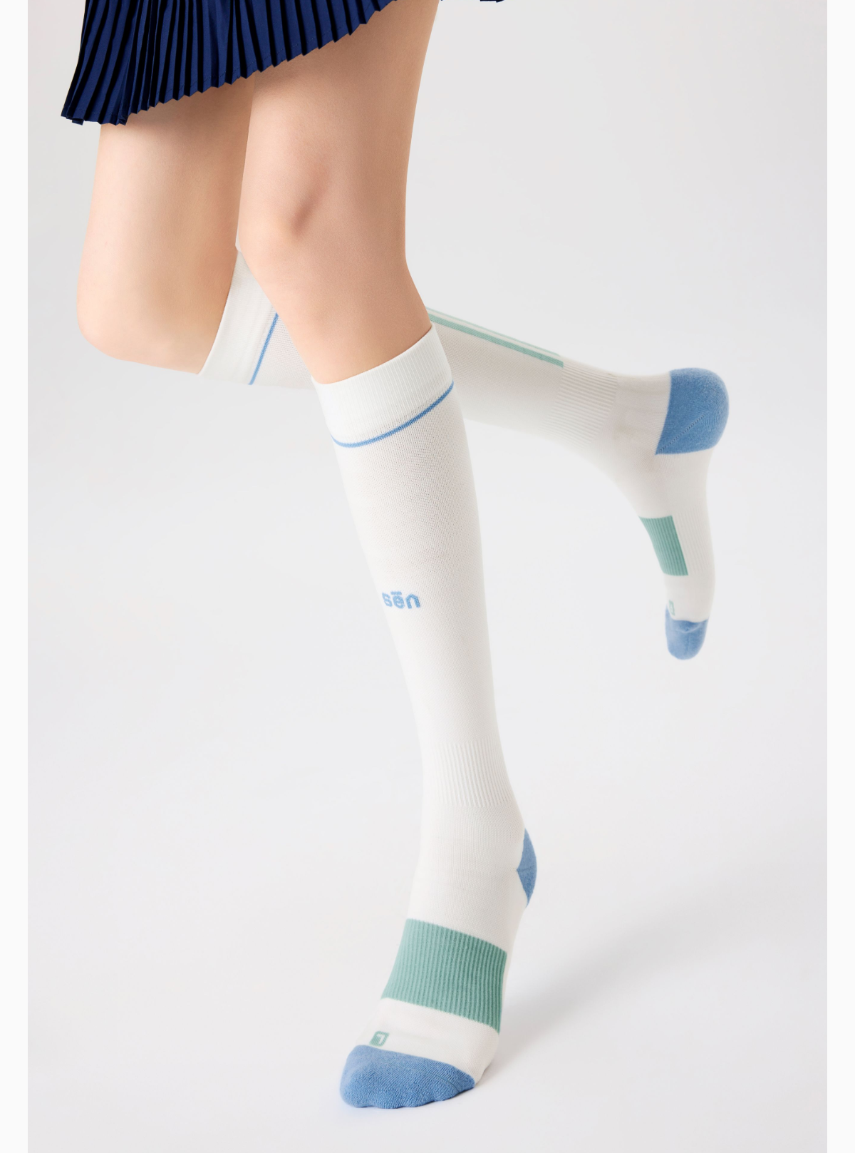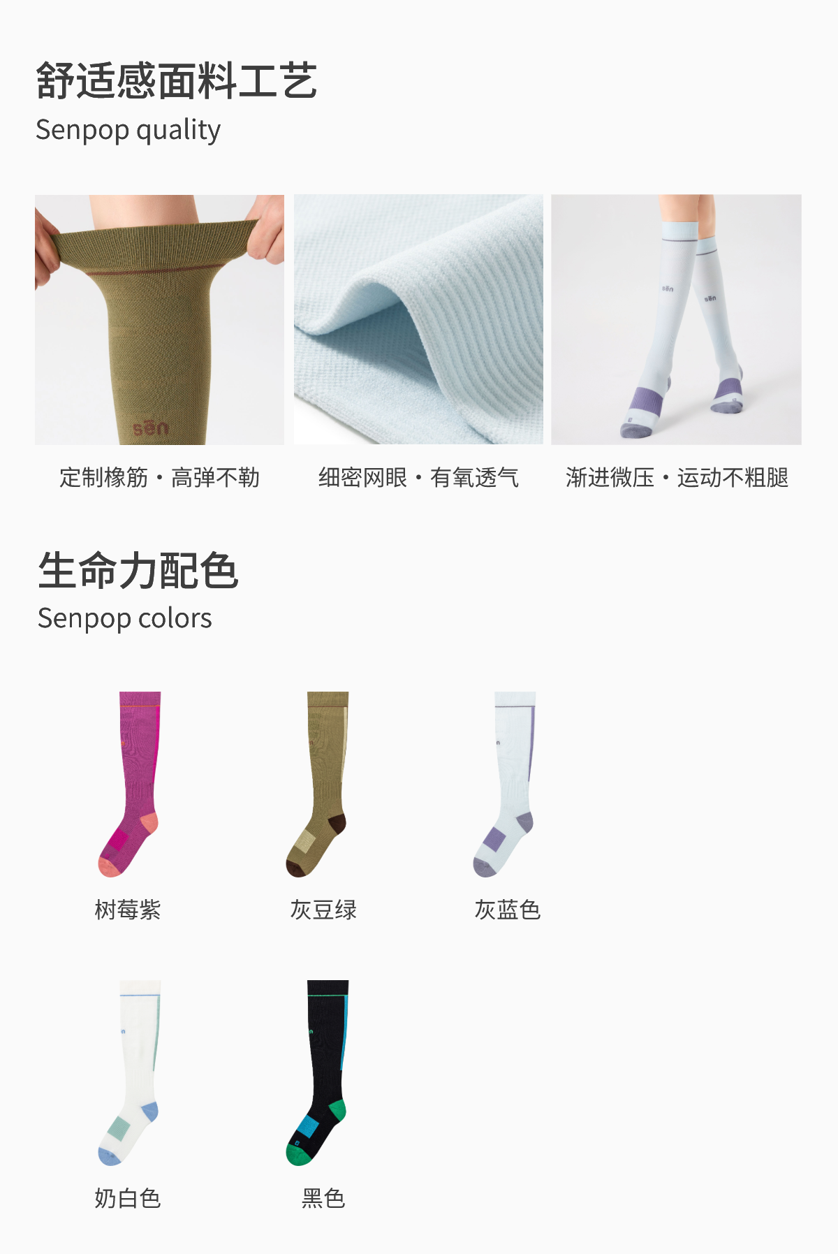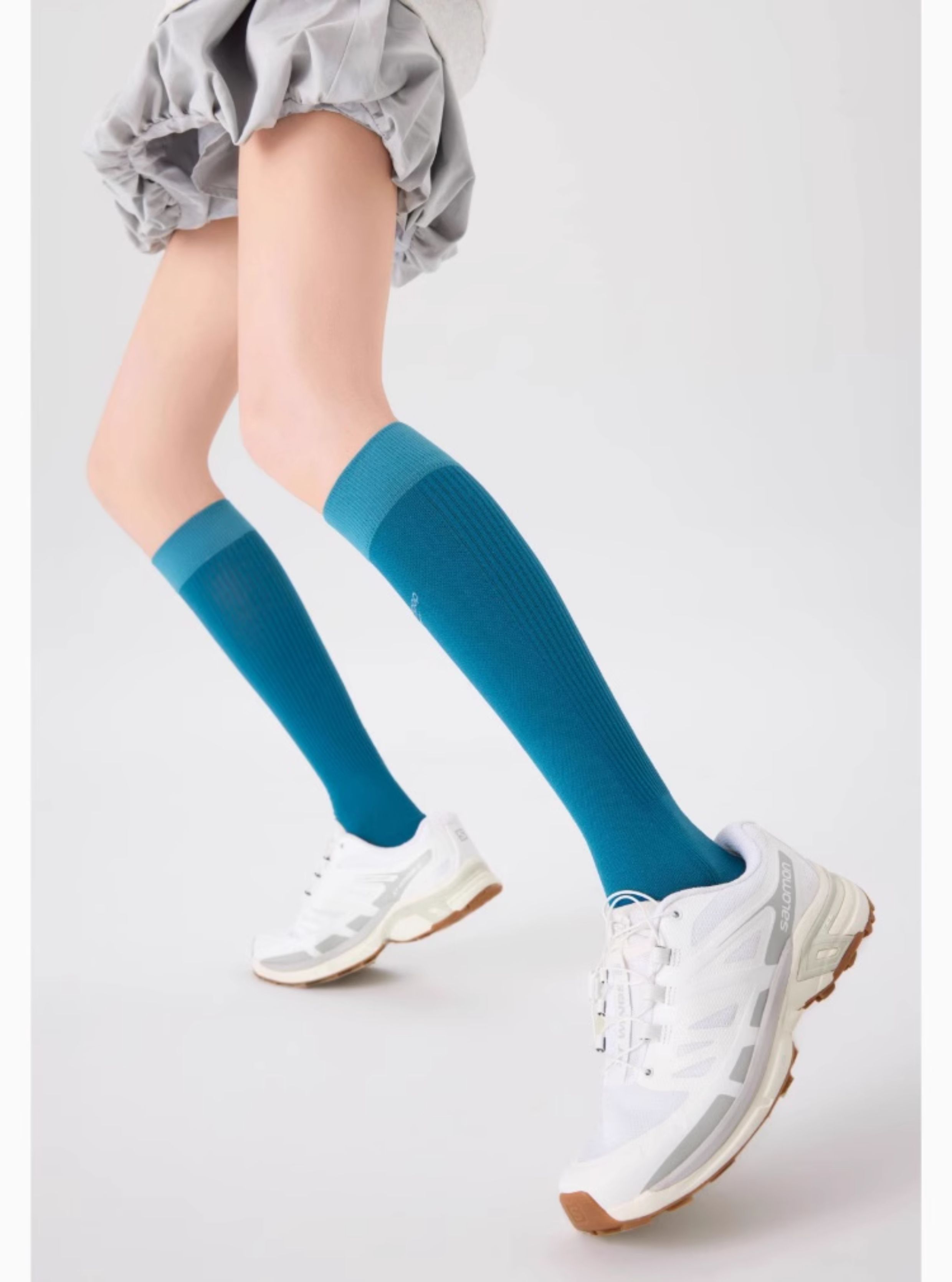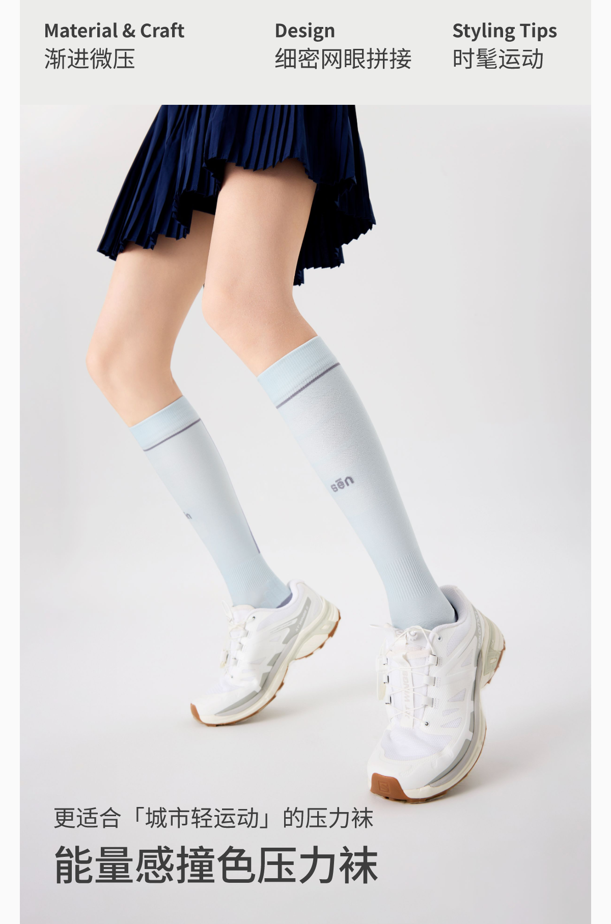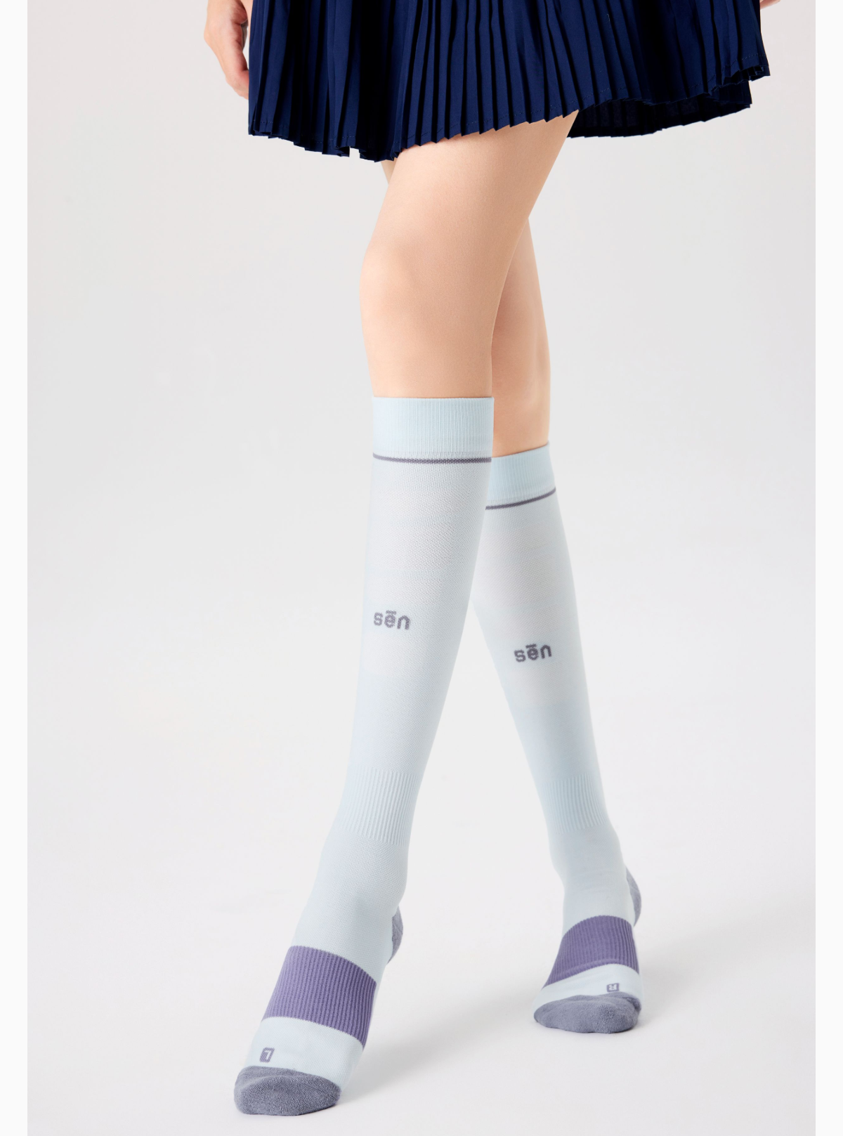 上森運動壓力襪健身騎行小腿襪登山網球彈力襪徒步紫色長筒襪夏女