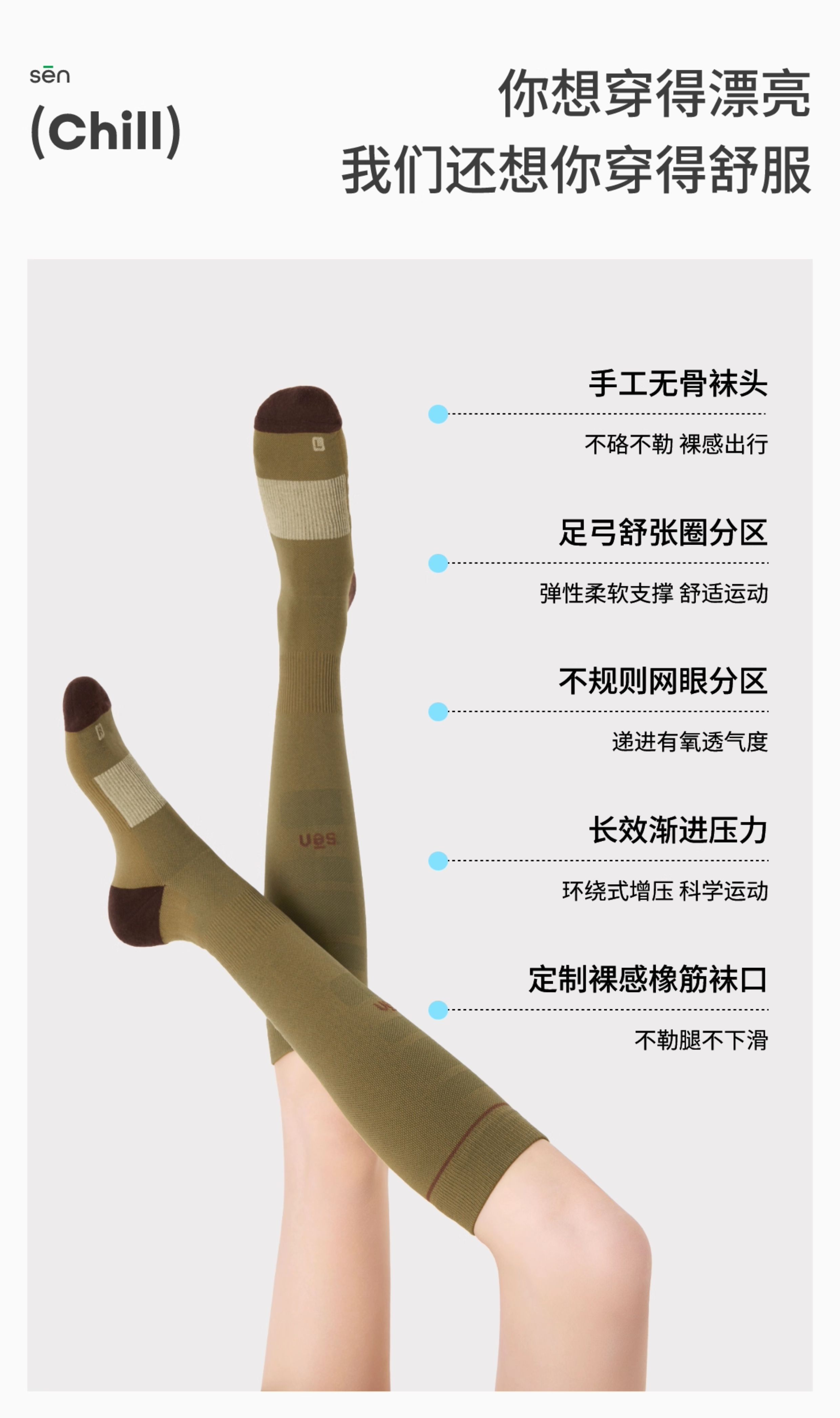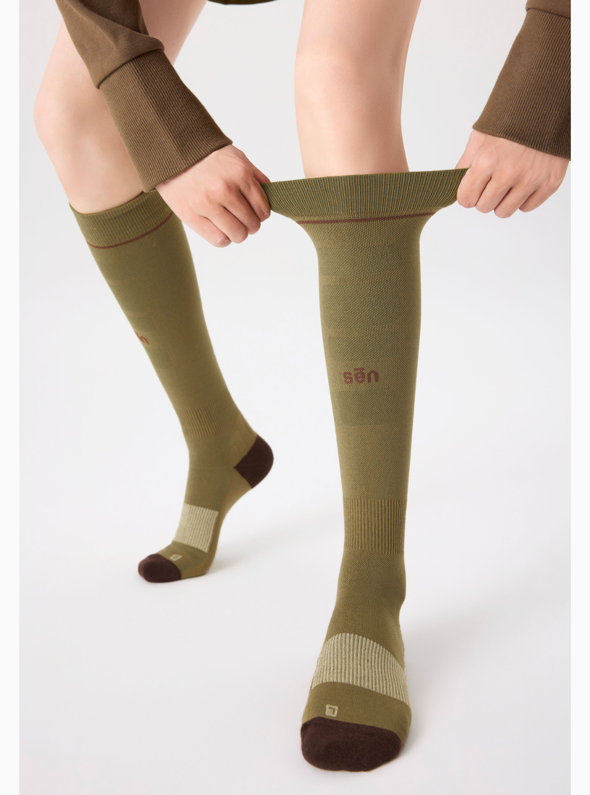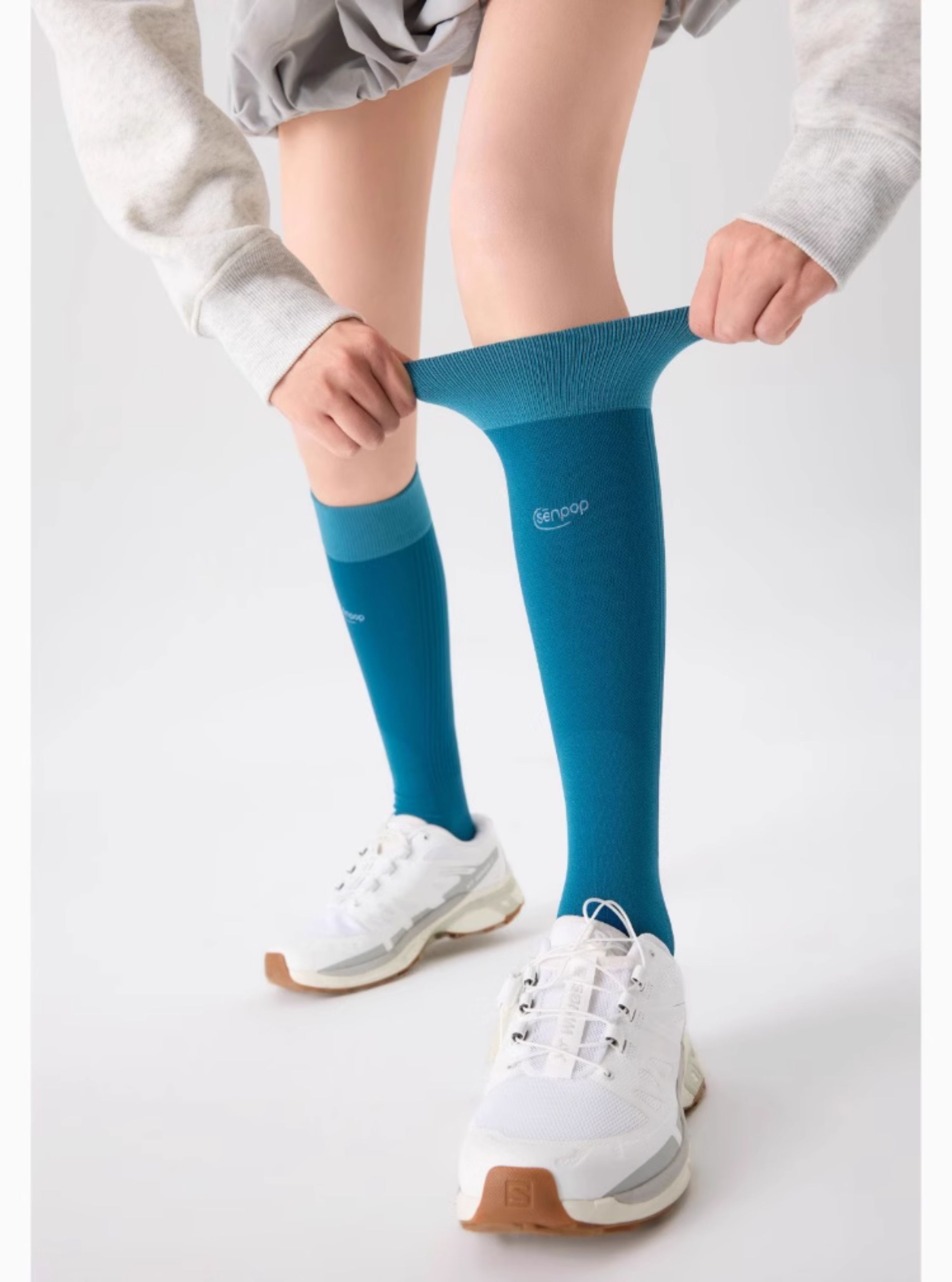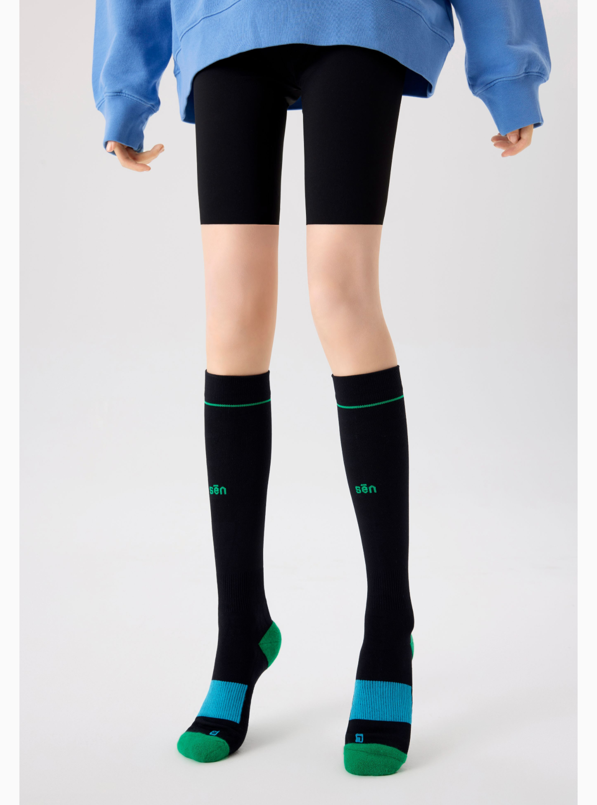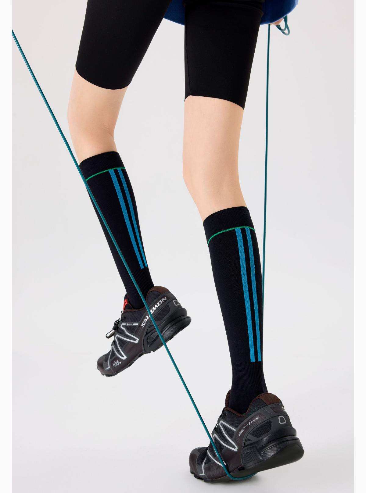 上森運動壓力襪健身騎行小腿襪登山網球彈力襪徒步紫色長筒襪夏女