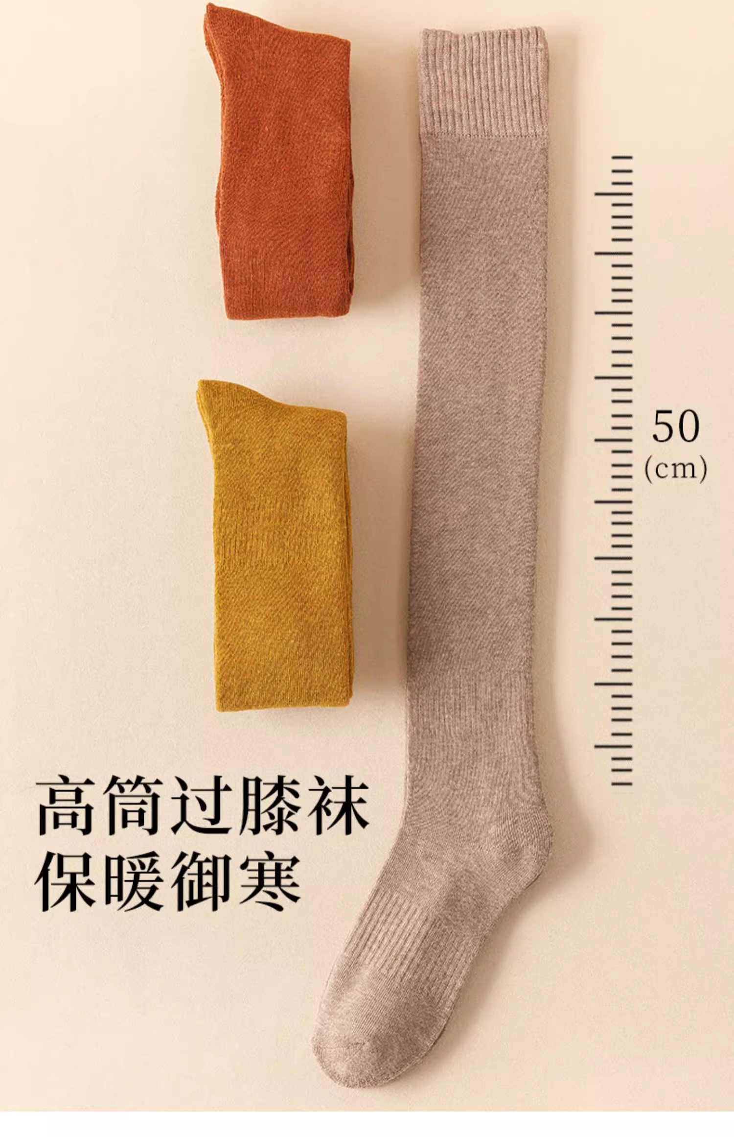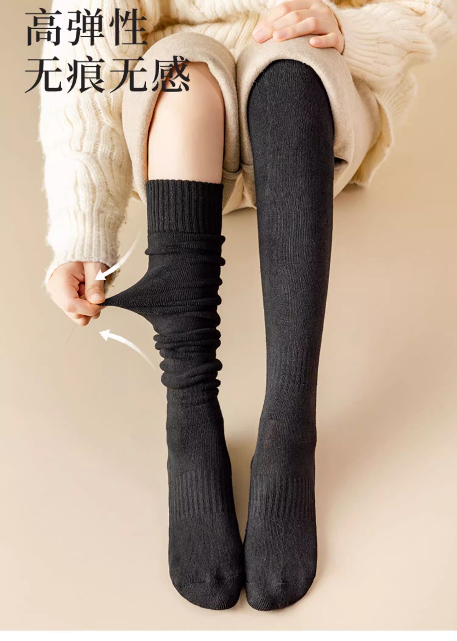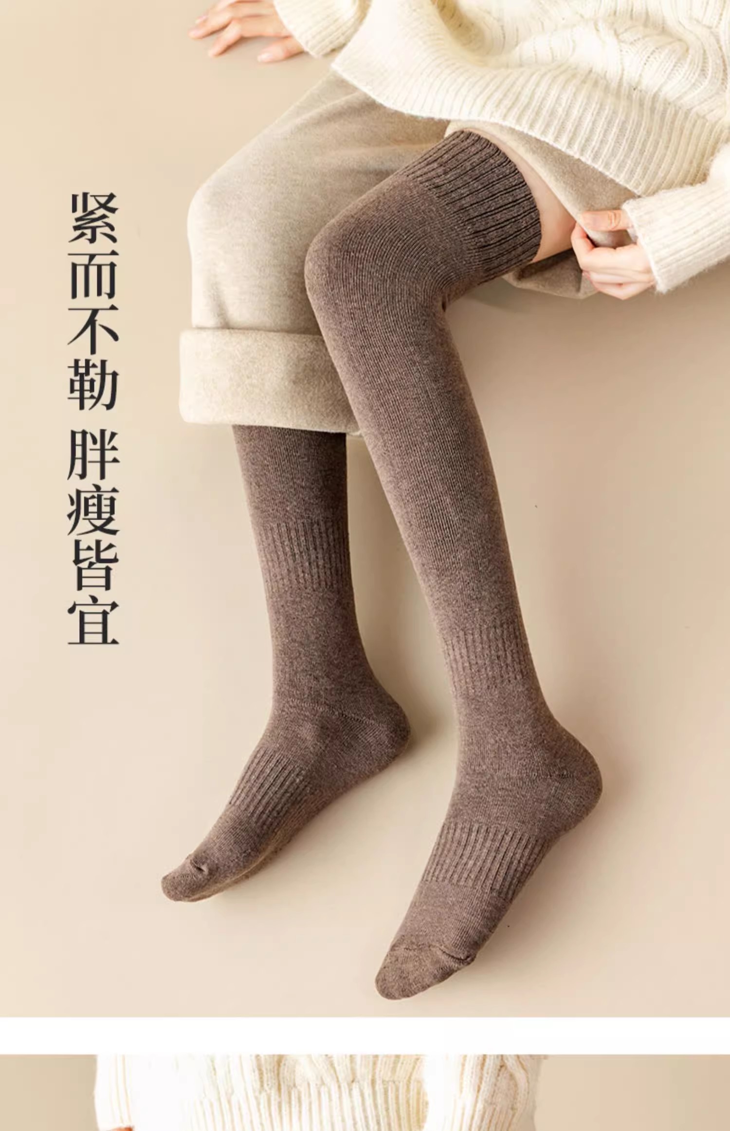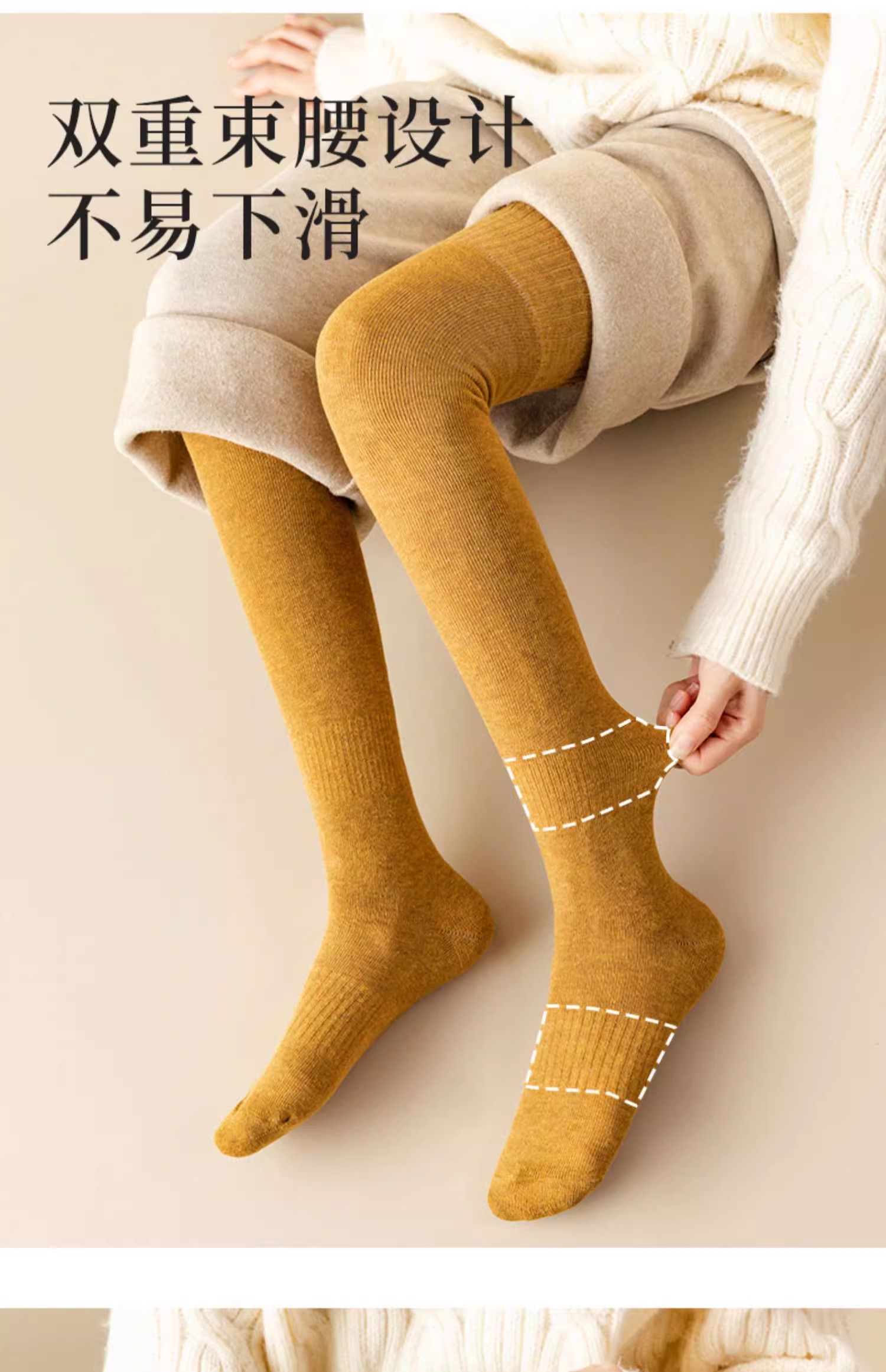 帕蘭朵過膝襪子女長筒襪秋冬新款加絨加厚小腿襪毛圈長襪護膝襪套