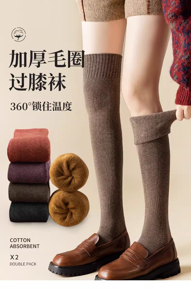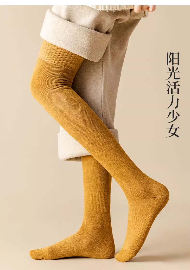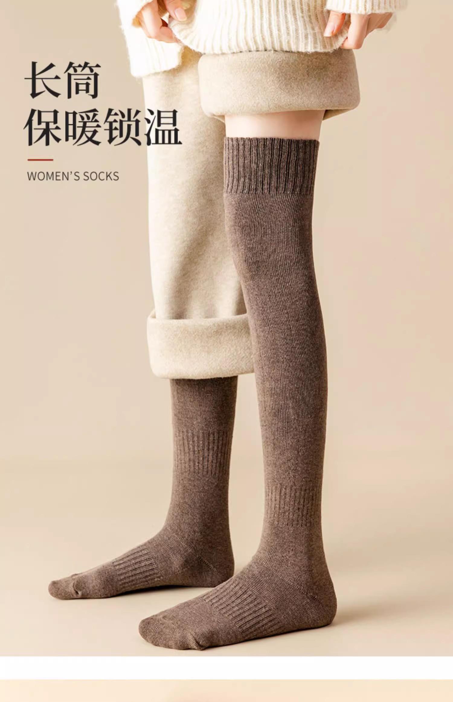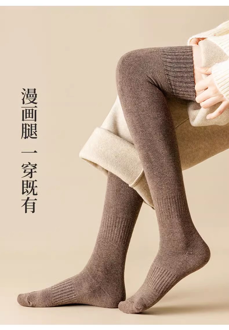 帕蘭朵過膝襪子女長筒襪秋冬新款加絨加厚小腿襪毛圈長襪護膝襪套