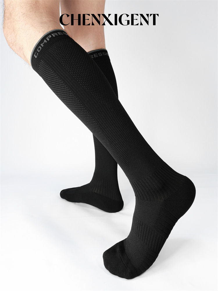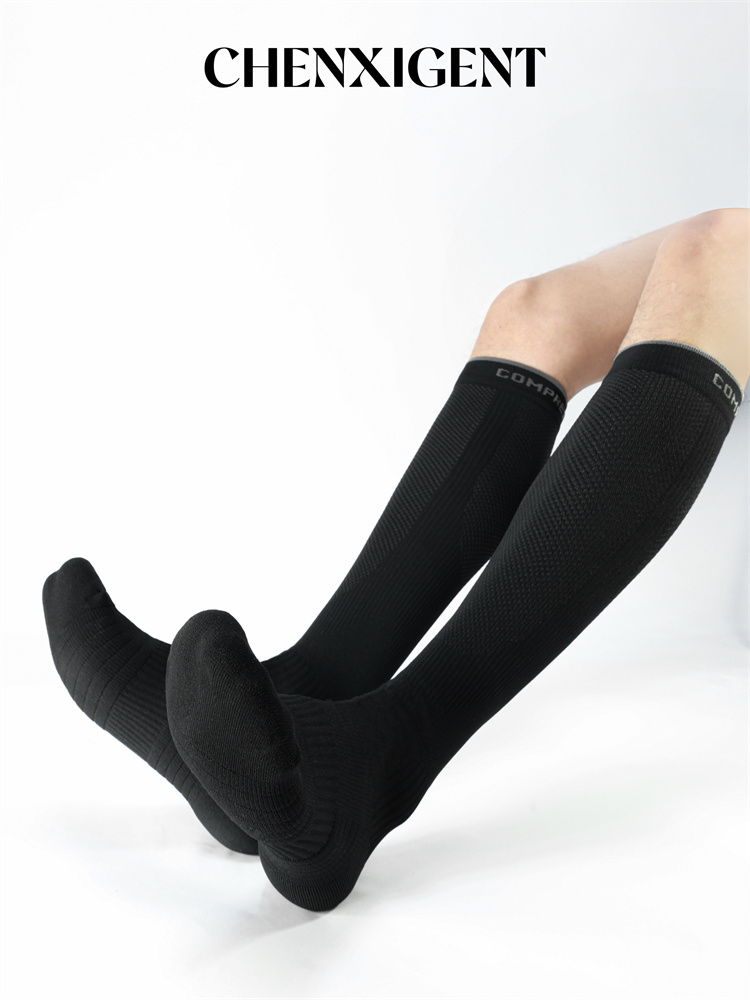 CHENXIGENT男士運動純色壓力襪 防滑籃球高筒襪子過膝小腿襪