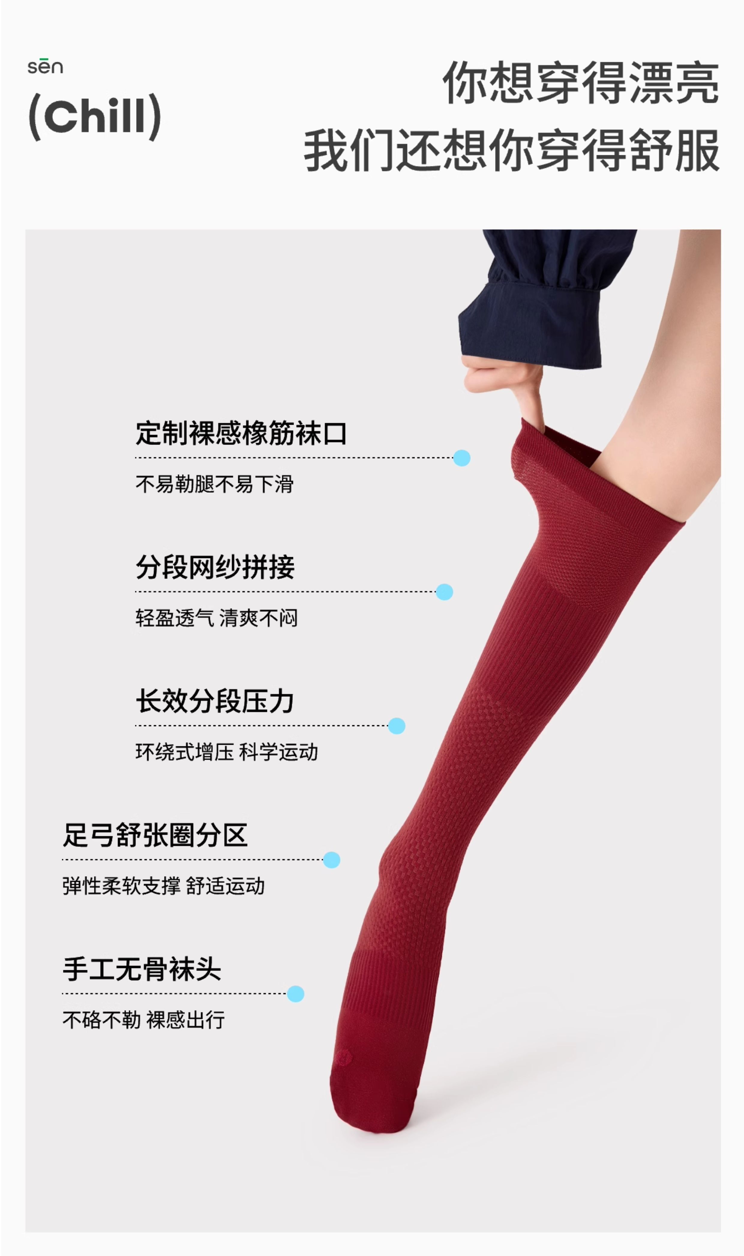 上森運動壓力襪小腿襪網球襪子純色網眼透氣夏季跑步跳繩壓縮長襪