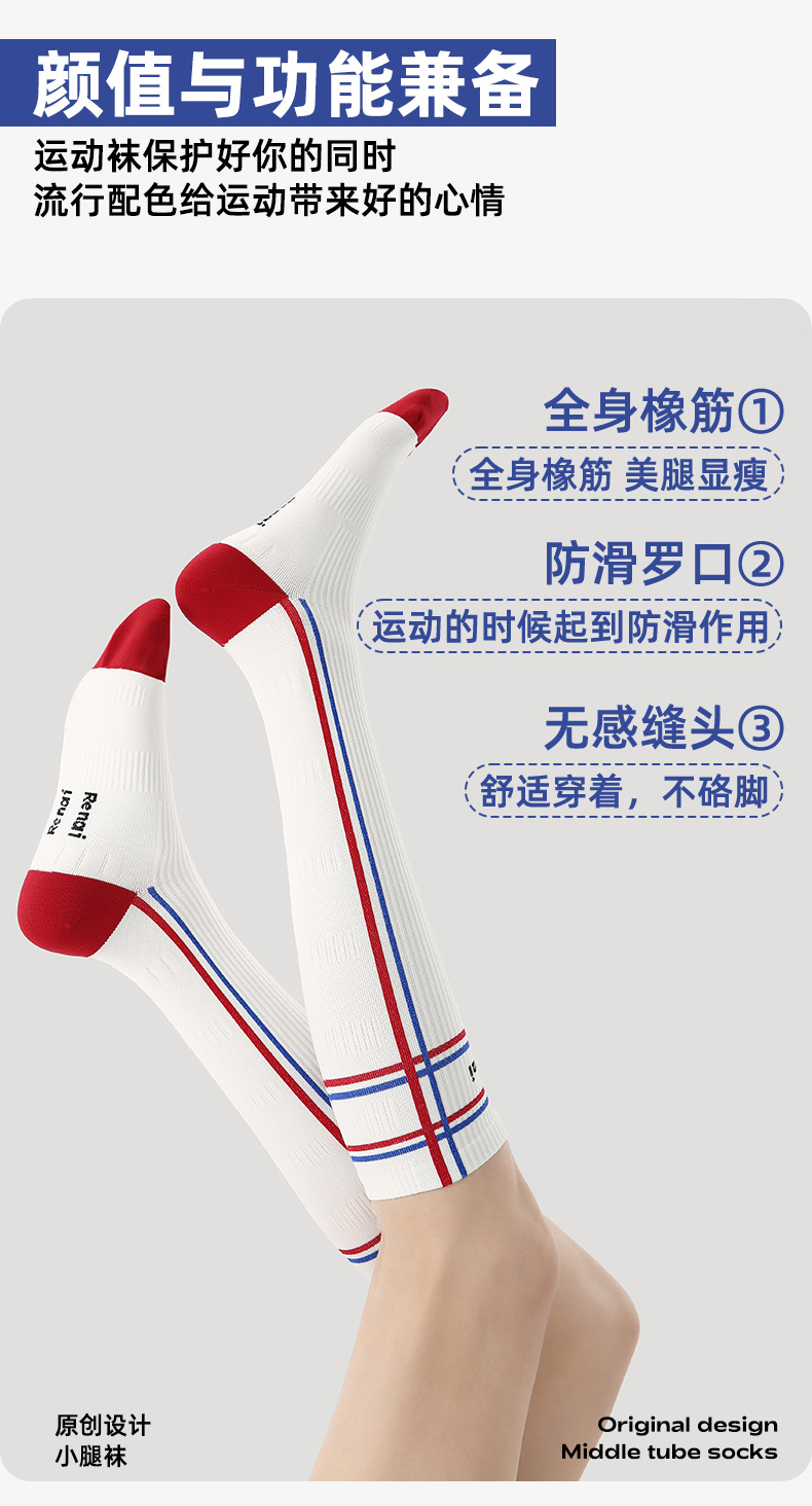 Renaissance小腿壓力襪運動襪女跑步跳繩騎行徒步登山瘦腿長筒襪