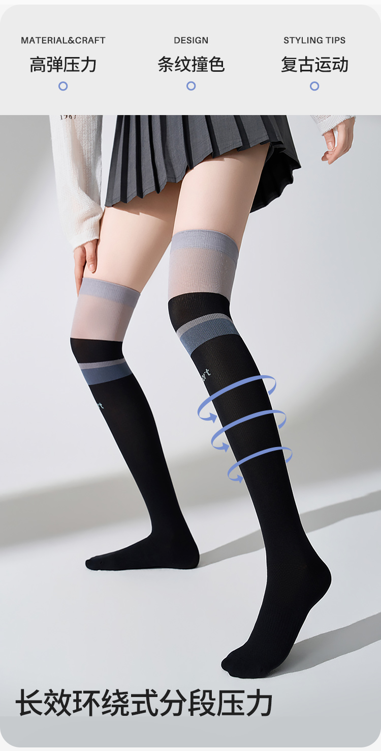 秋冬過膝長筒襪運動壓力襪羽毛球襪騎行襪徒步登山襪馬拉松跑步襪