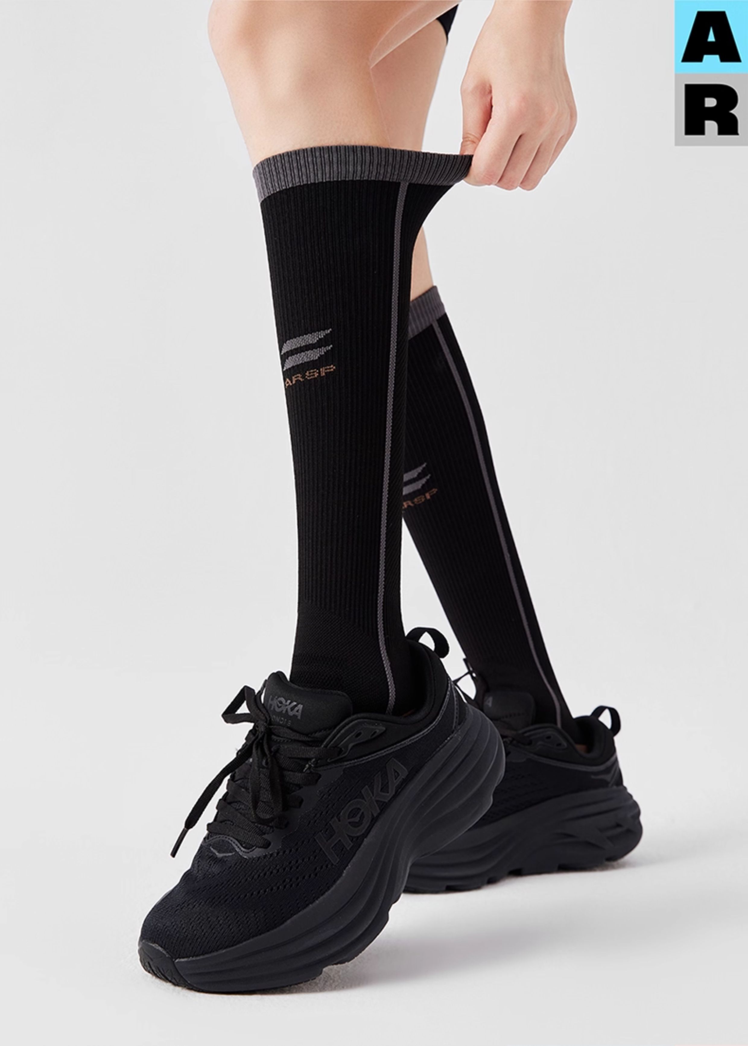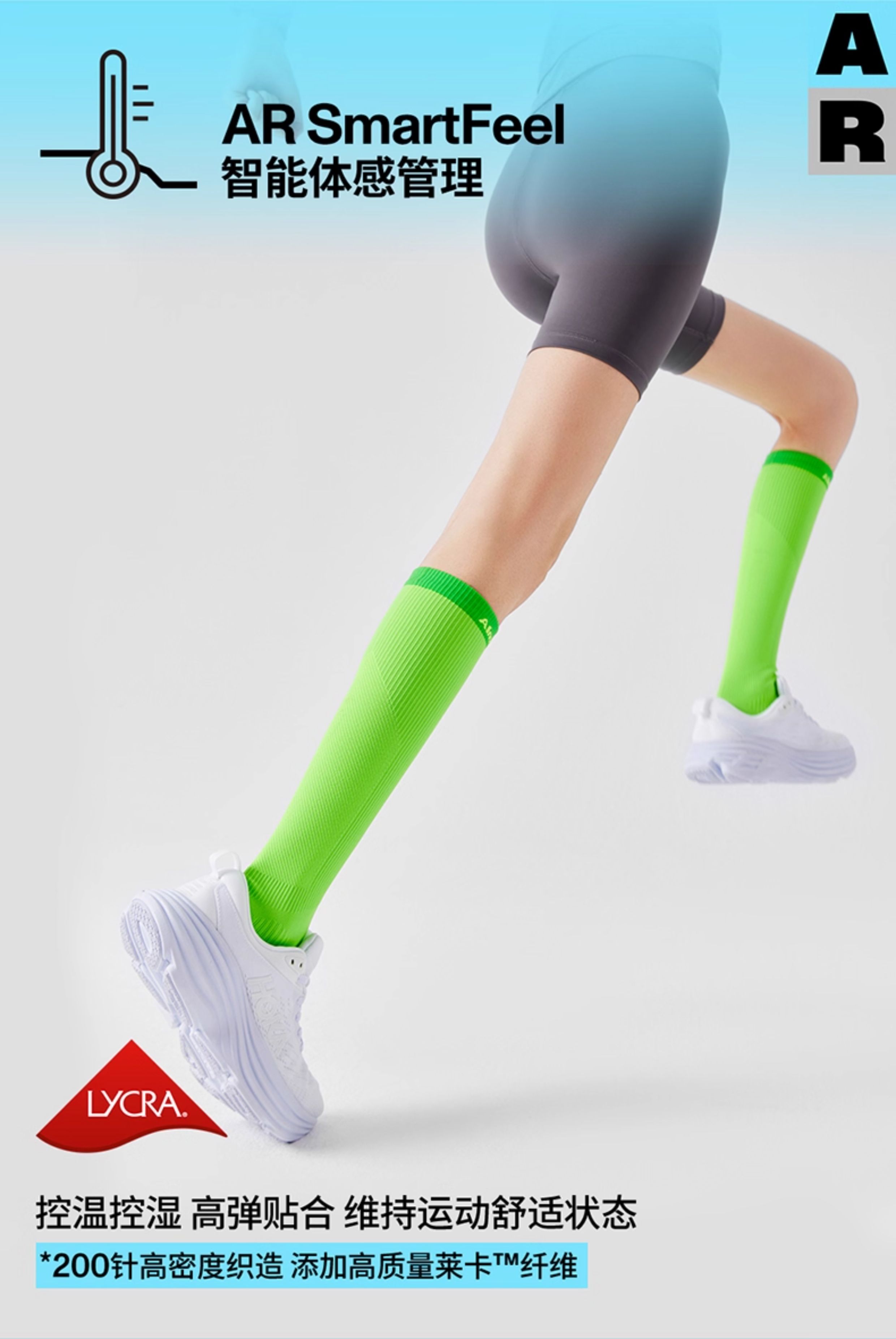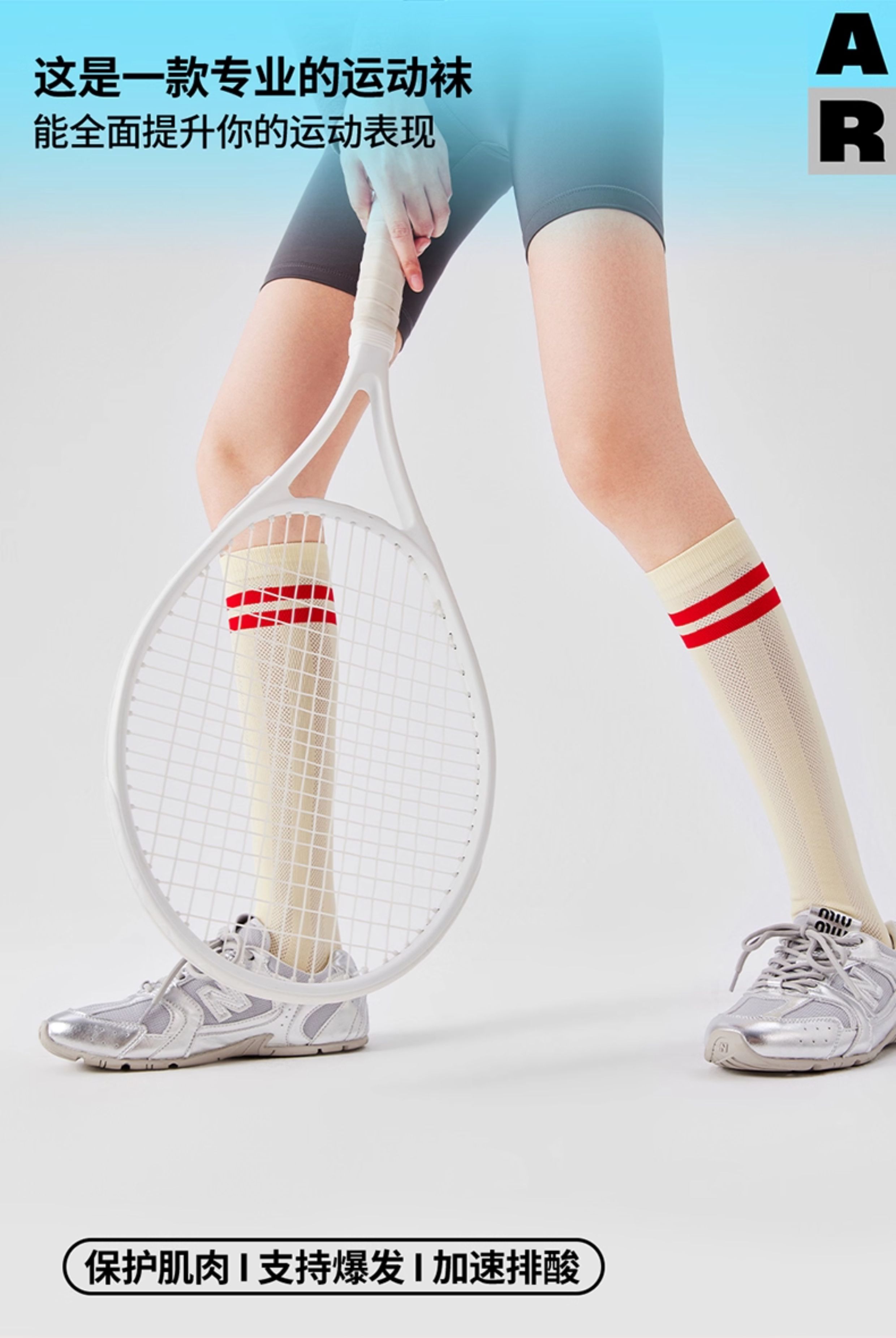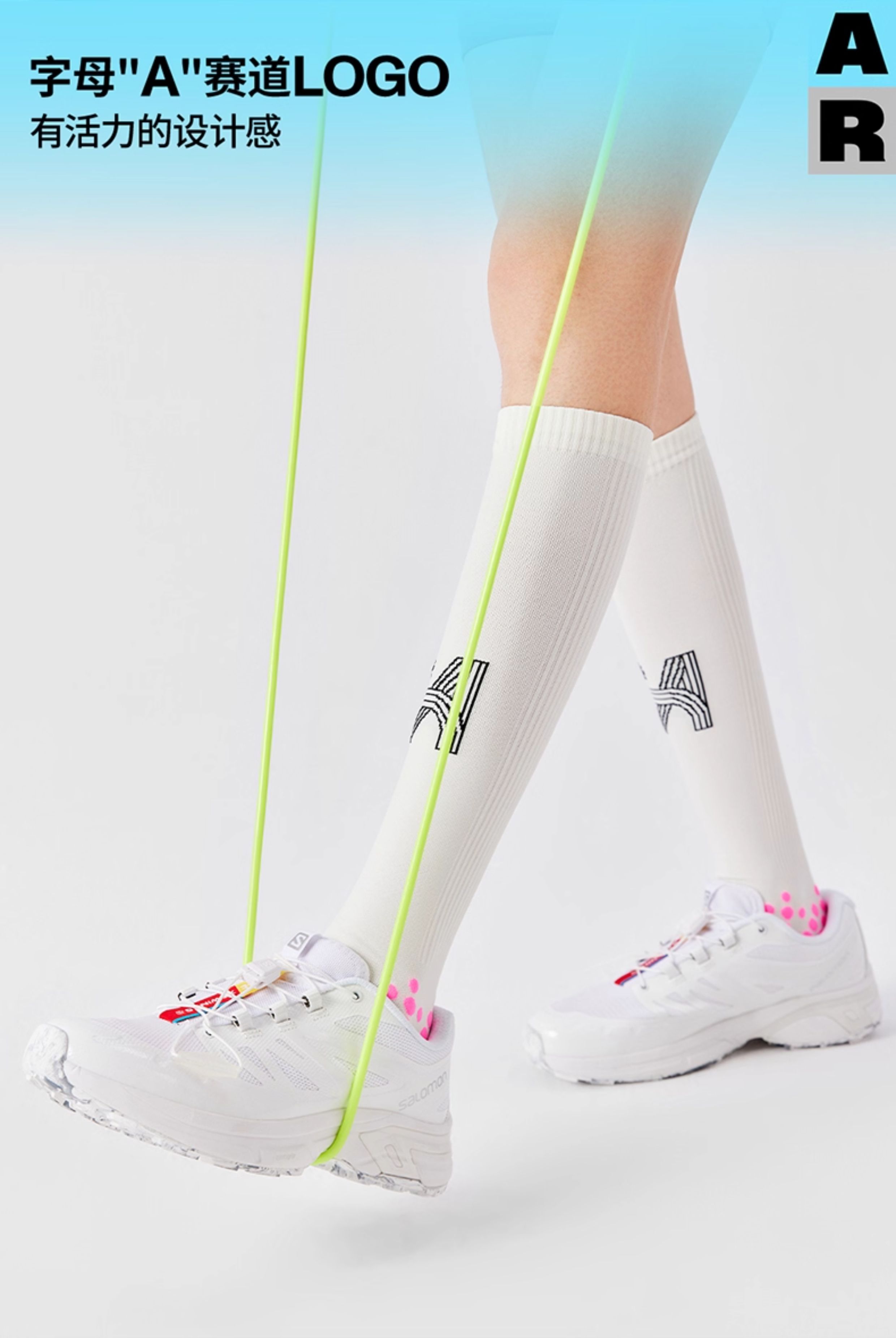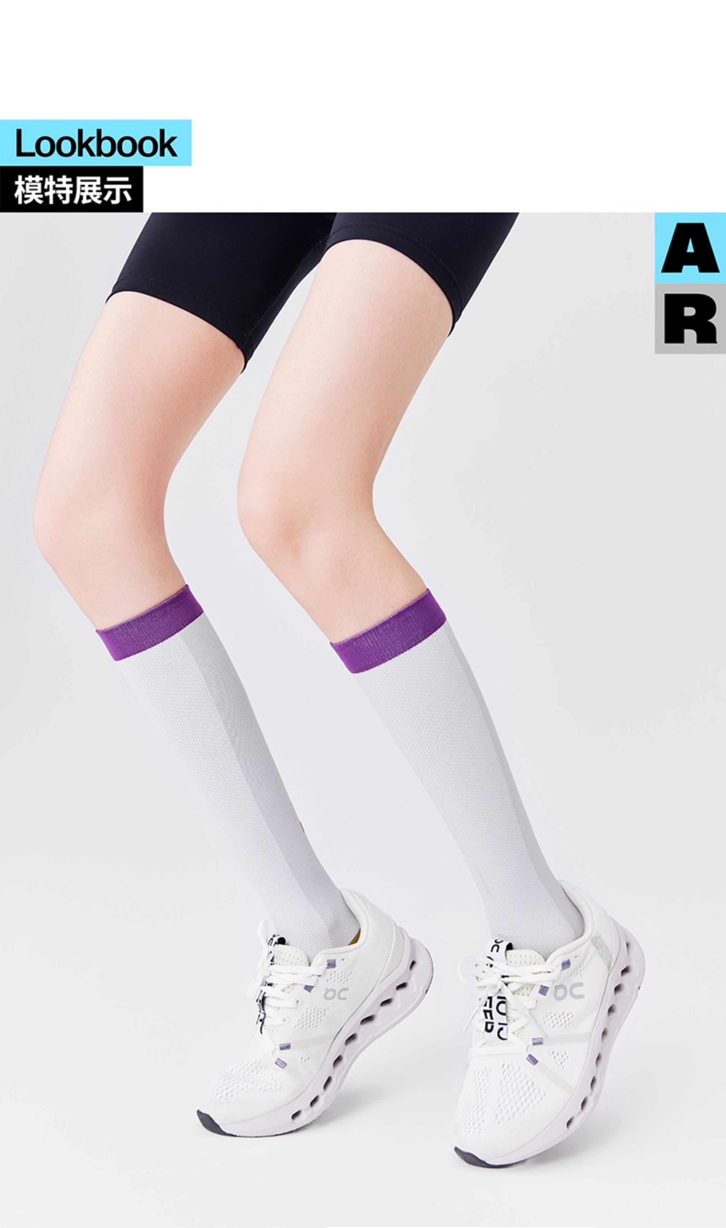 AR網眼薄款運動壓力襪秋騎行徒步跑步跳繩白色網球襪壓縮小腿襪女