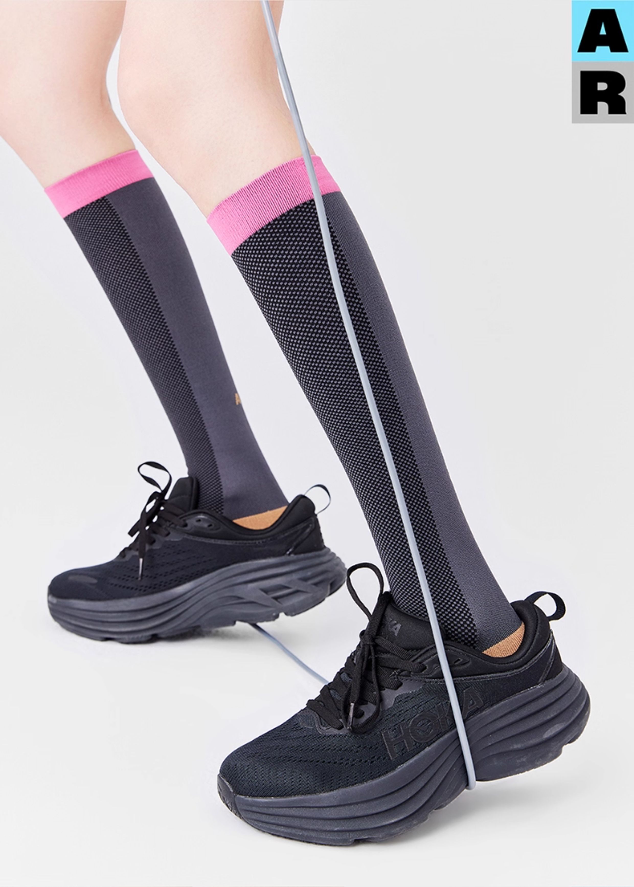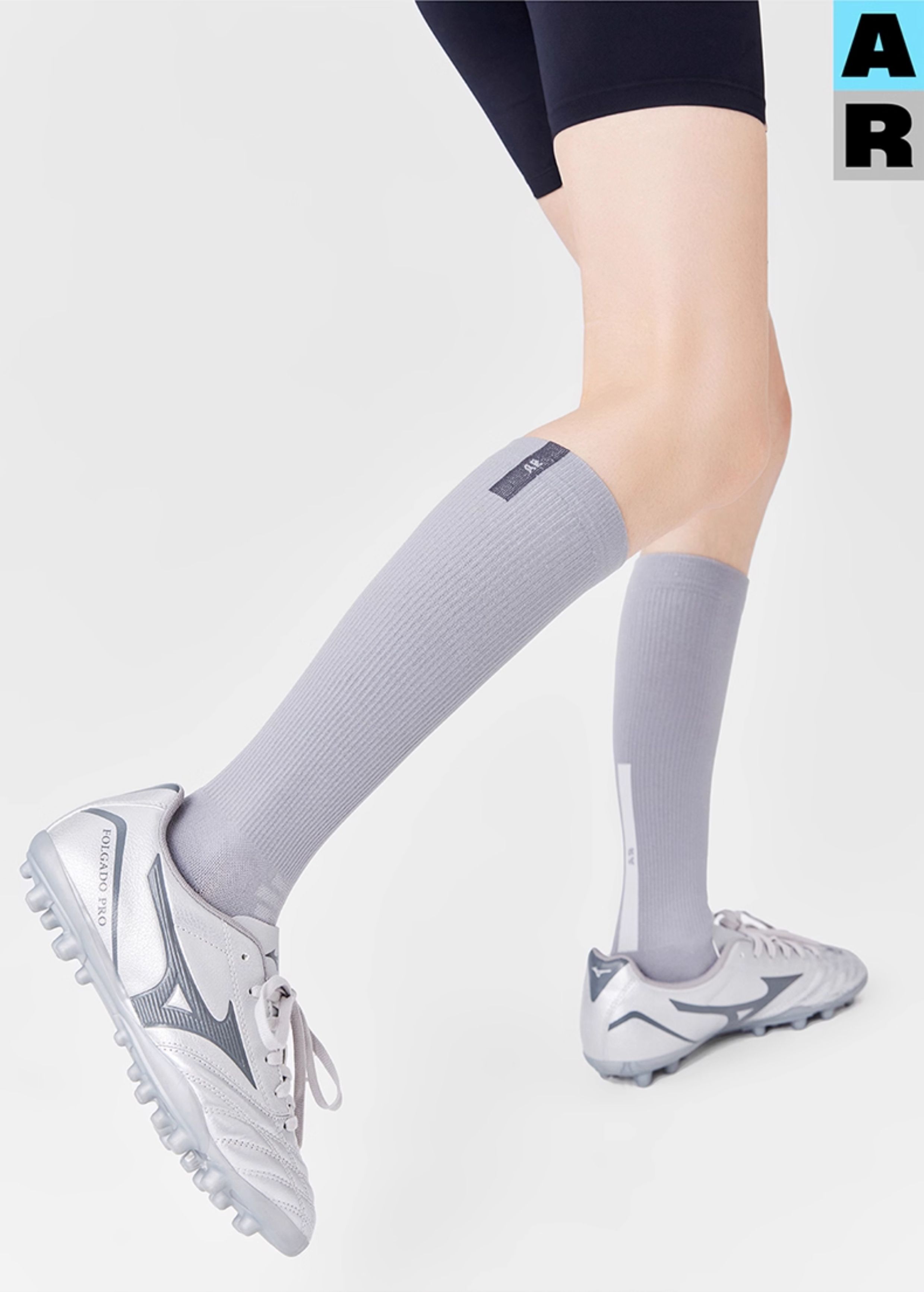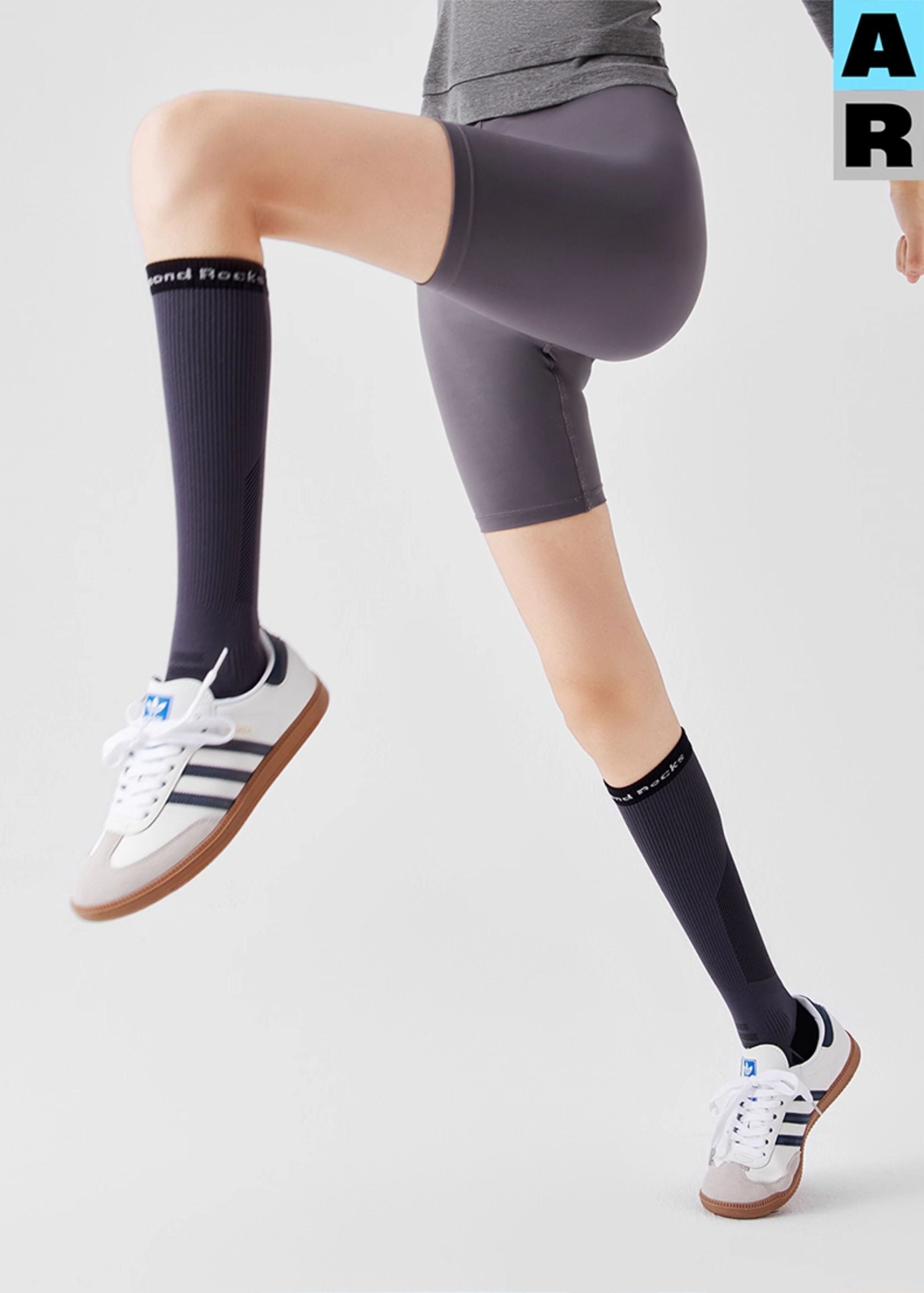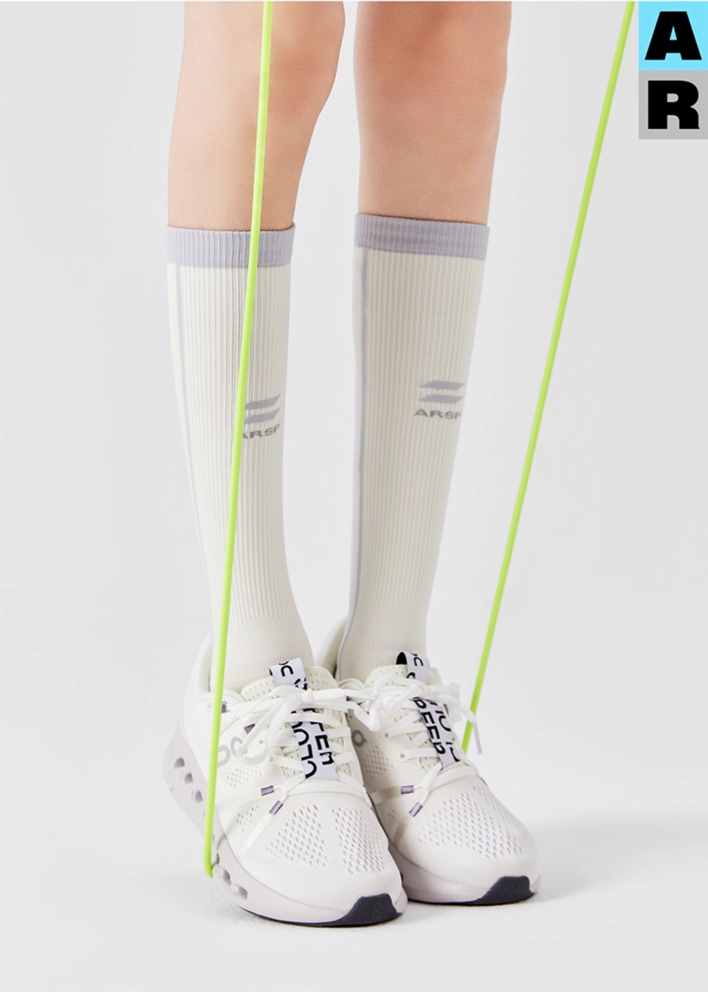 AR網眼薄款運動壓力襪秋騎行徒步跑步跳繩白色網球襪壓縮小腿襪女