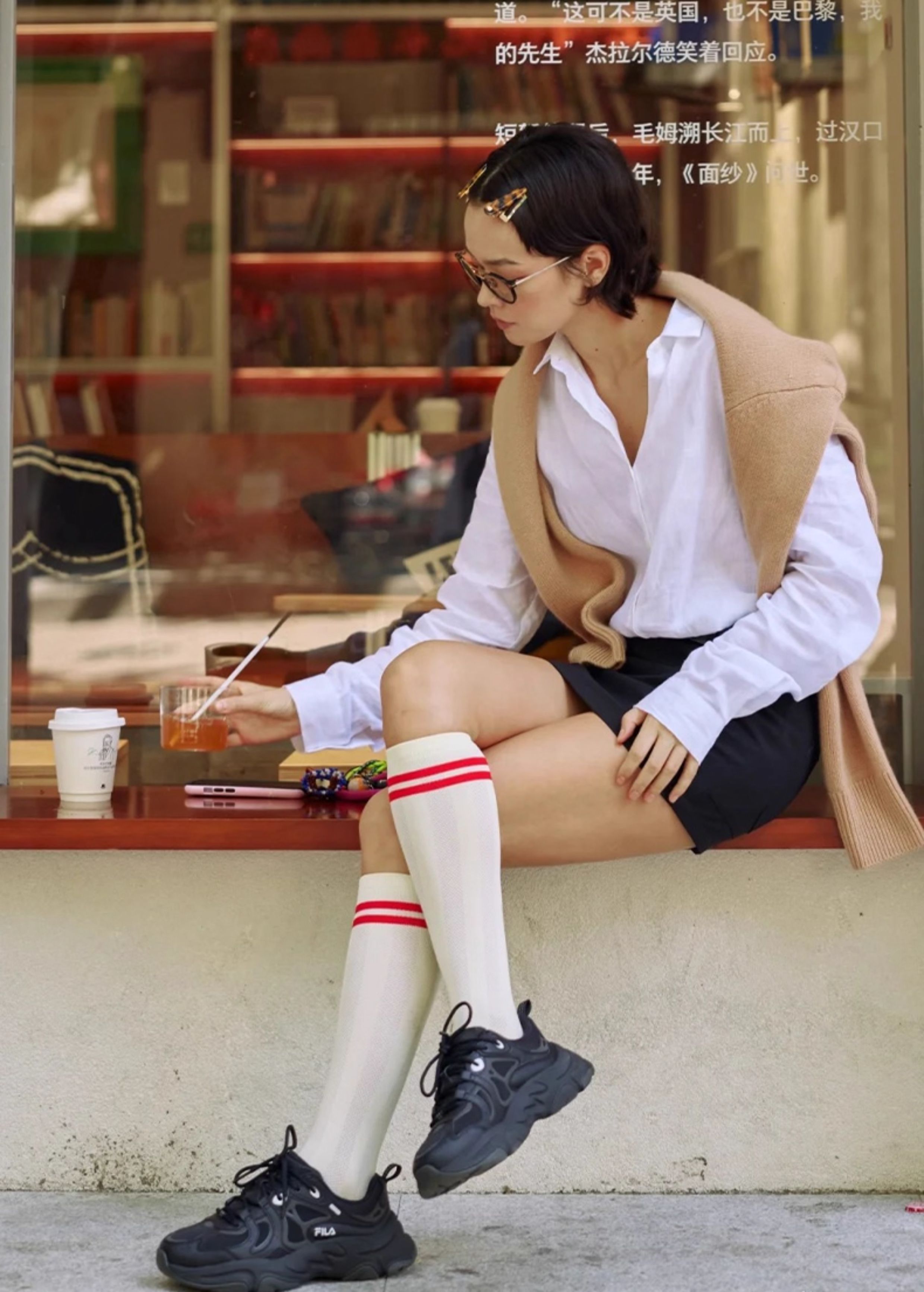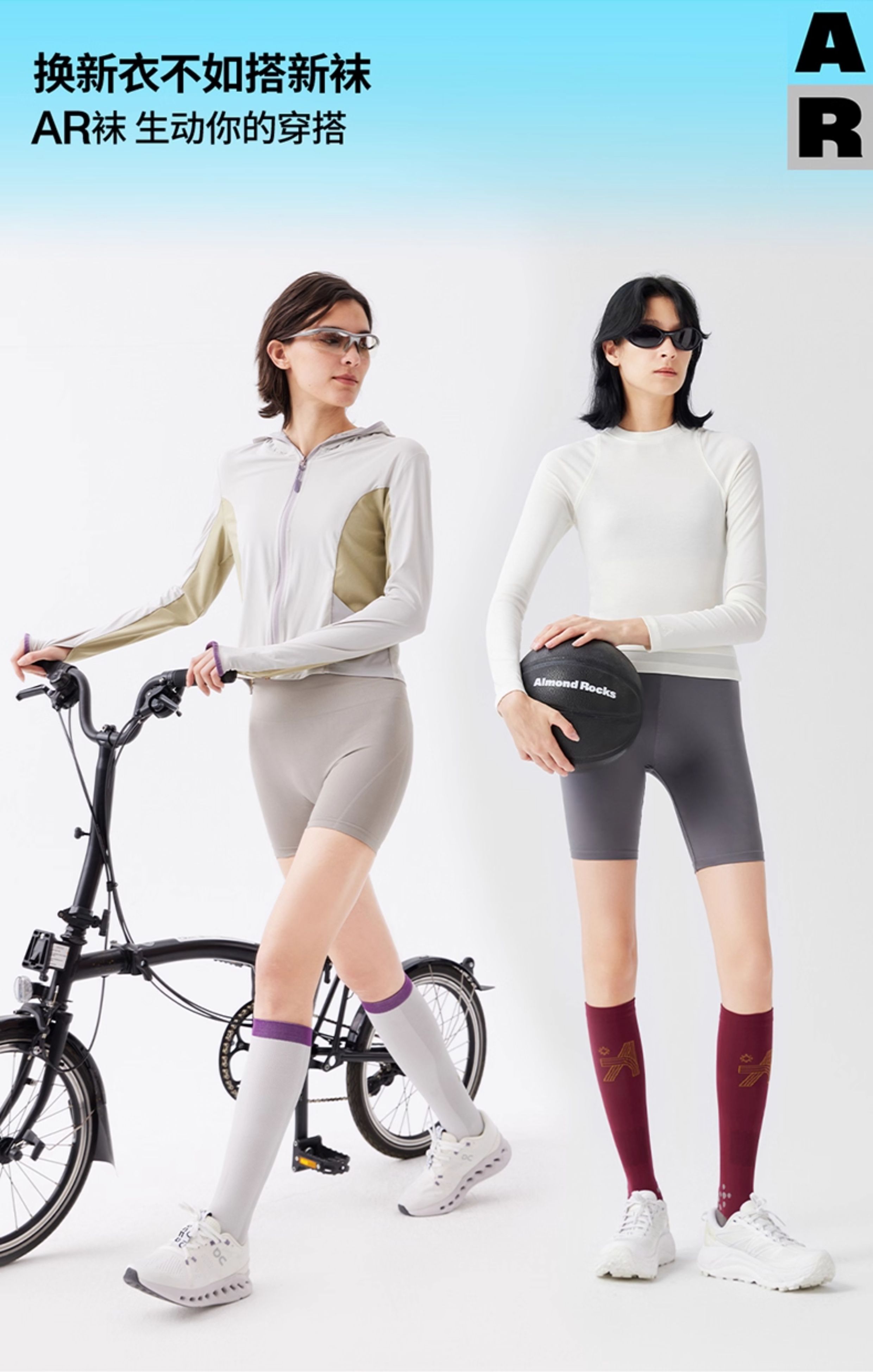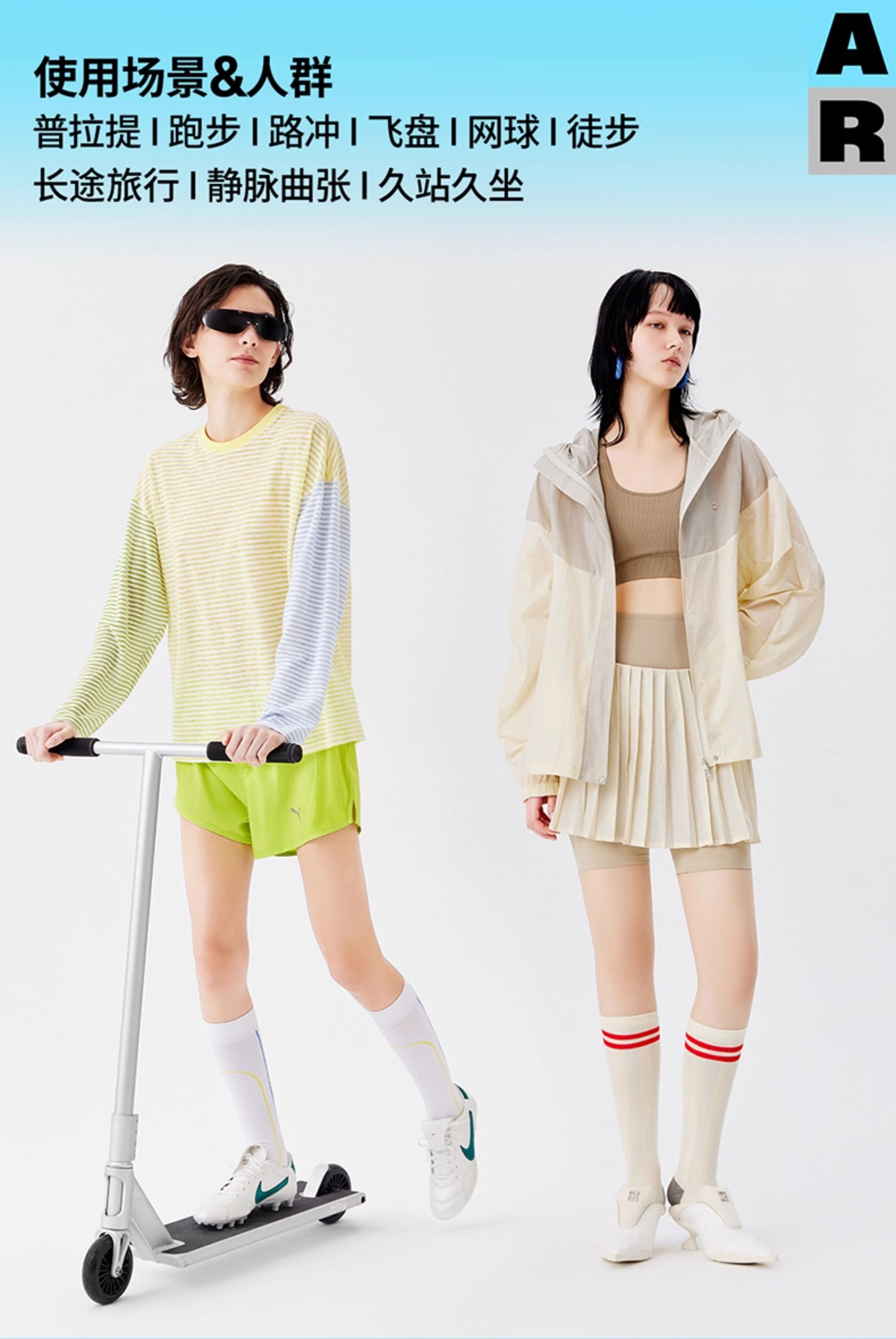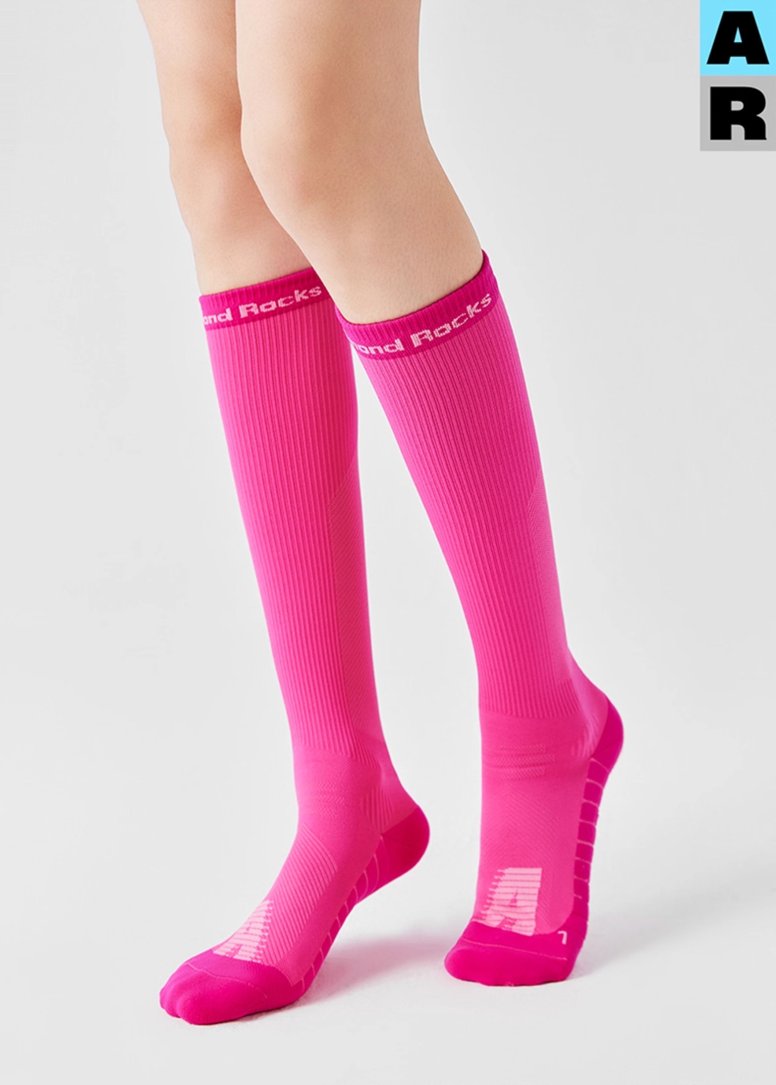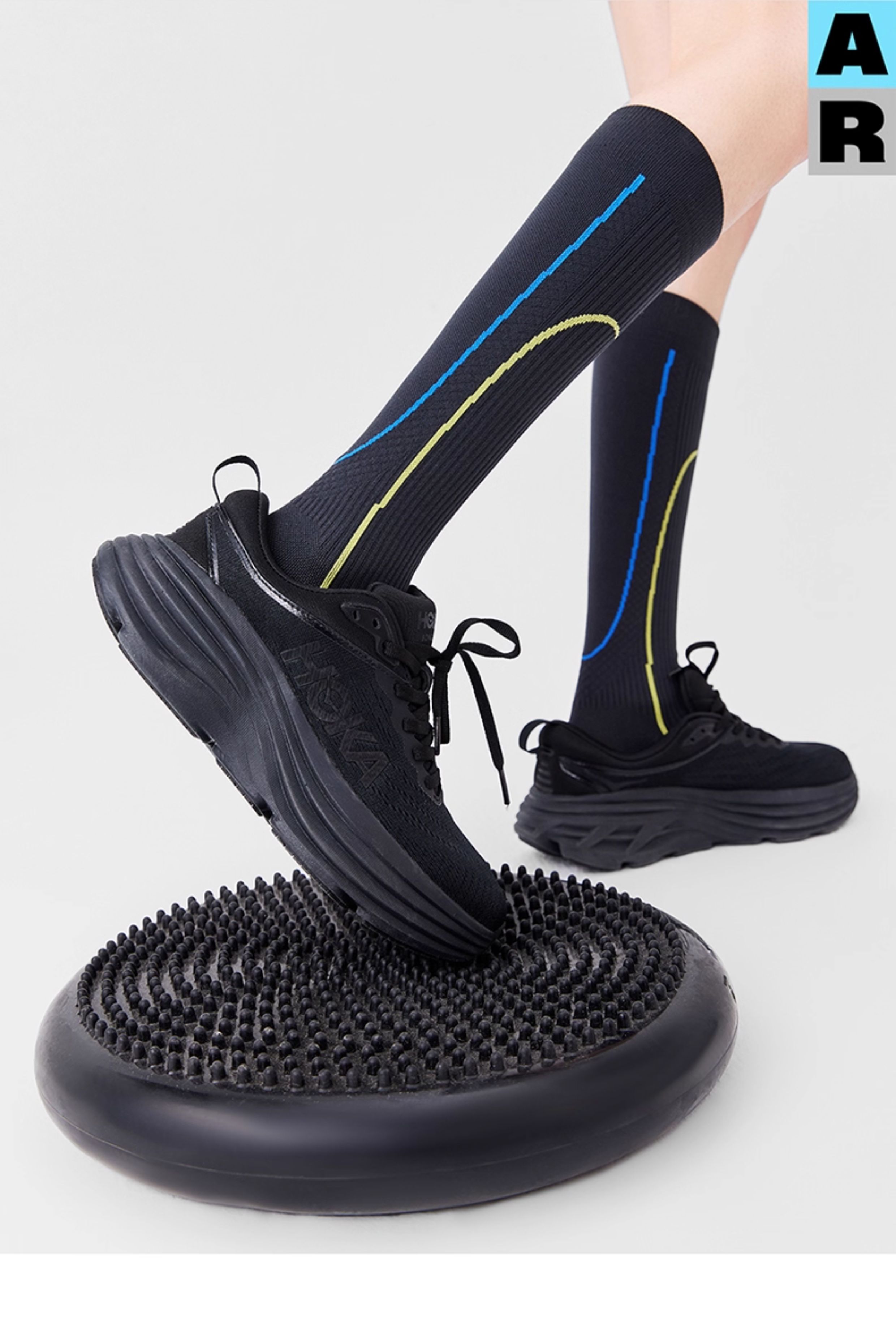 AR網眼薄款運動壓力襪秋騎行徒步跑步跳繩白色網球襪壓縮小腿襪女