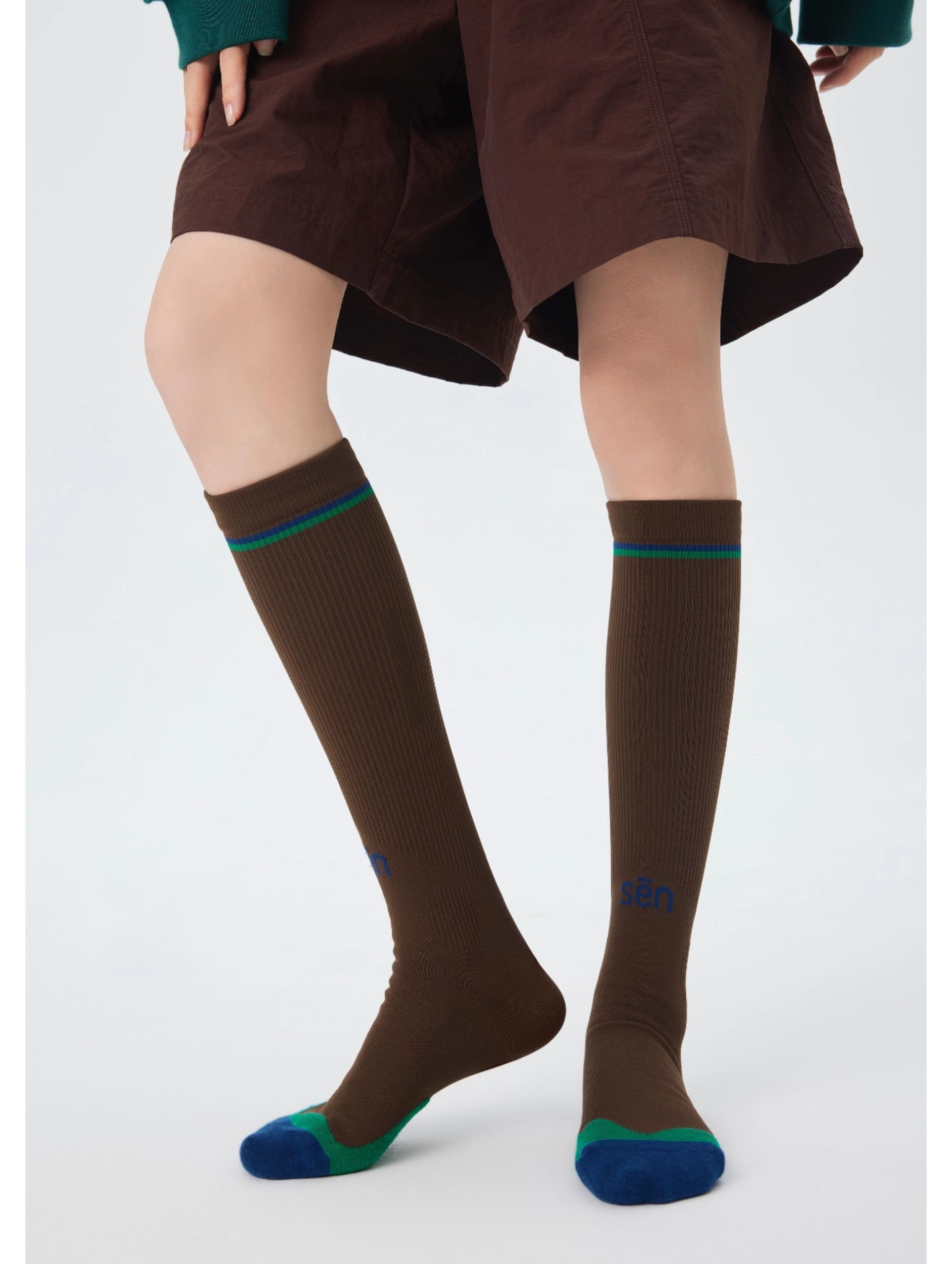 上森運動壓力襪小腿襪騎行棕色跑步壓縮襪子女春秋顯瘦美拉德長襪