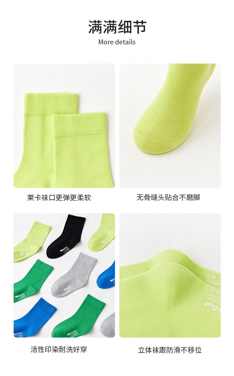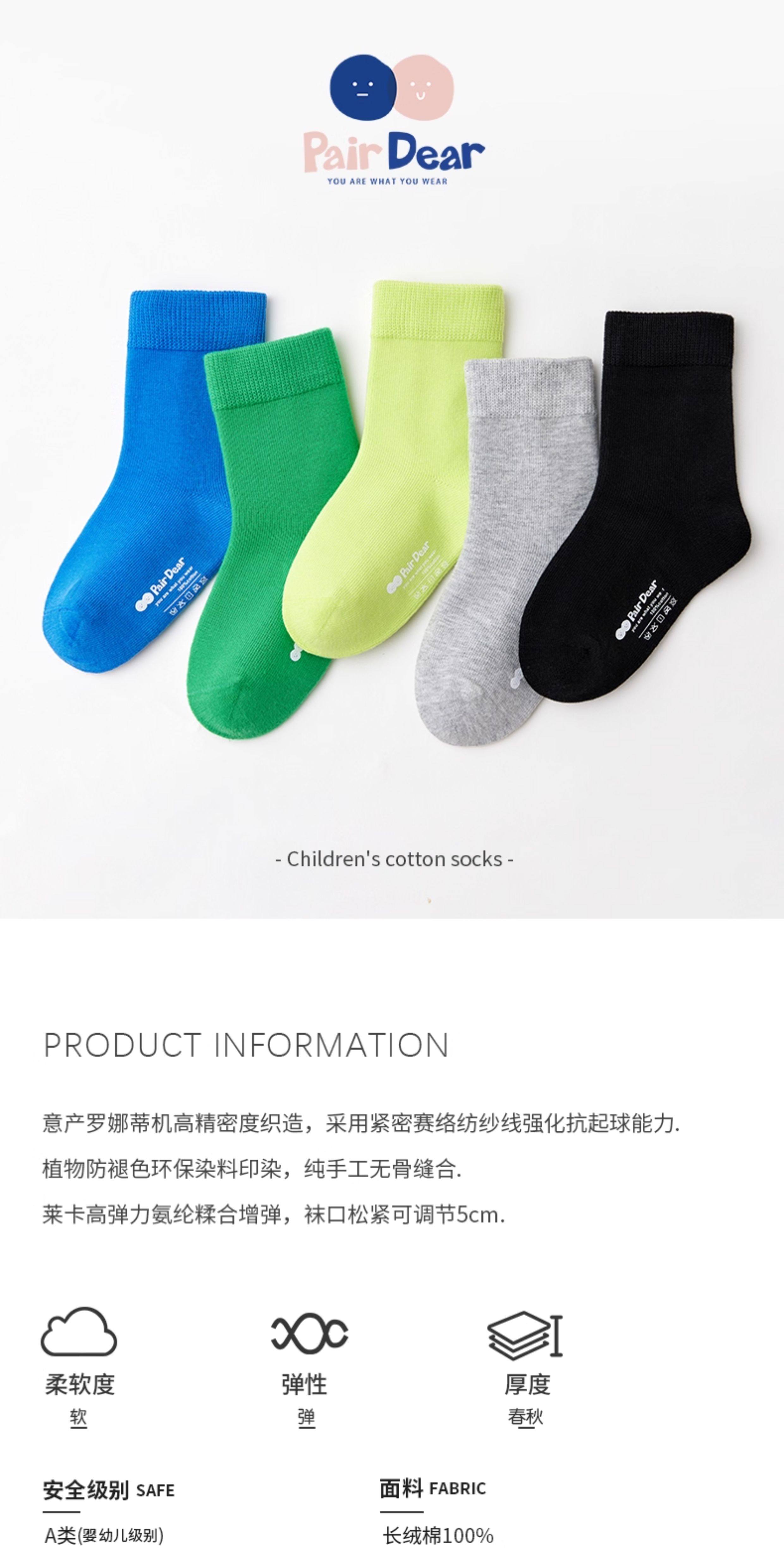 「柔軟100%棉」兒童襪子春秋寶寶A類中筒男童春季全棉A類無骨純色