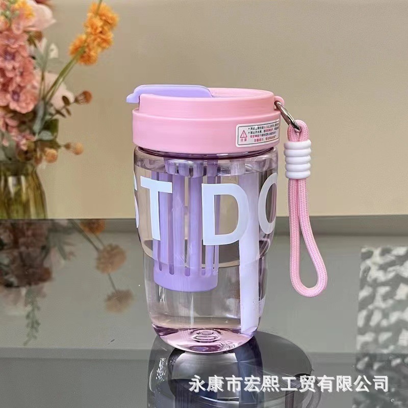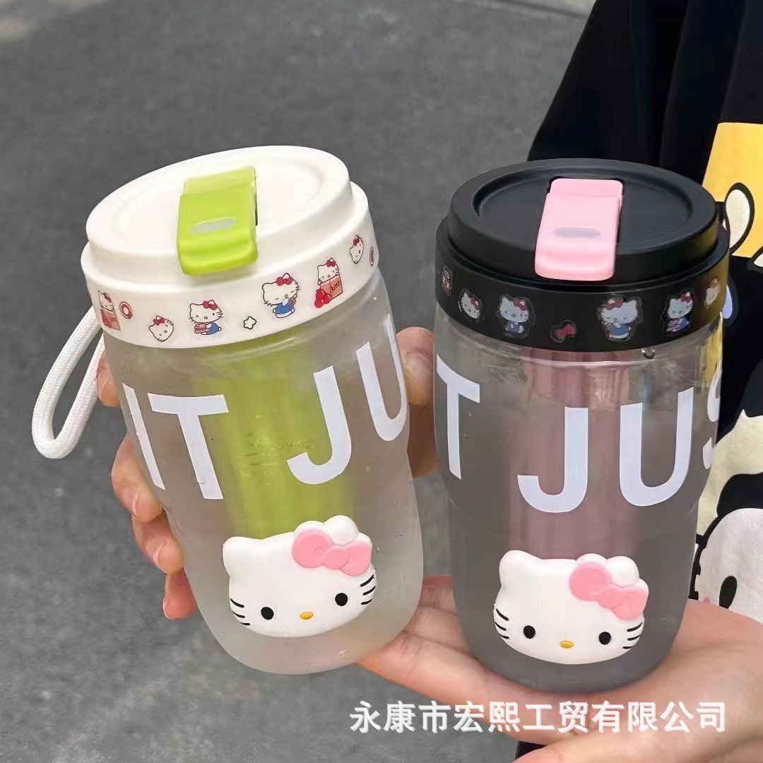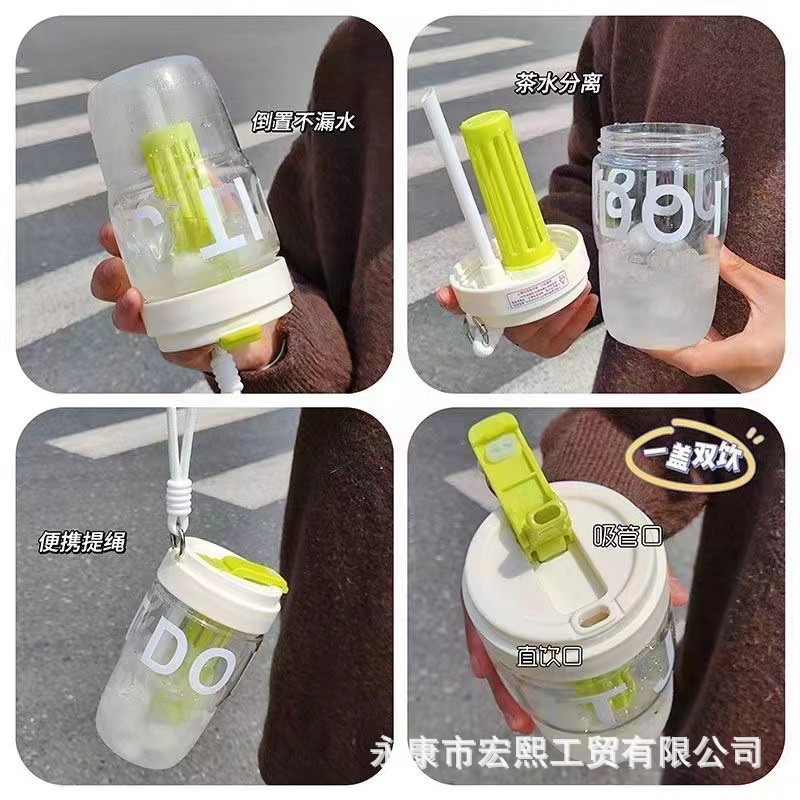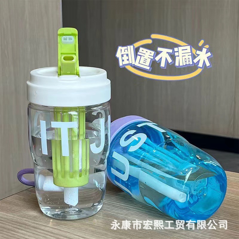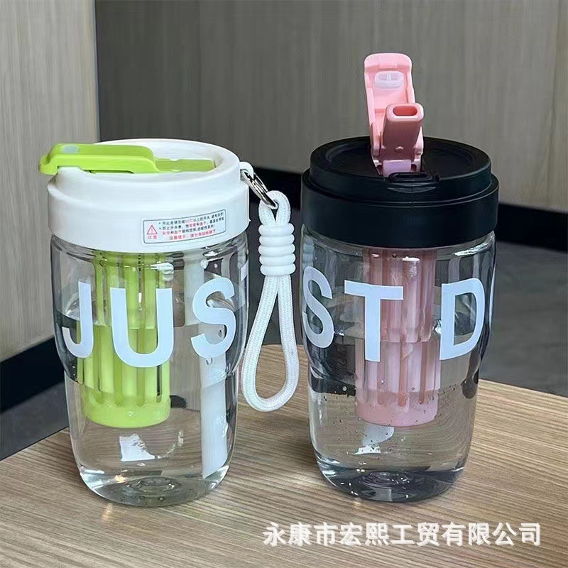 高顔值卡通水杯新款女生泡茶杯雙飲帶吸琯杯子學生可愛提手隨行杯