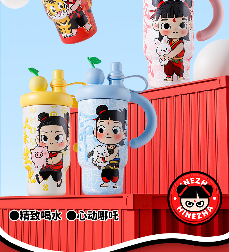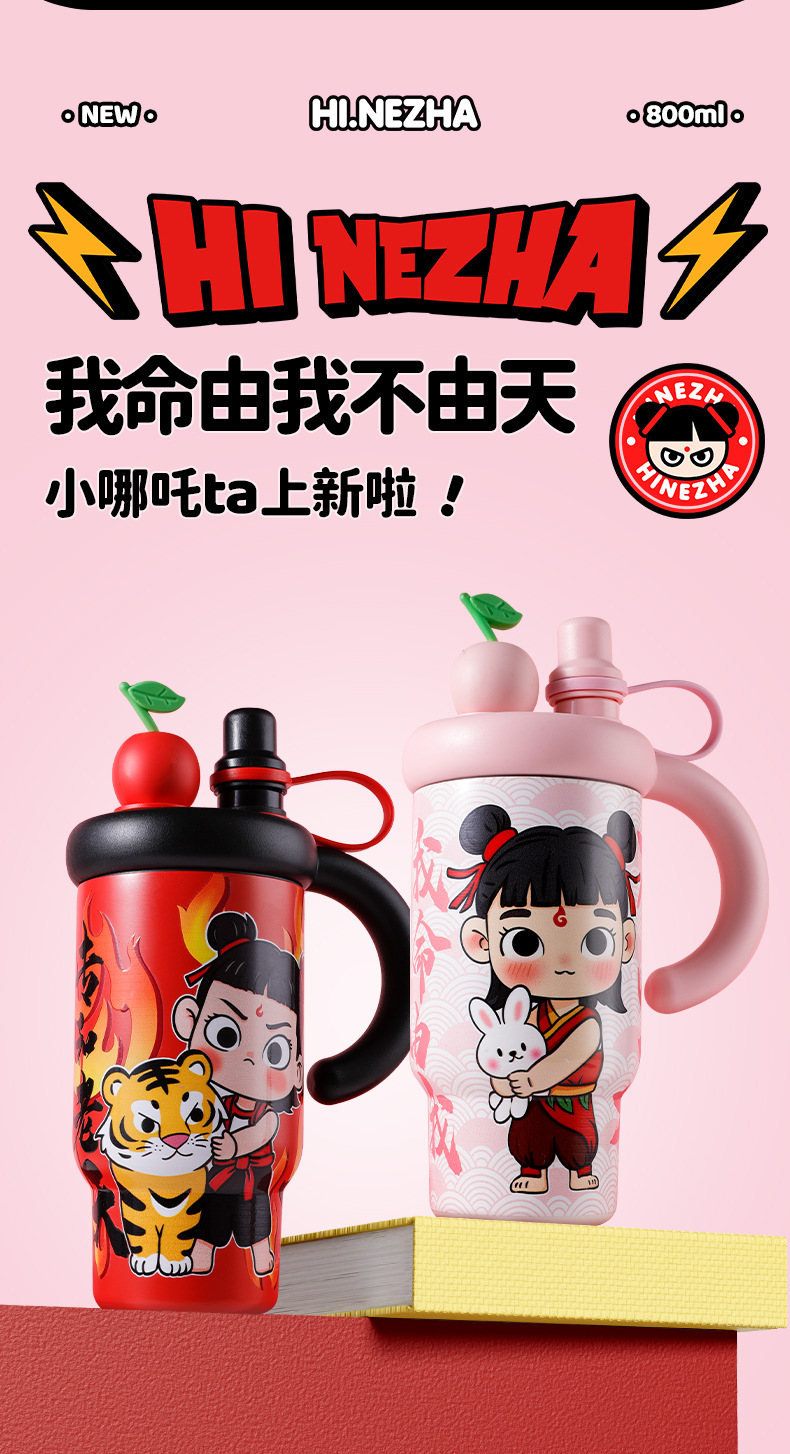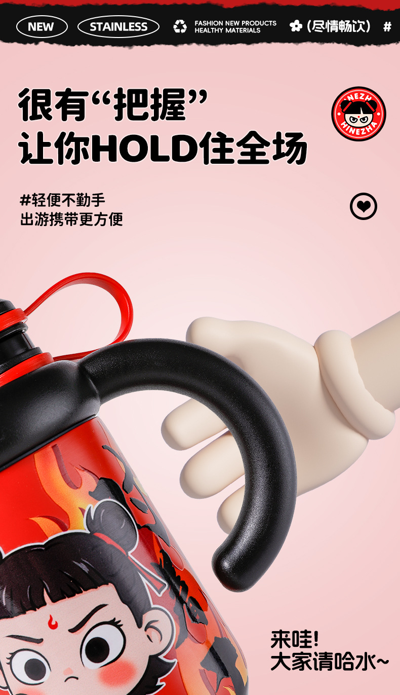 哪吒316不鏽鋼保溫杯大容量保溫水杯茶水分離杯子網紅國潮冰霸杯