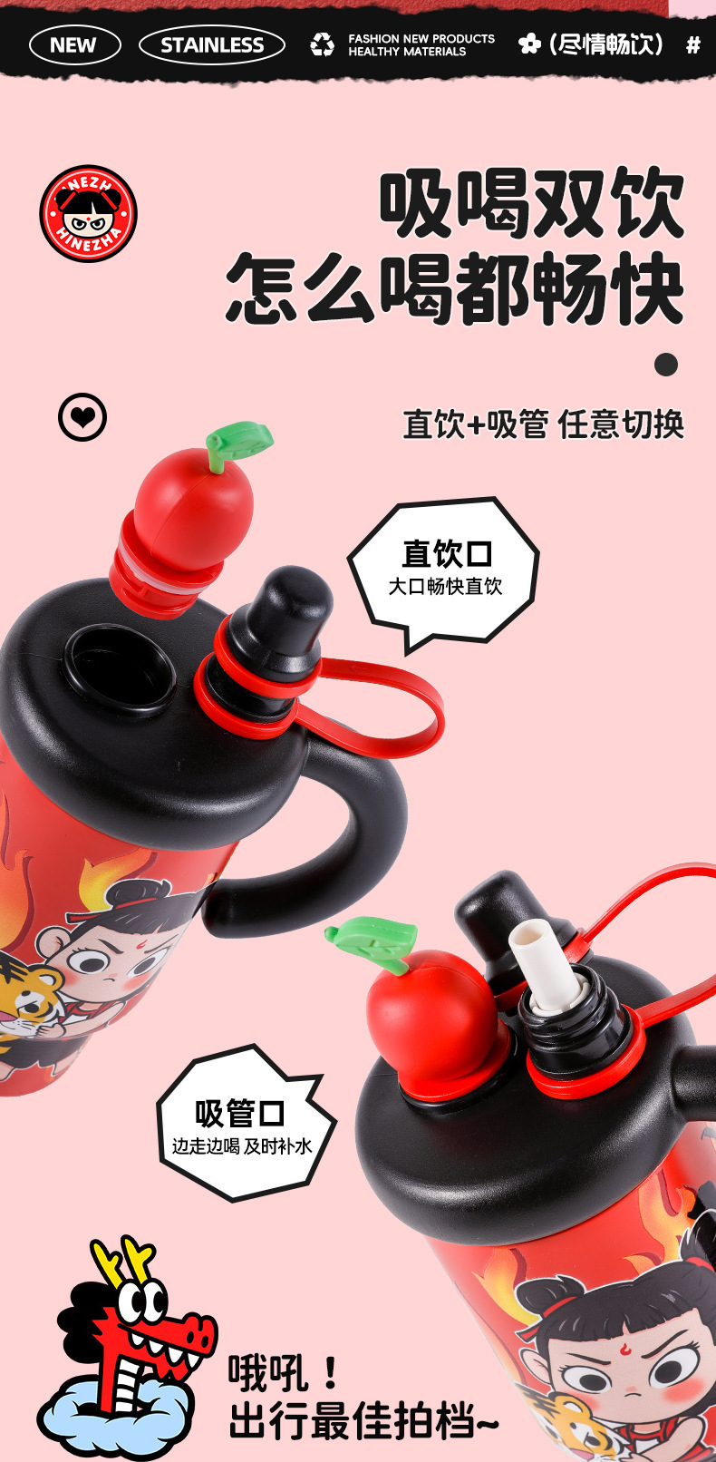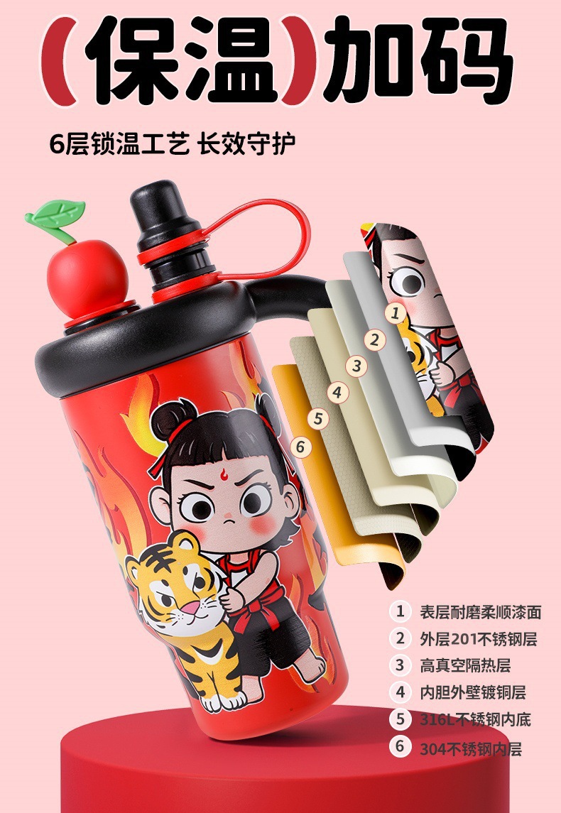 新款哪吒主題 巨無霸保溫杯冰霸杯316不鏽鋼可攜式杯子可愛高顔值杯