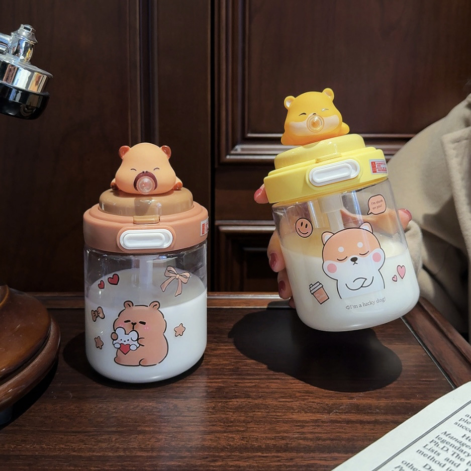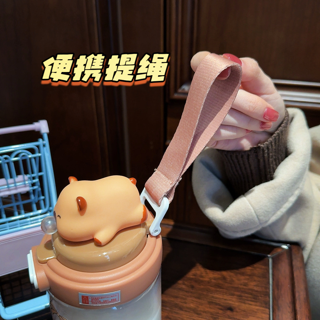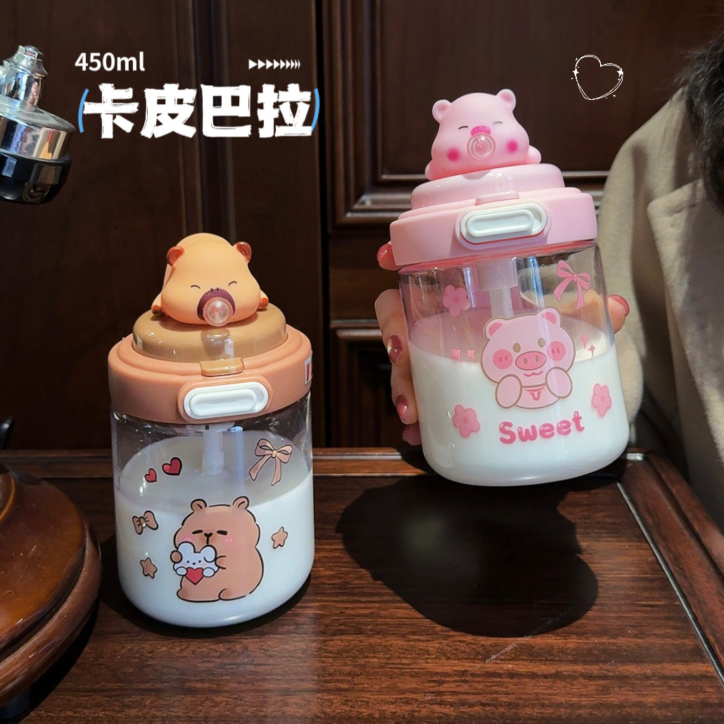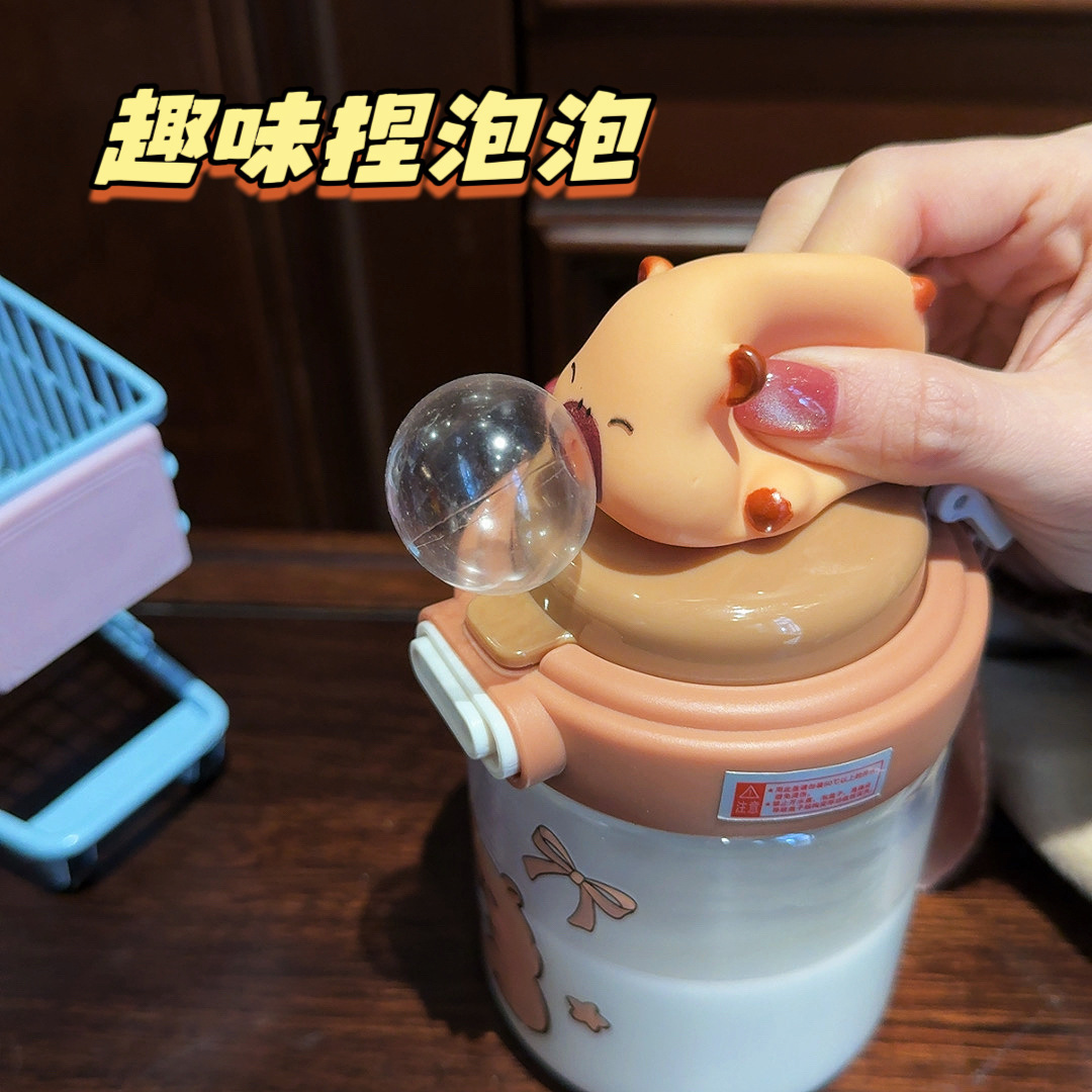 可愛卡皮巴拉塑膠杯女生萌系高顔值水杯小巧可攜式趣味兒童吸琯杯