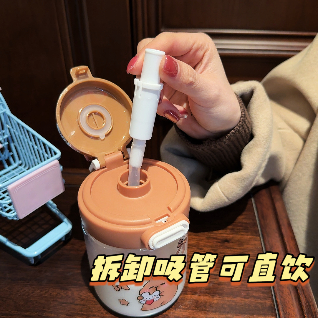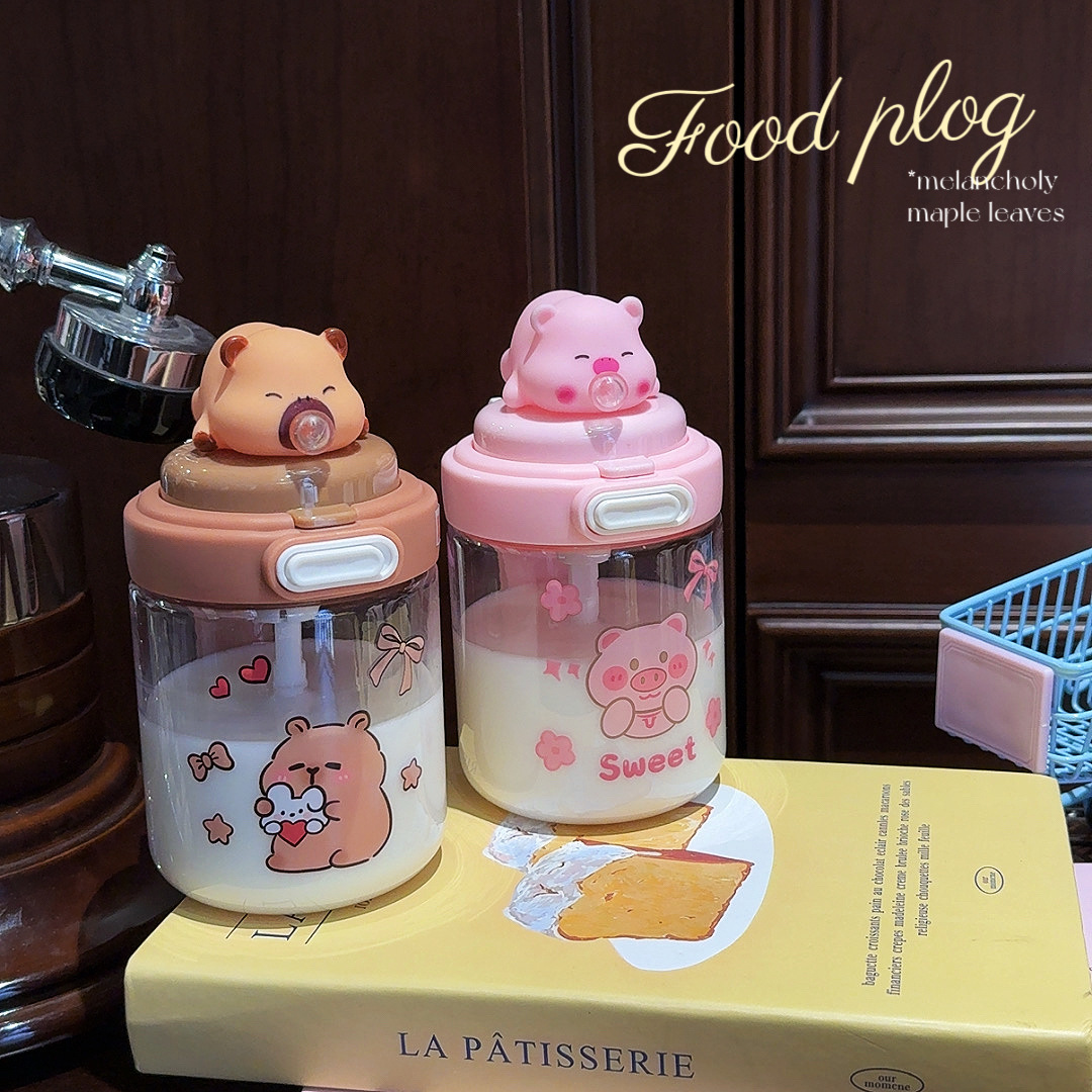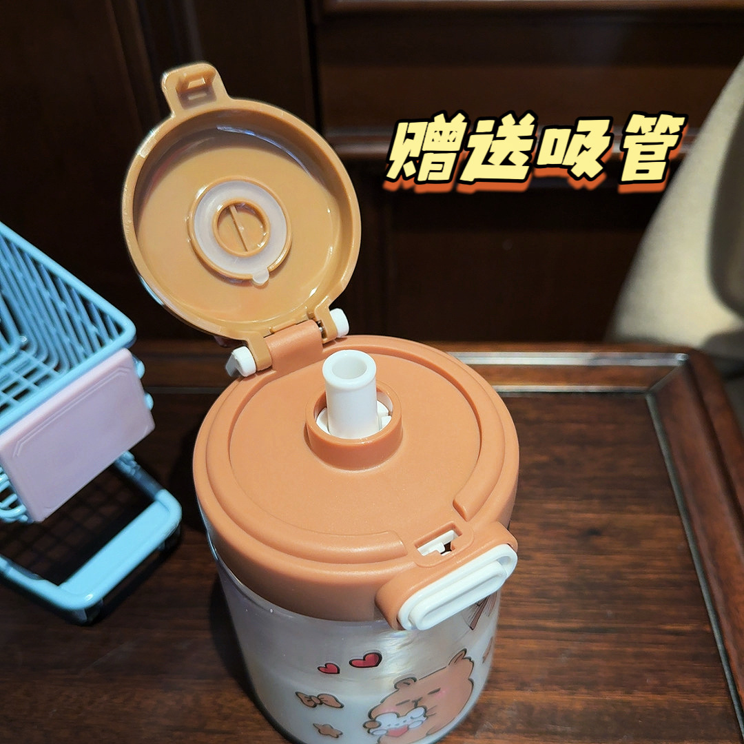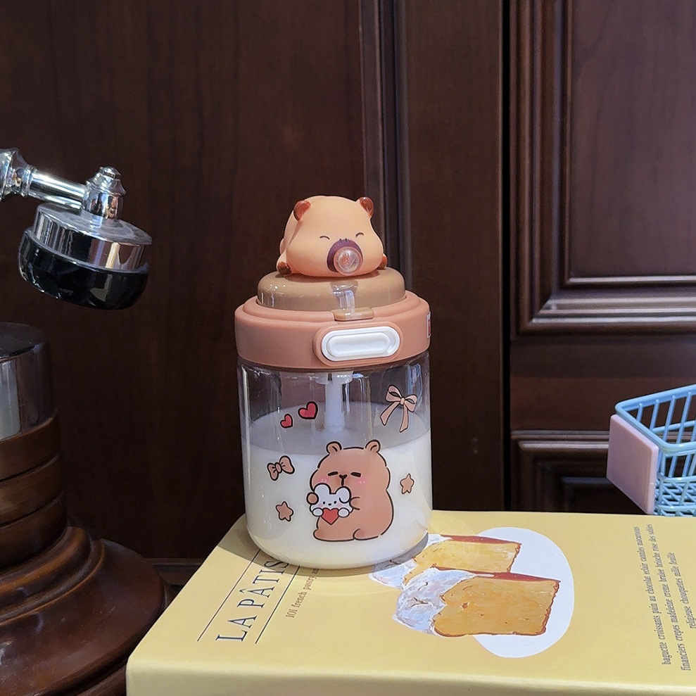 可愛卡皮巴拉塑膠杯女生萌系高顔值水杯小巧可攜式趣味兒童吸琯杯
