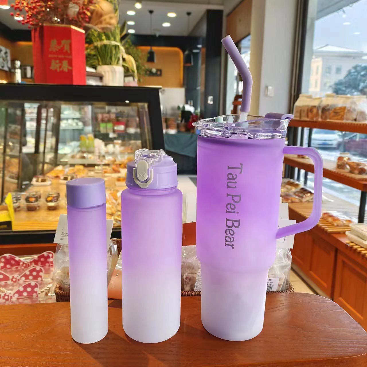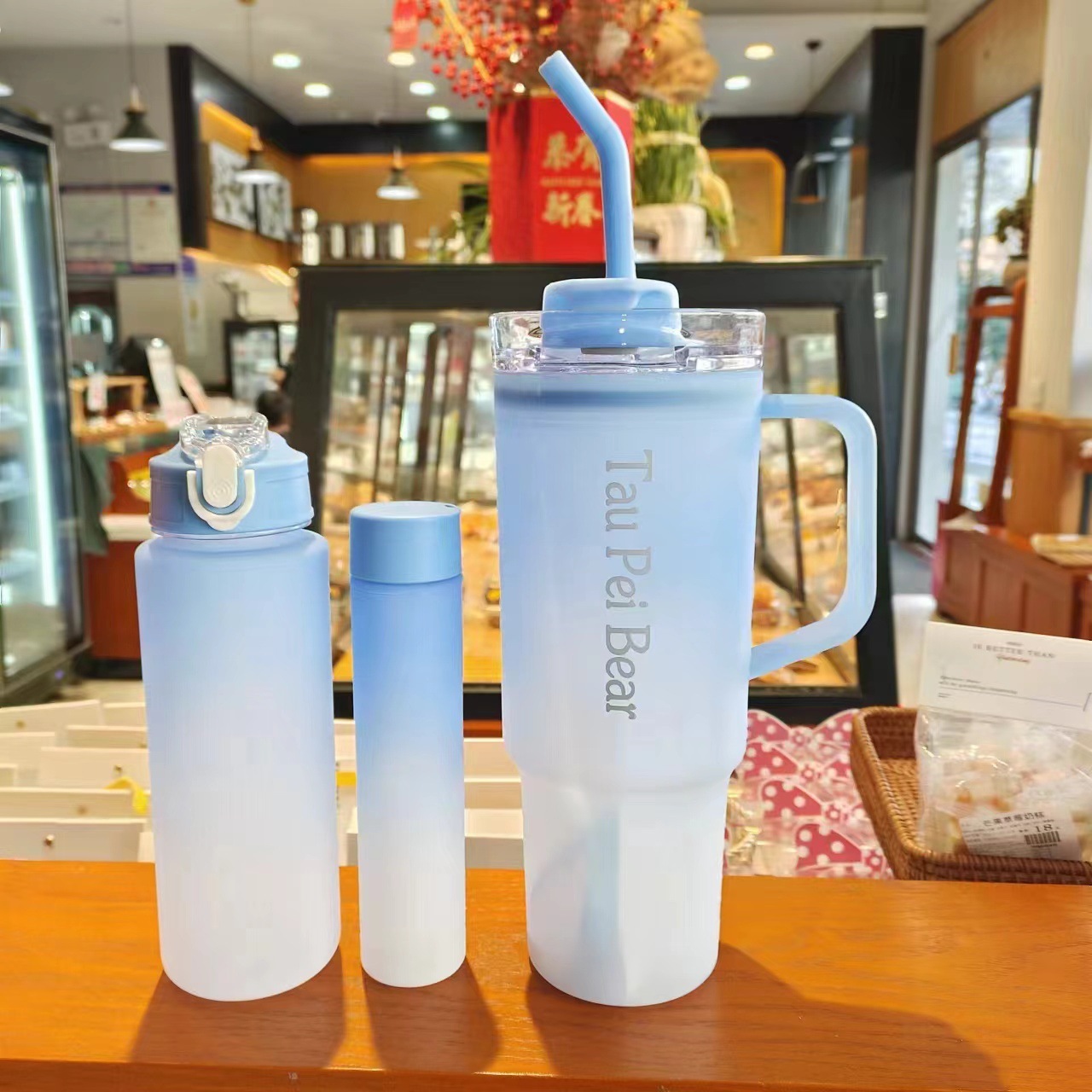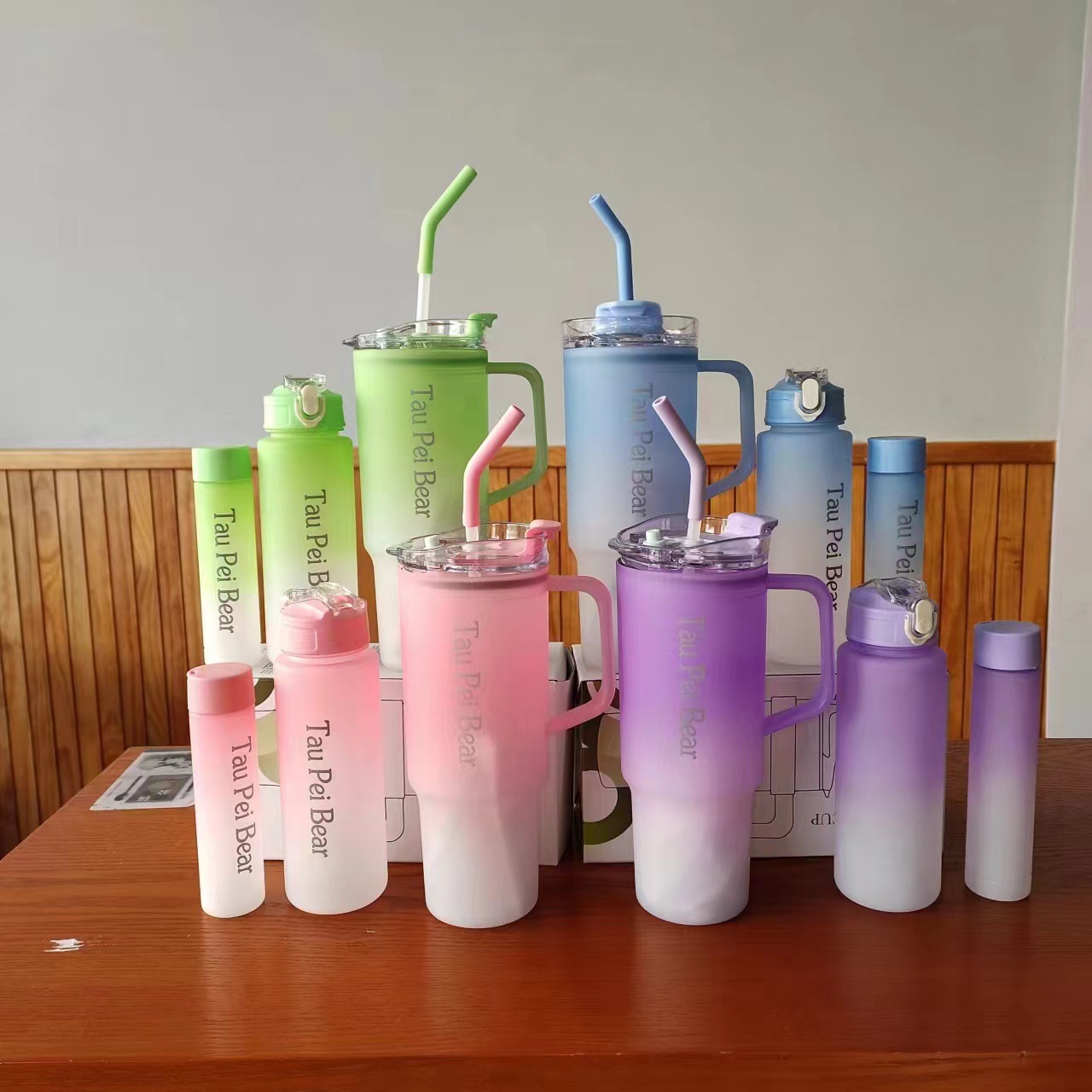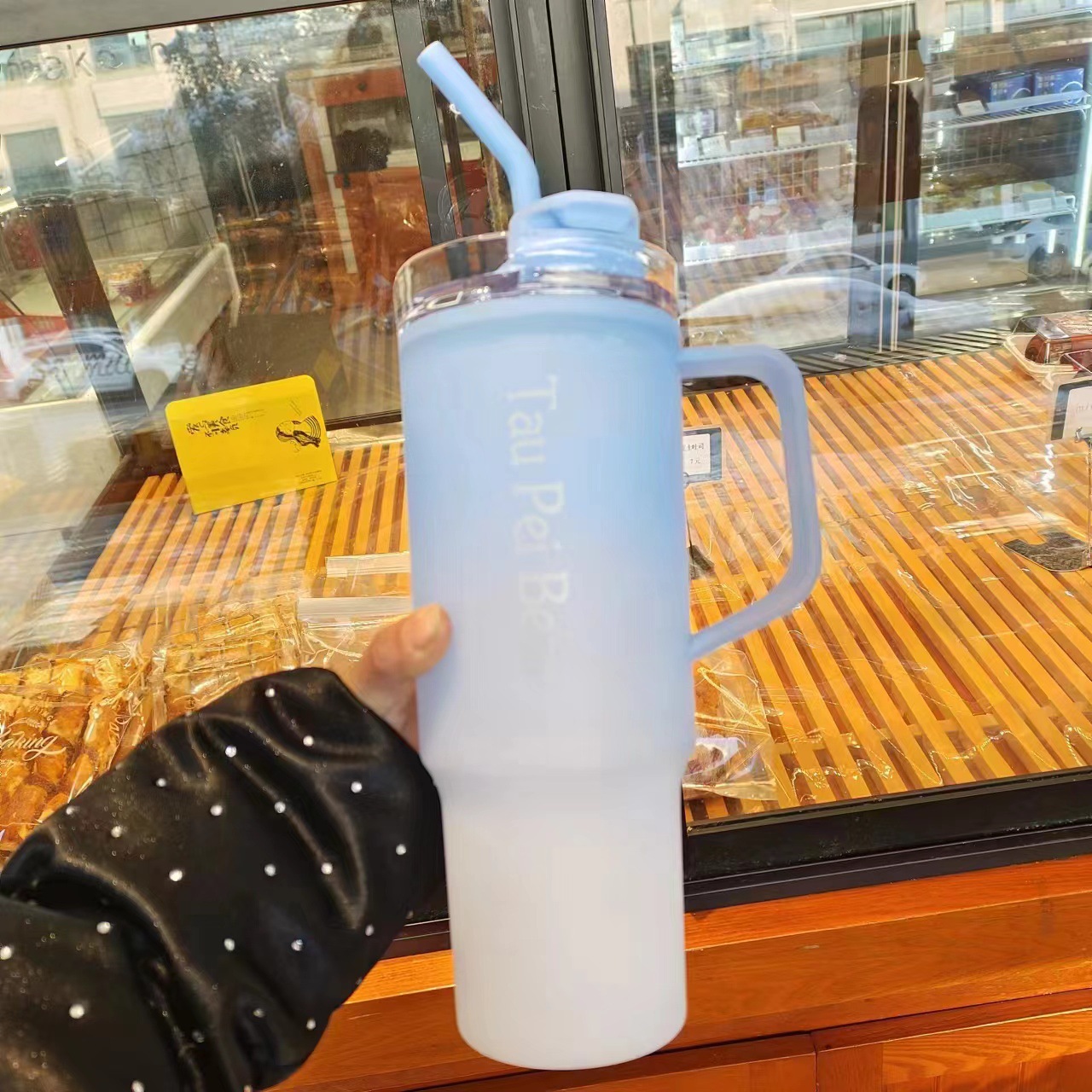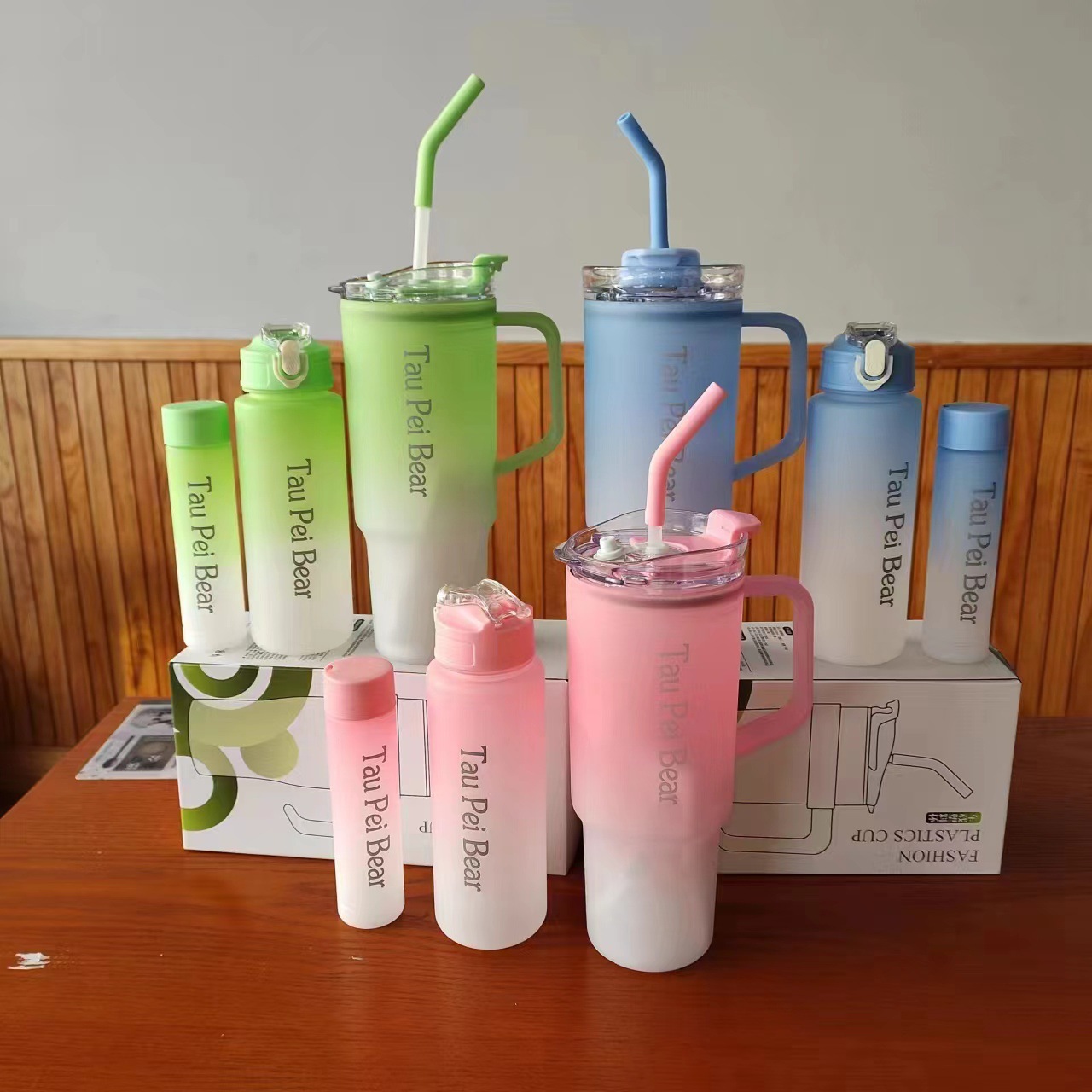 新款巨無霸高顔值水杯40oz塑膠杯可攜式手提杯吸琯杯三件套水杯