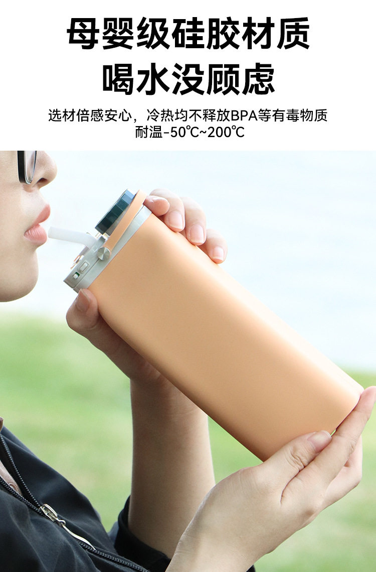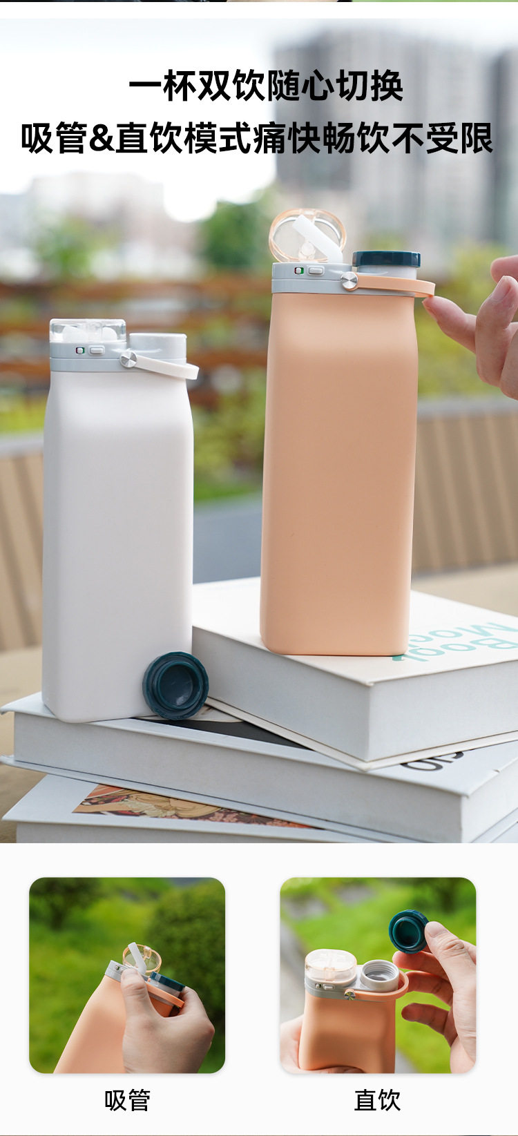 帶吸琯矽膠折疊水壺牛奶盒大容量戶外可攜式折疊水壺耐高溫伸縮旅行