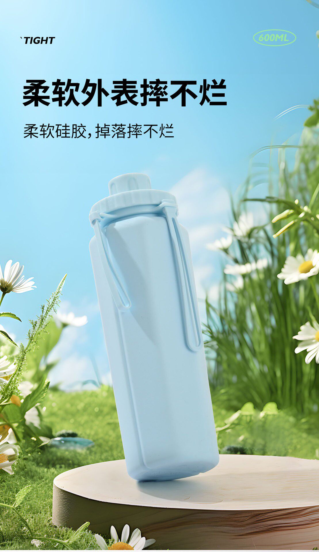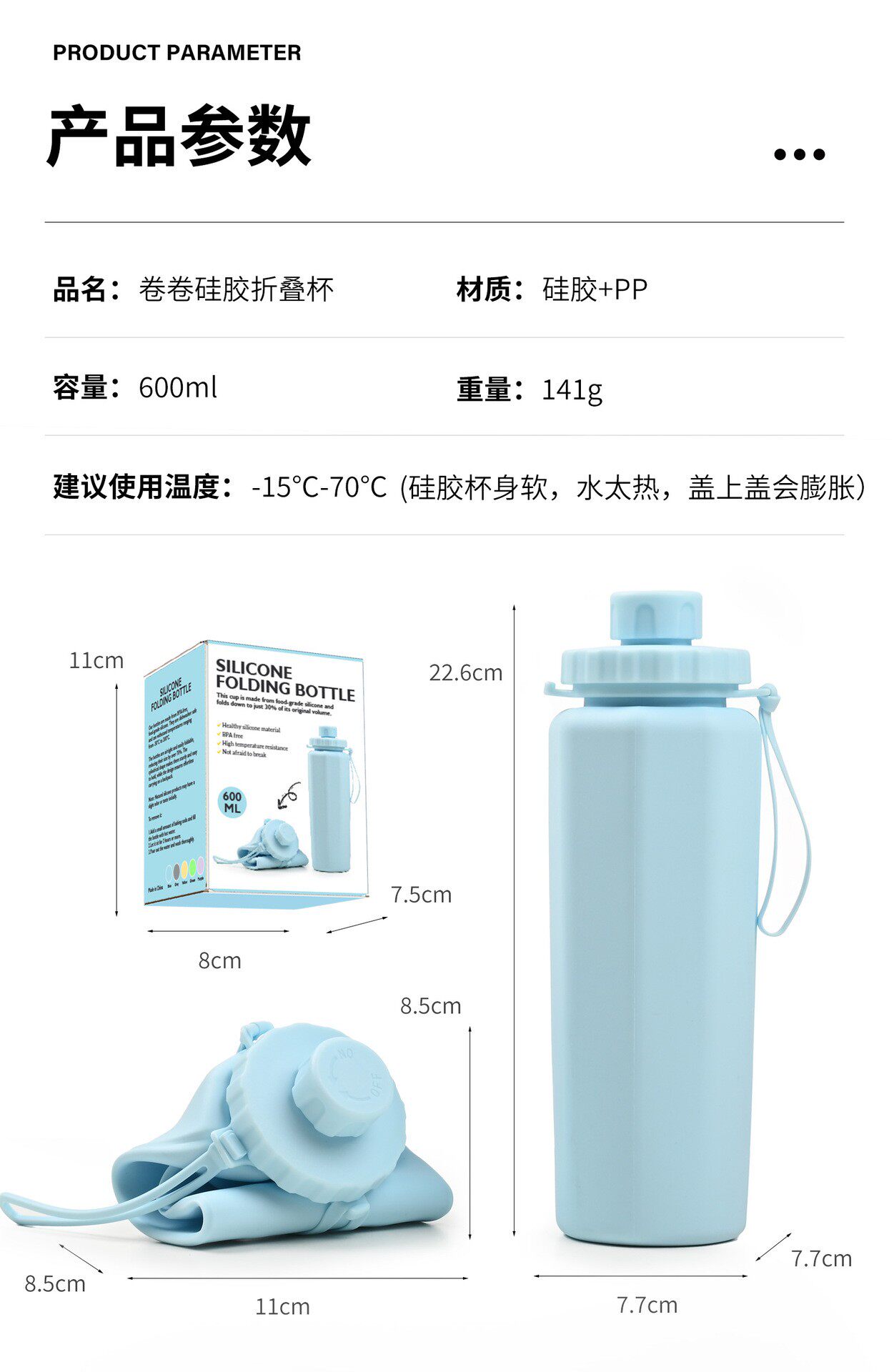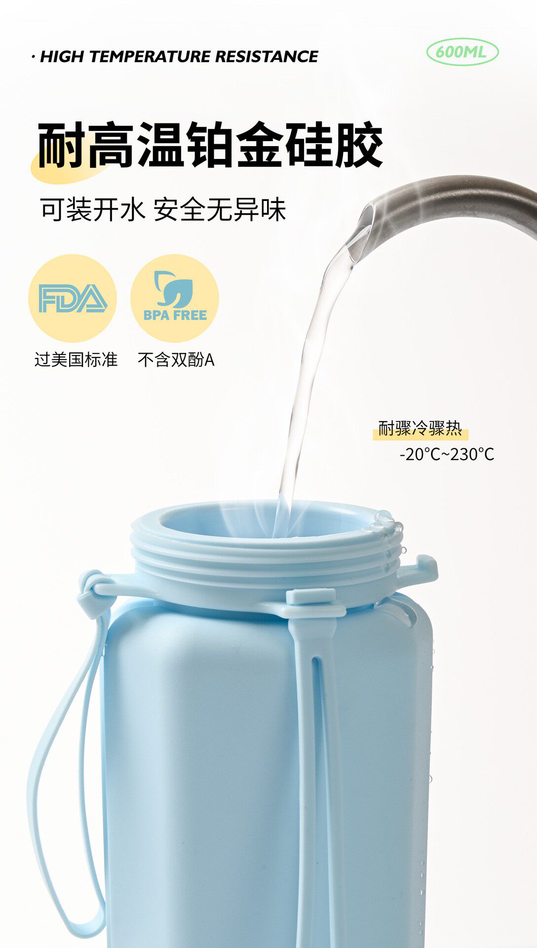 600ml杯子可折疊水壺大容量耐高溫食品級矽膠戶外旅行可攜式水杯