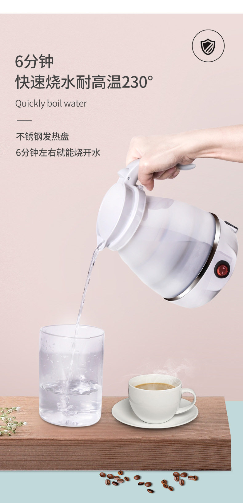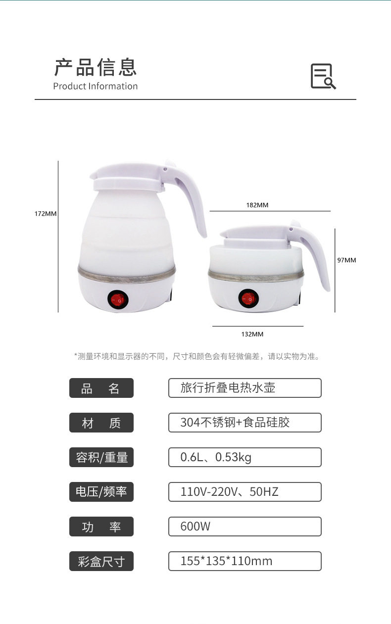 德國工藝折疊水壺旅行電熱水壺迷你可攜式燒水壺出差旅遊自動斷電保