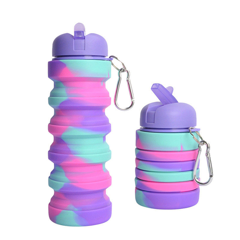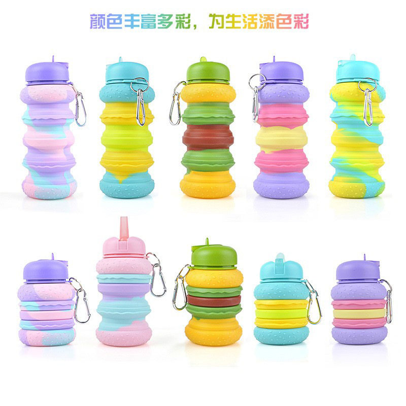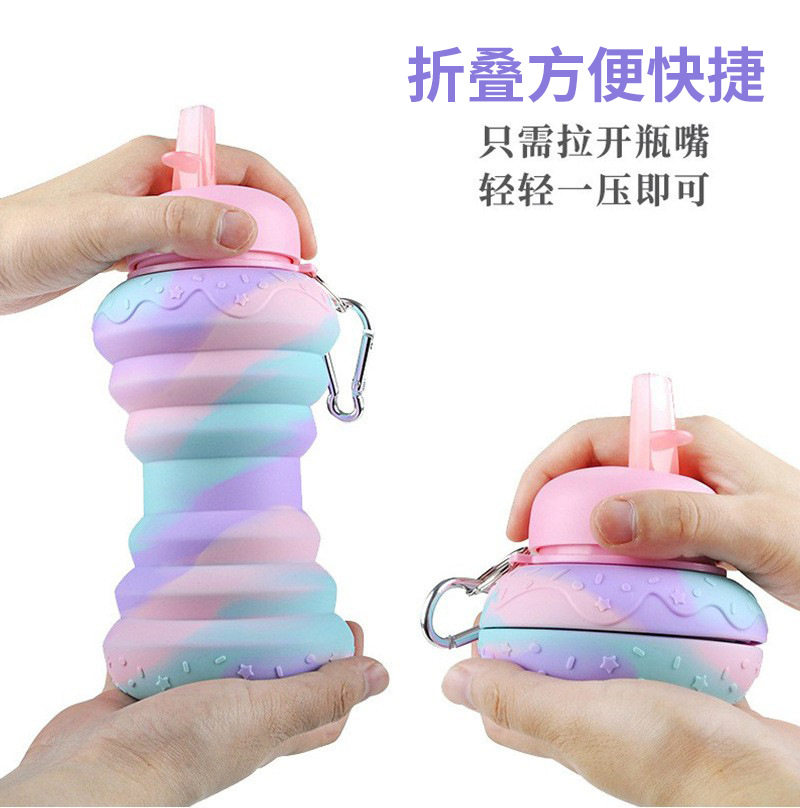 創意戶外矽膠折疊水壺運動旅遊伸縮杯可攜式食品級耐高溫多彩可式壓