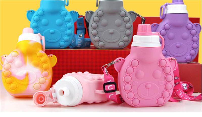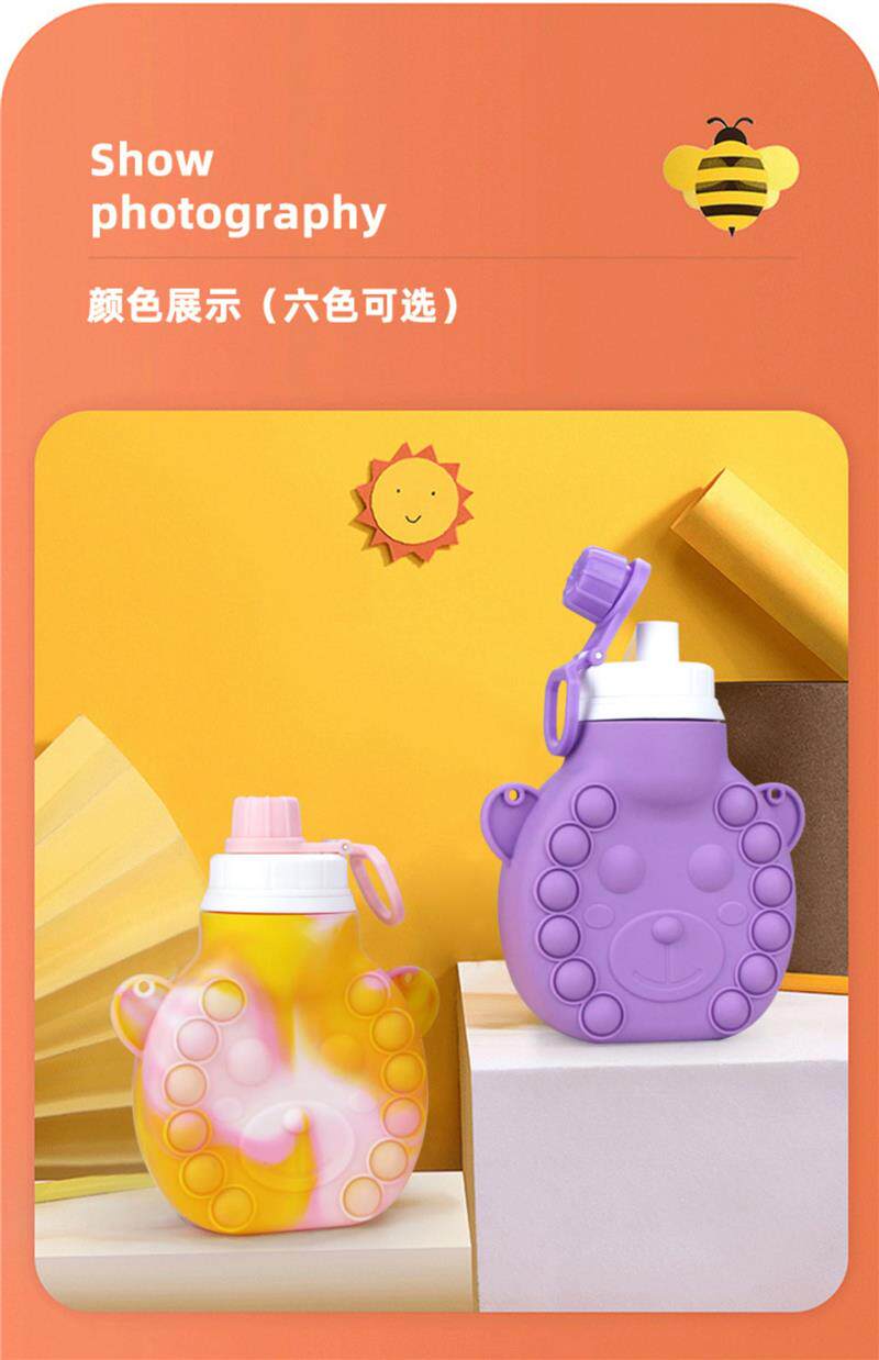 水杯可愛兒童矽膠折疊水壺矽膠水壺創意學生水杯防摔防漏兒童水壺