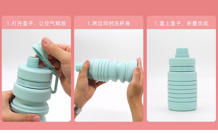 食品級矽膠折疊水壺大容量可攜式水杯耐高溫戶外運動旅行伸縮杯子
